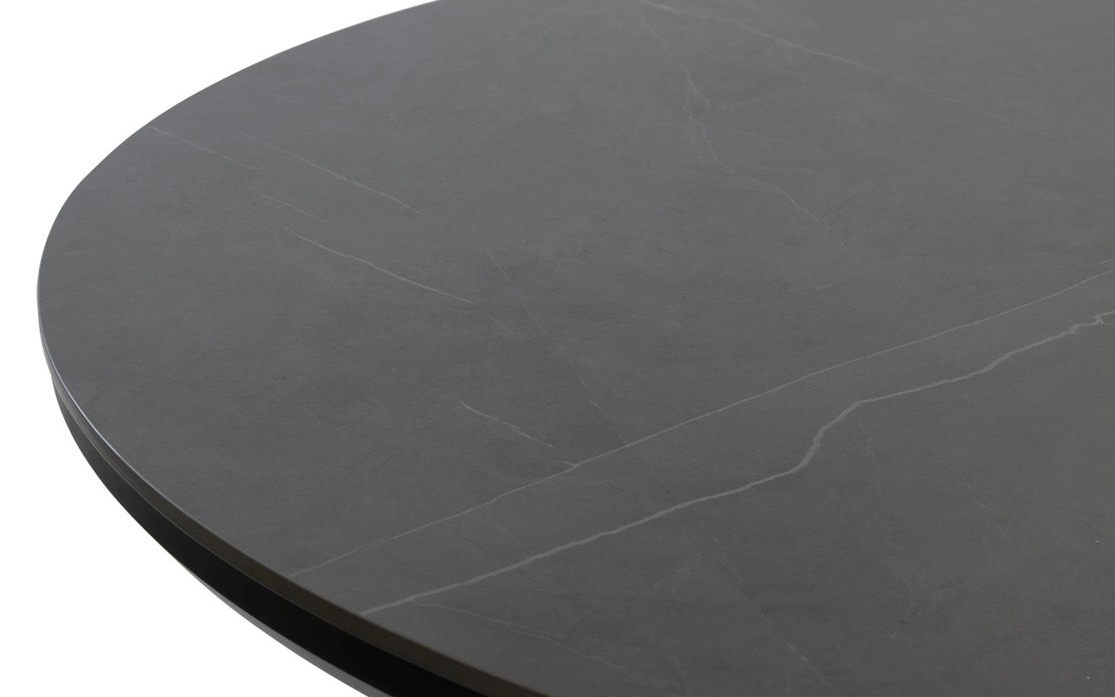 DAXX to nowoczesny stół ogrodowy, który łączy funkcjonalność z eleganckim designem. Okrągła forma o średnicy 120 cm i wysokości 74 cm sprawia, że stół staje się centralnym punktem aranżacji – idealny na rodzinne posiłki, spotkania towarzyskie czy eleganckie kolacje. Blat wykonany z kamienia spiekanego o grubości 12 mm zachwyca naturalną szarą strukturą i jest odporny na zarysowania, wysoką temperaturę, promieniowanie UV oraz zabrudzenia.