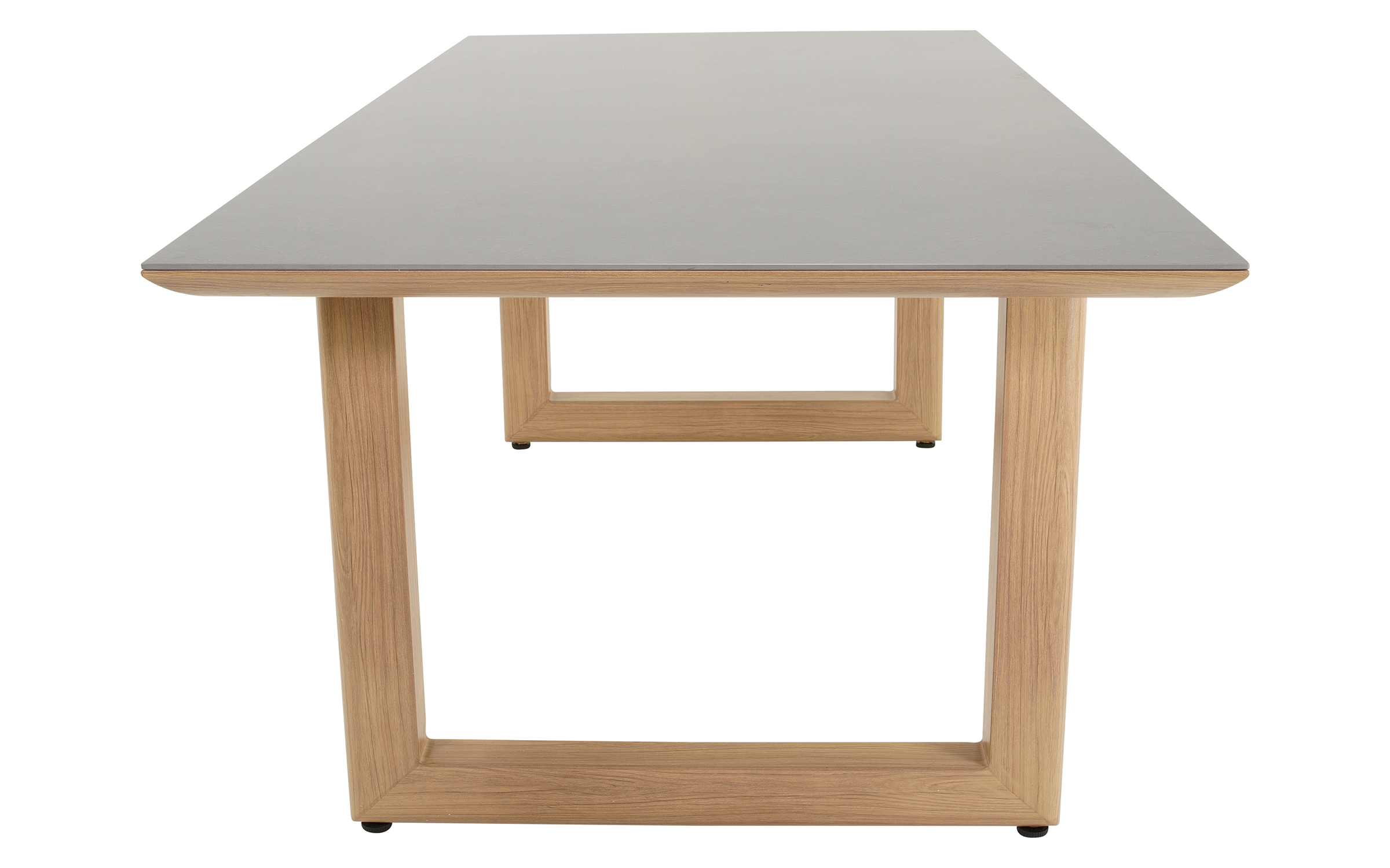 Nowoczesny stół ogrodowy ESPINAR 200×90 z aluminium woodlook i blatem z kamienia spiekanego