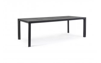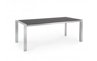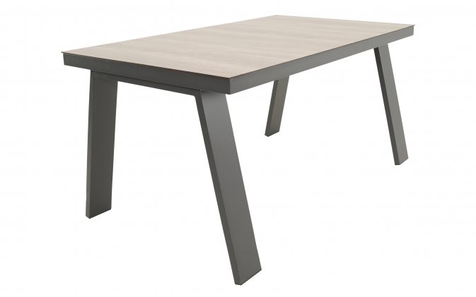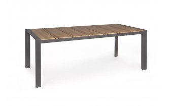 Stół ogrodowy ESTORIL marki LesliLiving to idealne rozwiązanie na nieduże tarasy. Konstrukcja wykonana z aluminium malowanego proszkowo w kolorze matowego antracytu zapewnia trwałość i odporność na warunki atmosferyczne. Blat z HPL z imitacją powłoki drewna zapewni pełną odporność na warunki atmosferyczne.