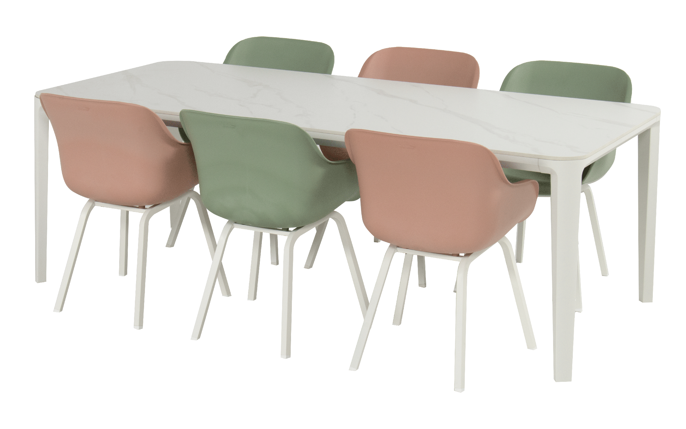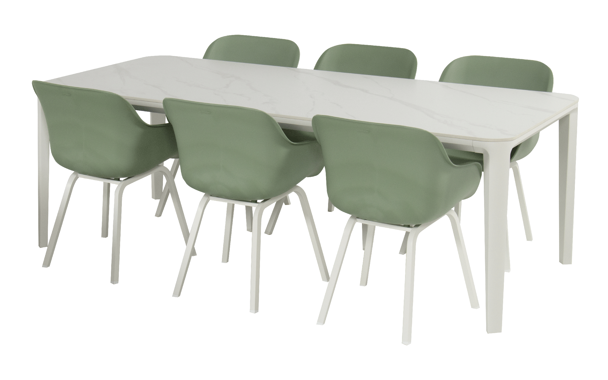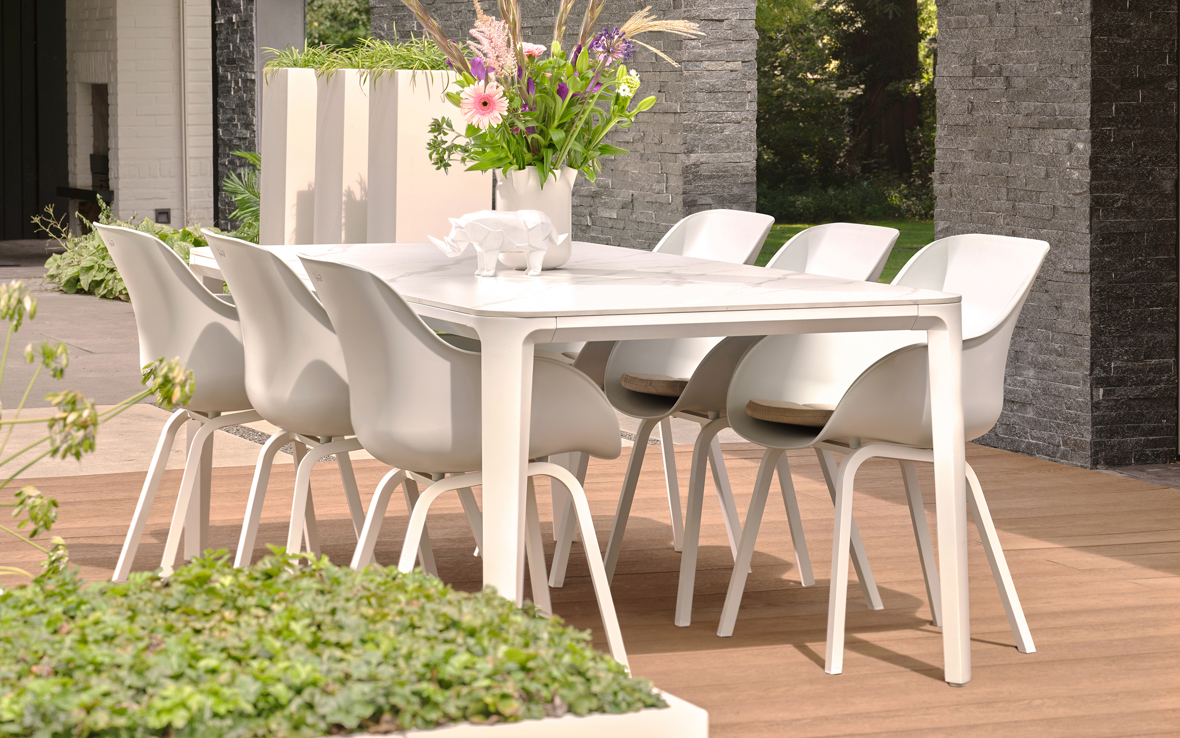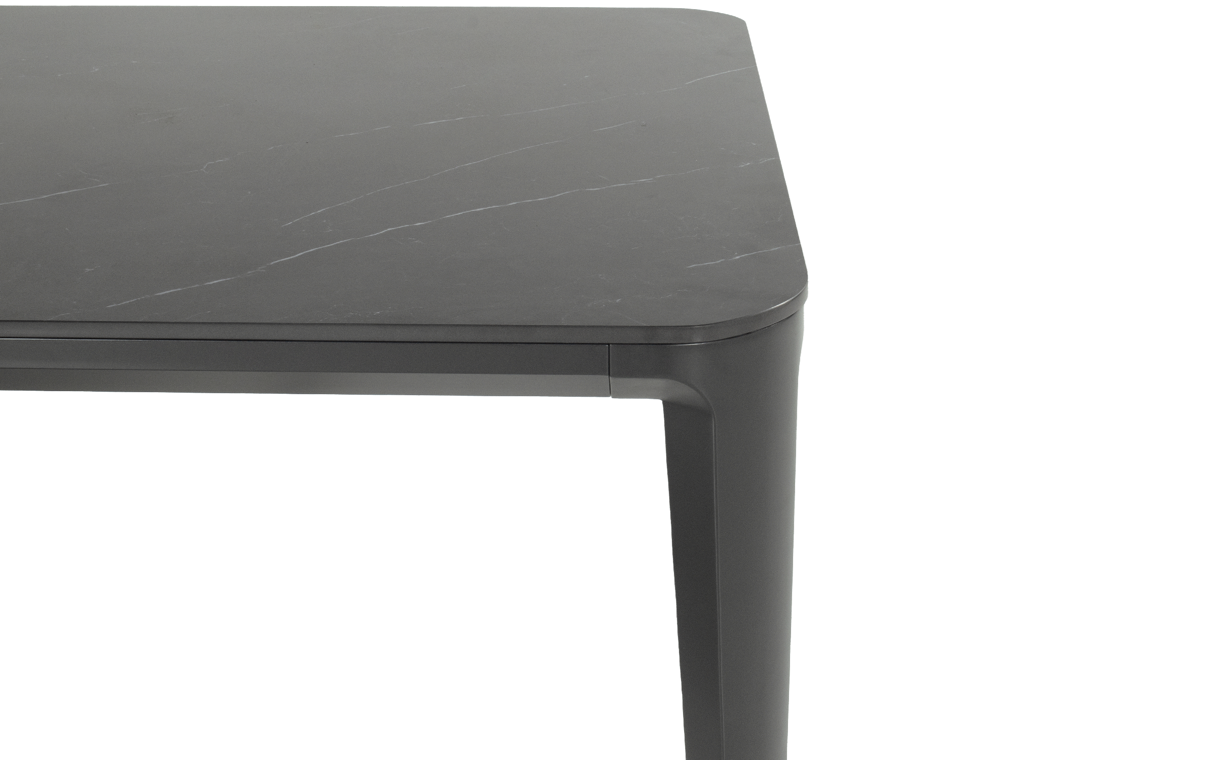 Konstrukcja z aluminium malowanego proszkowo w kolorze antracyt lub białym. Blat wykonany z ceramiki – odpornej na promieniowanie UV, wilgoć i zabrudzenia. Materiały przystosowane do użytkowania zewnętrznego – idealne dla mebli ogrodowych i tarasowych.