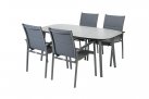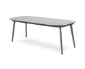 Mocna konstrukcja aluminiowa malowana proszkowo na kolor ciemnoszary. Blat ceramiczny z zaokrąglonymi nogami.