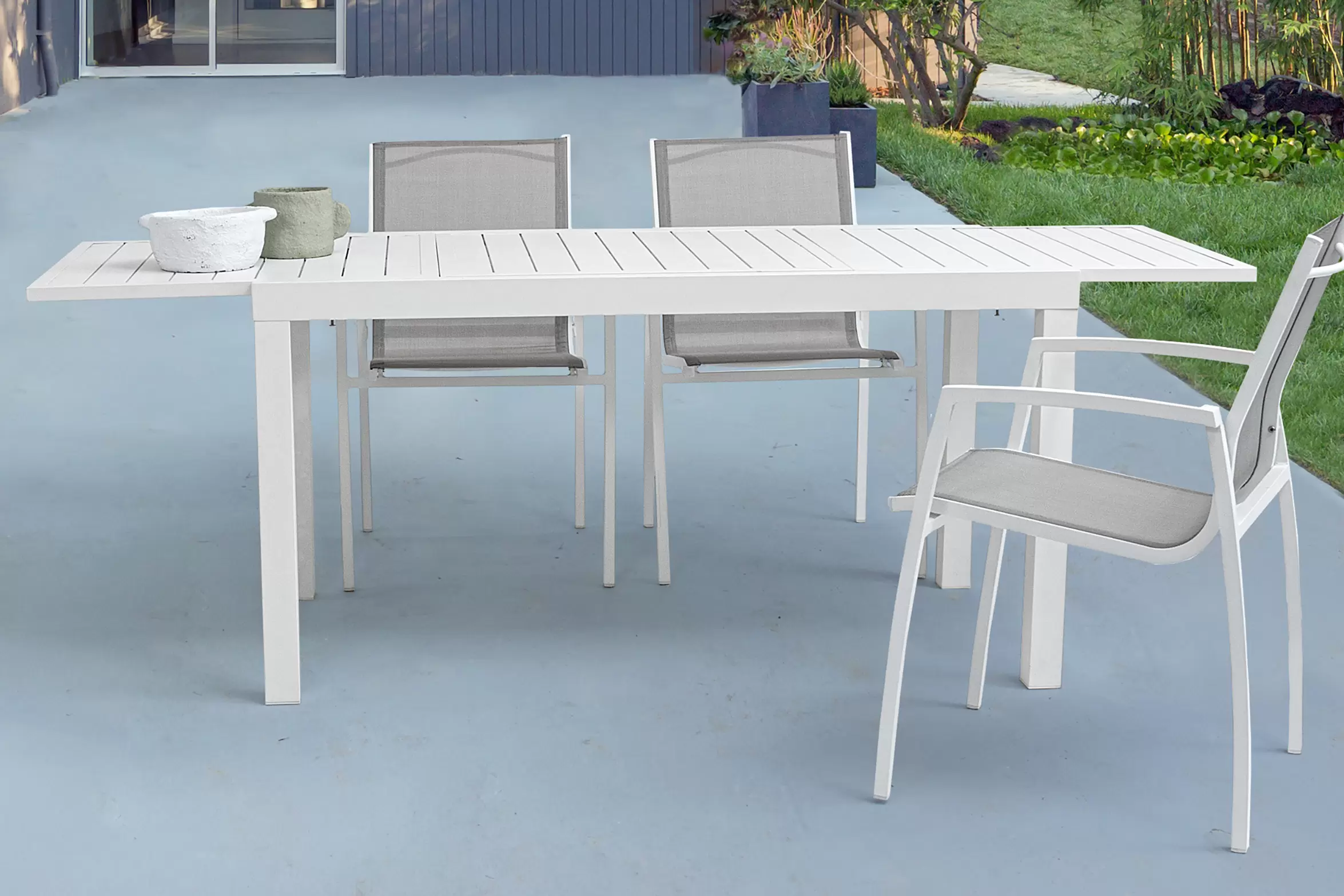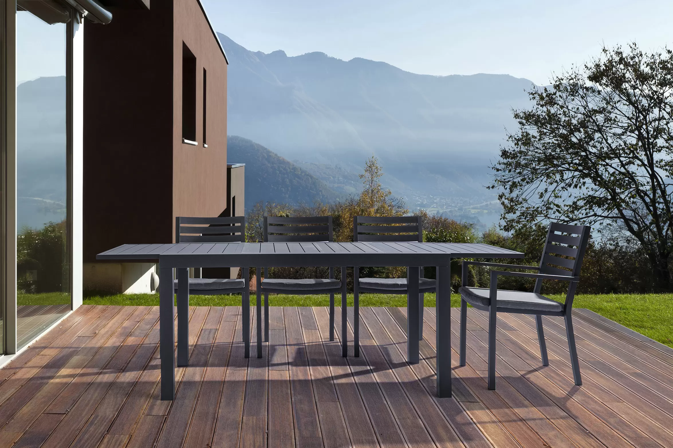 Stół aluminiowy do ogrodowej jadalni 140 cm rozkładany do rozmiaru 210x90 cm.