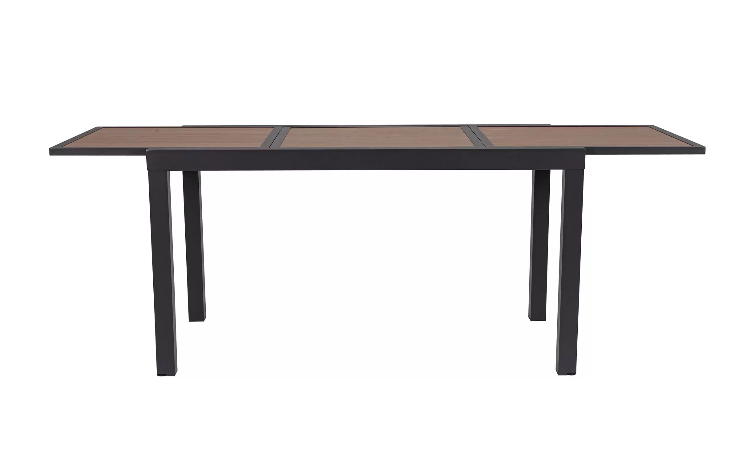 Stół aluminiowy do ogrodowej jadalni 160 cm rozkładany do rozmiaru 240x90 cm. Blat stołu z aluminium z powłoką drewnopodobna.