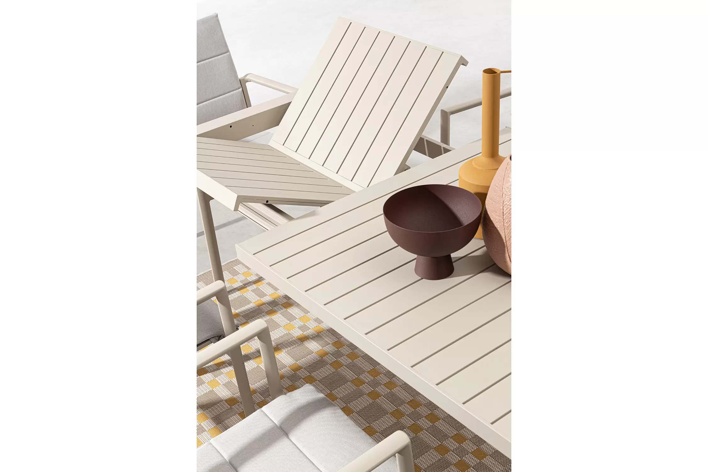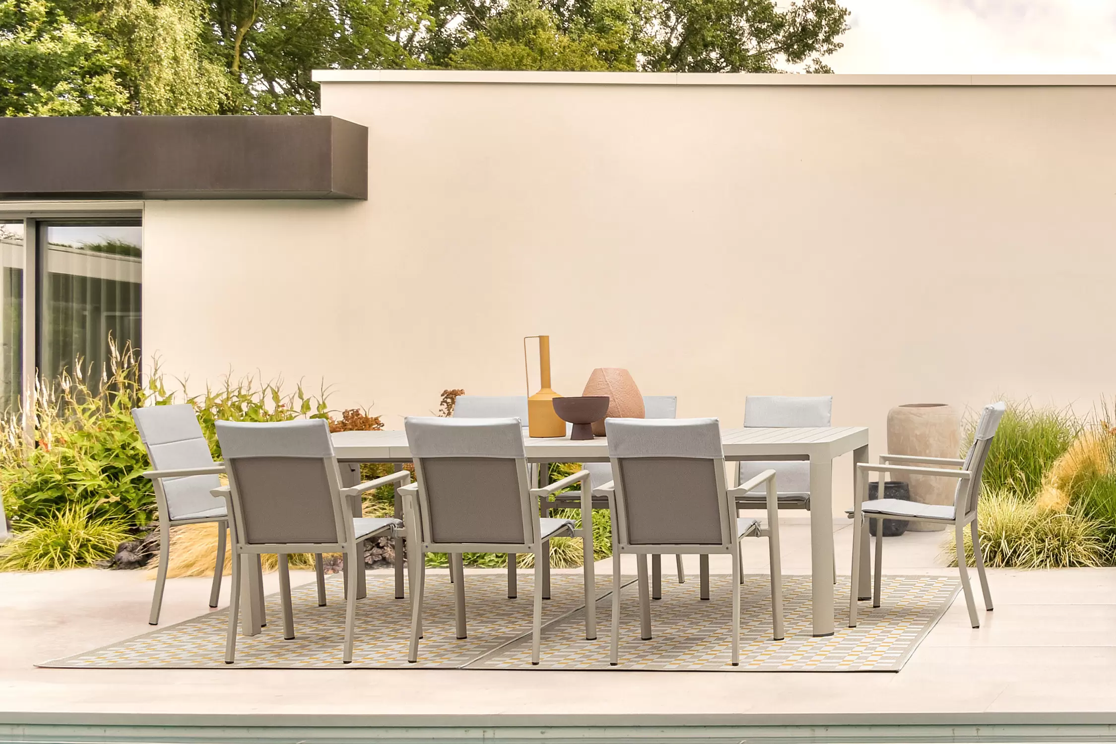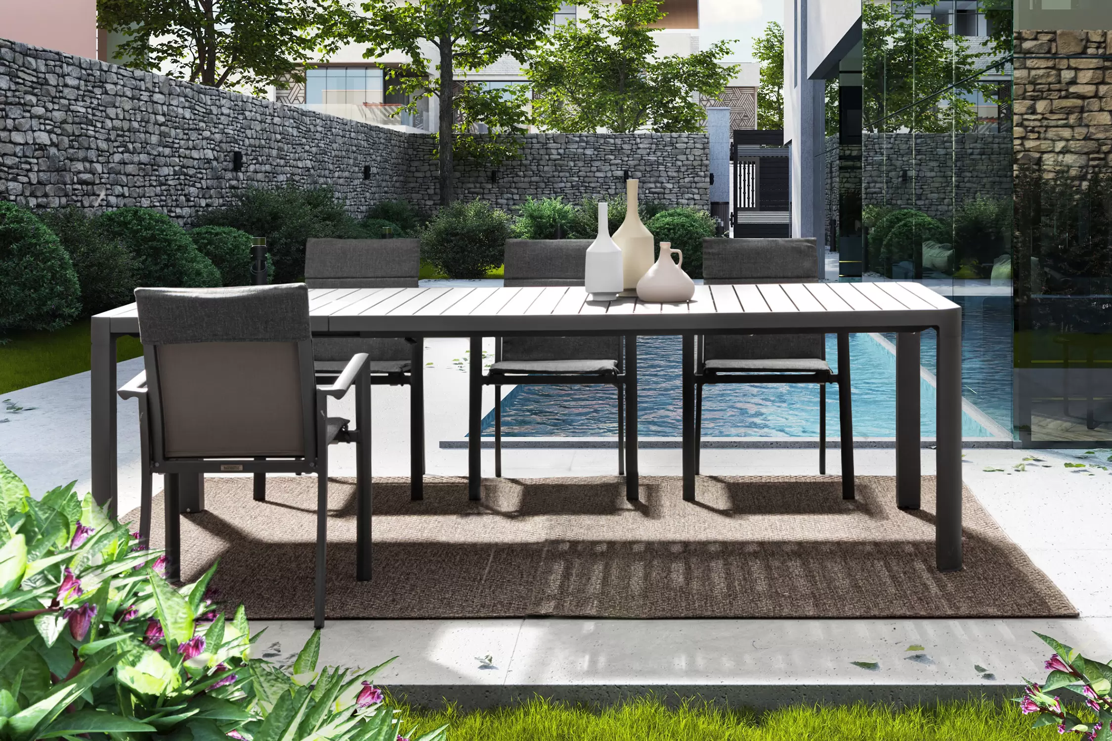 Konstrukcja aluminiowa stołu i mebli malowana proszkowo. System rozkładania teleskopowy.