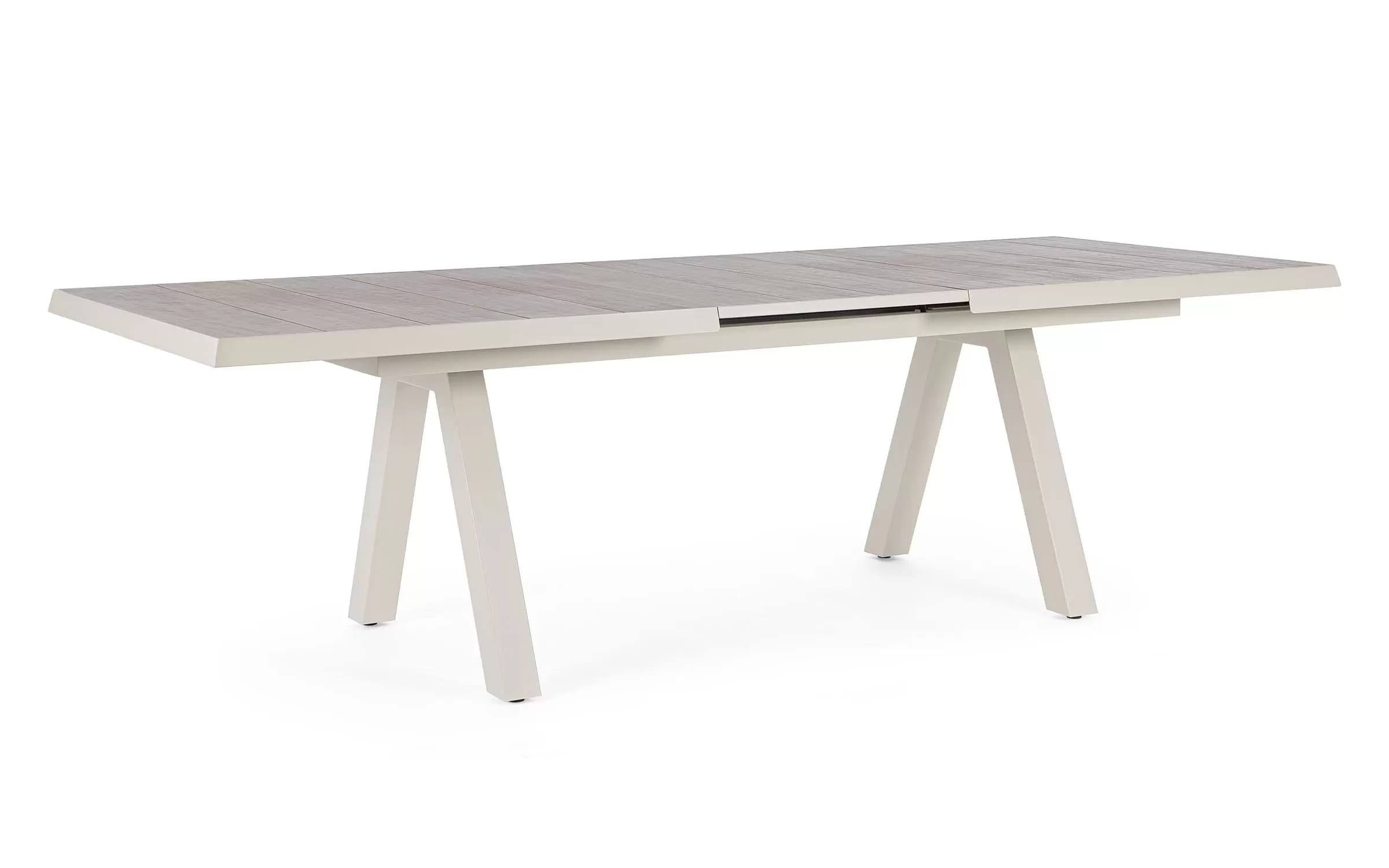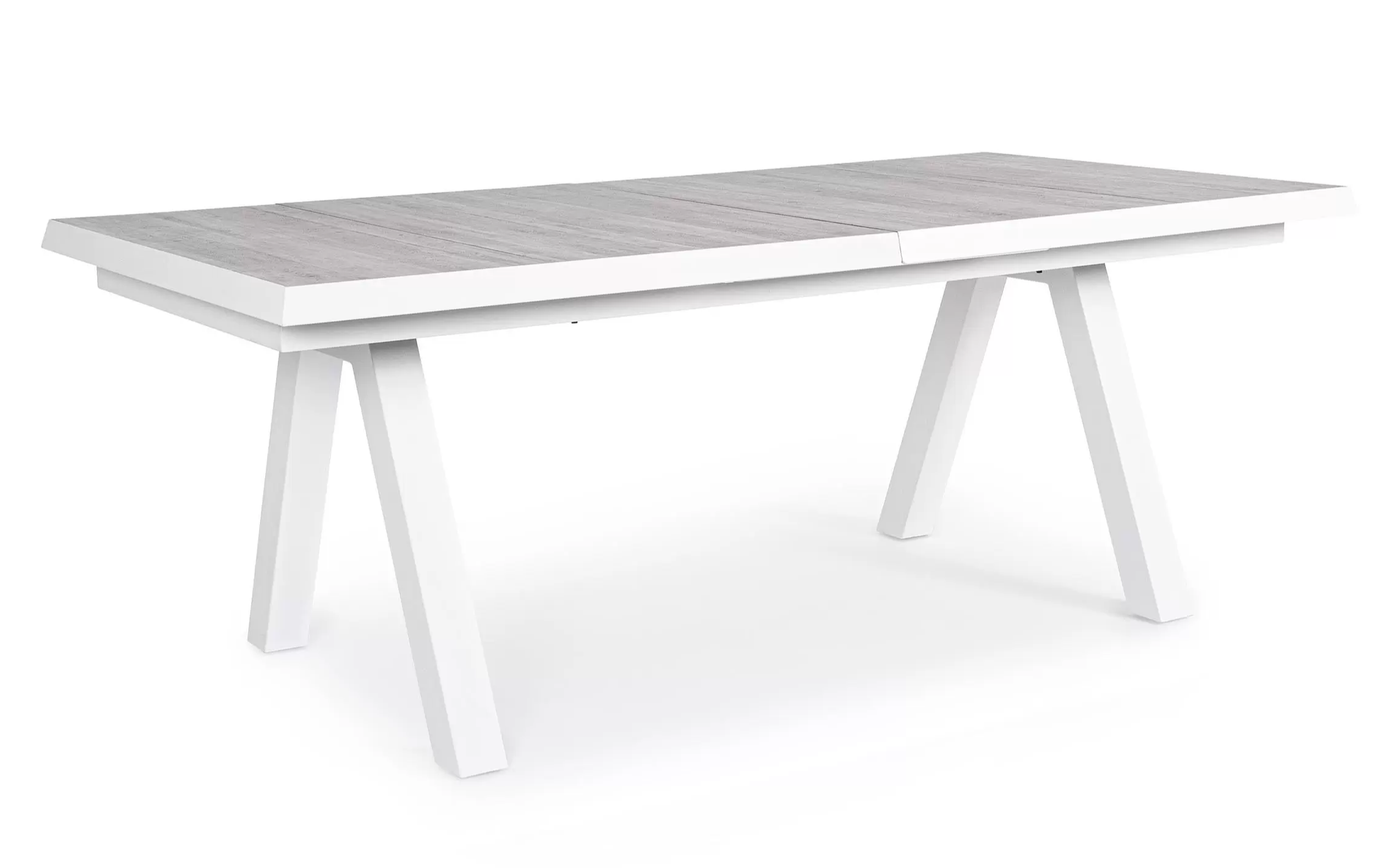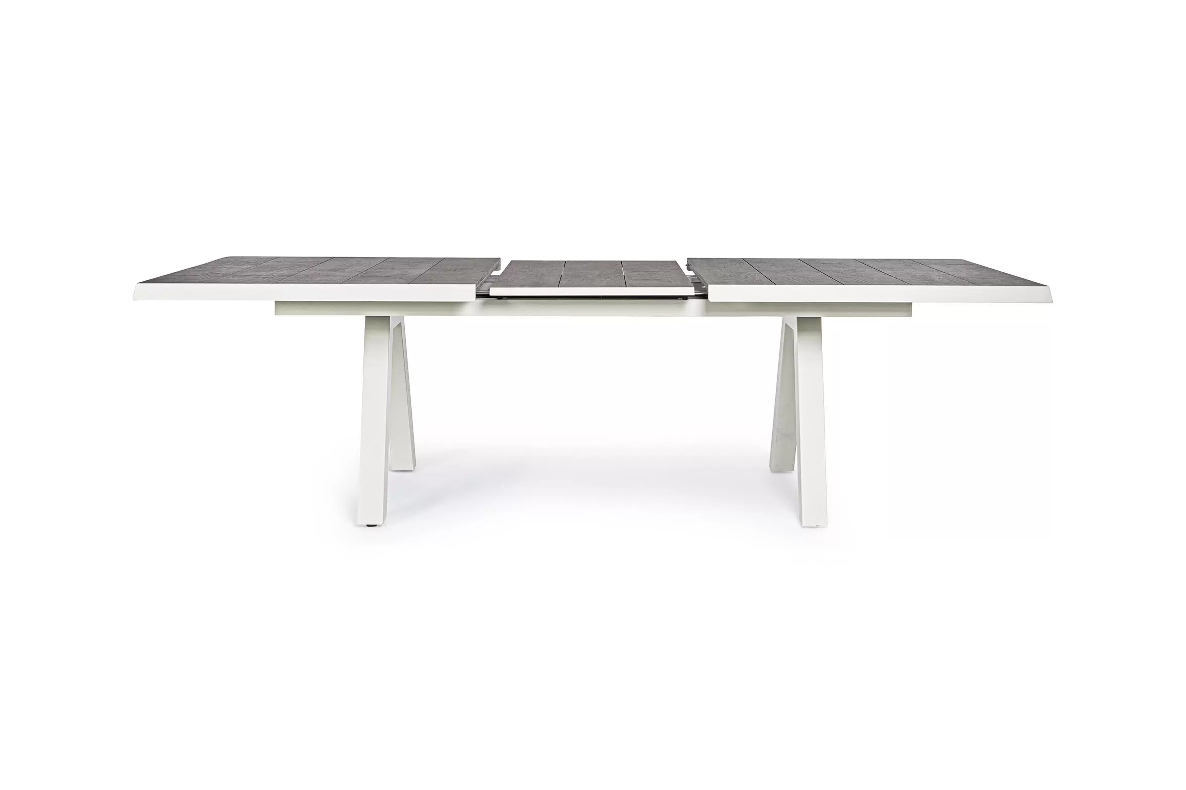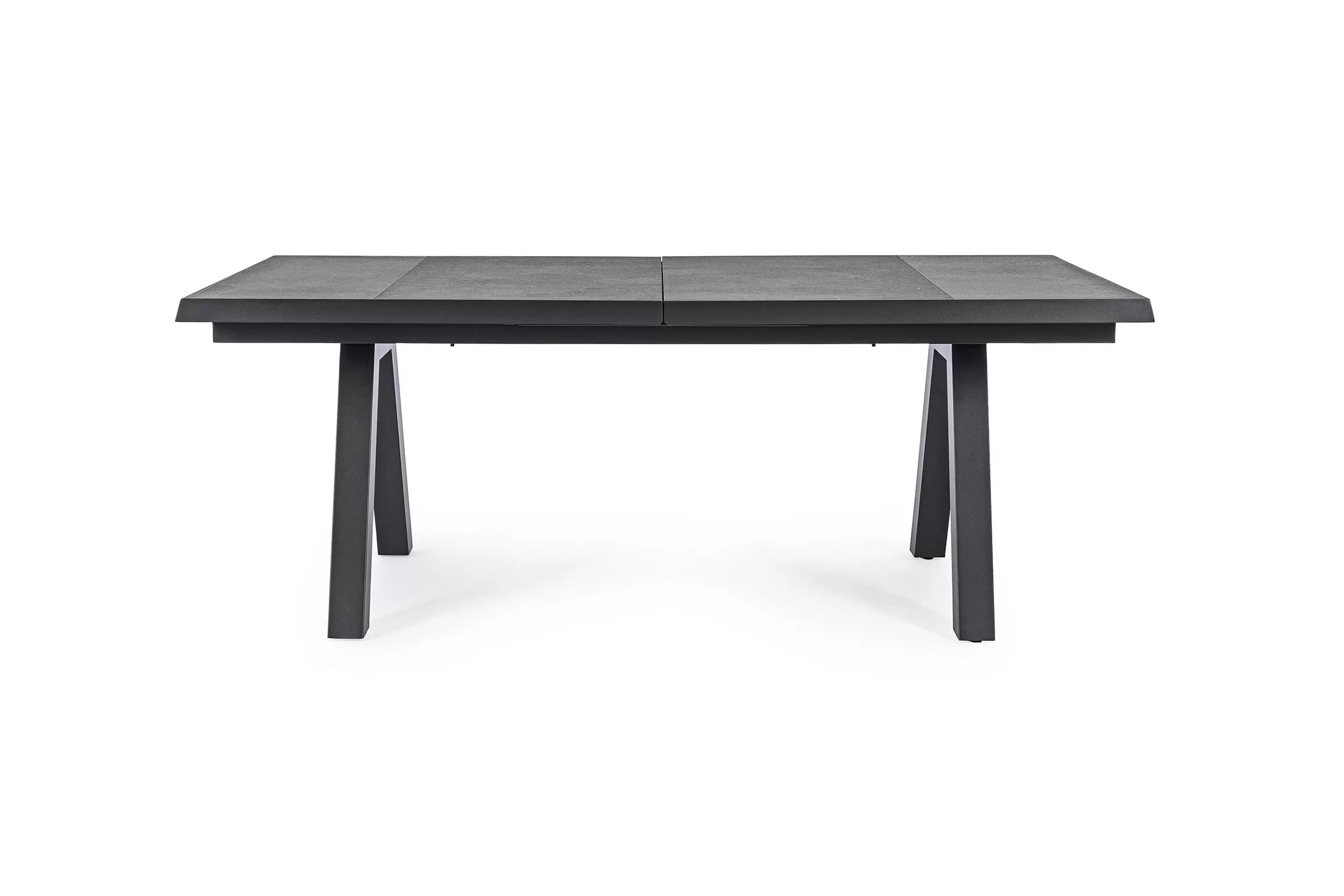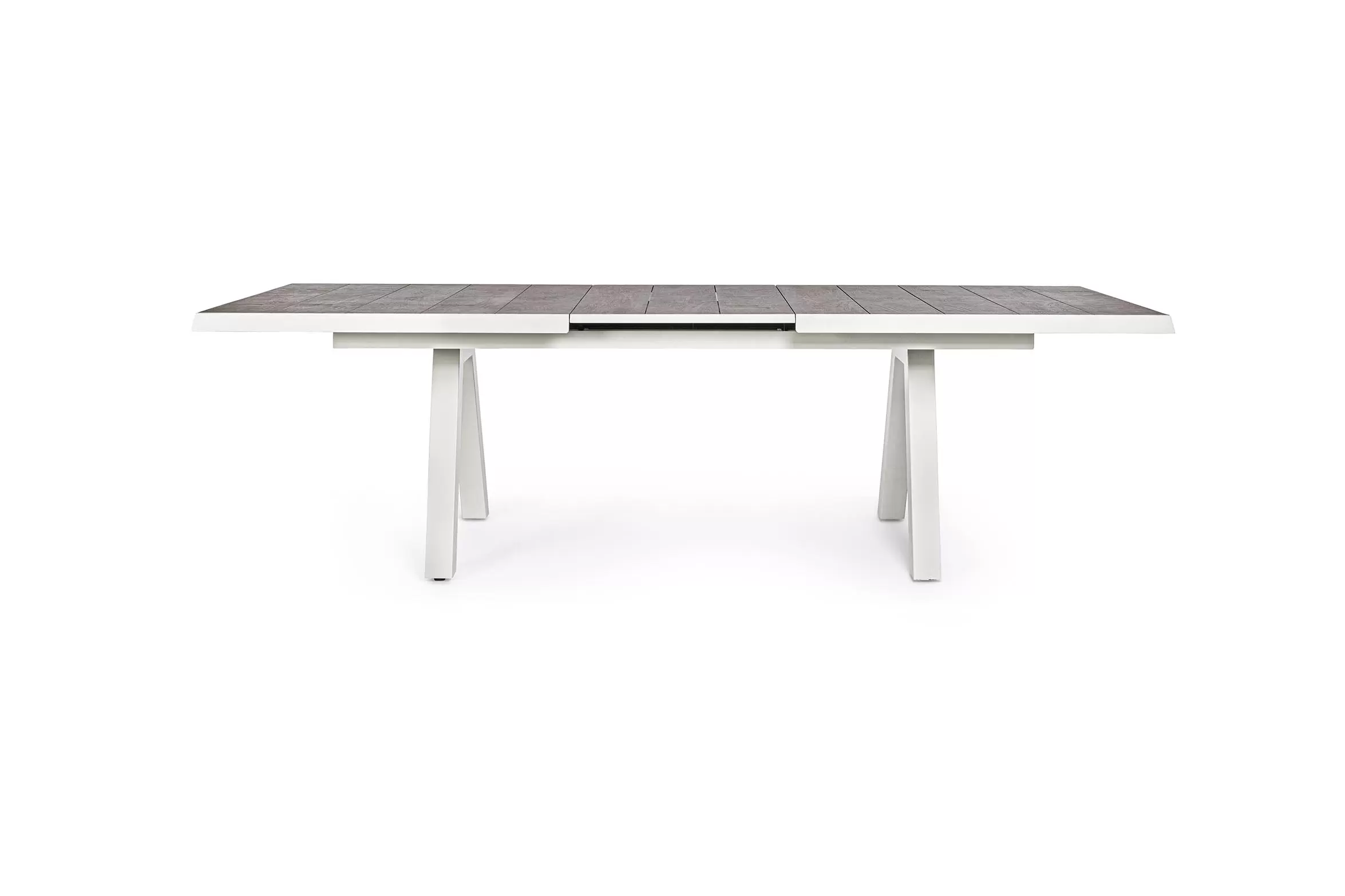 Konstrukcja aluminiowa stołu i mebli malowana proszkowo. System rozkładania automatyczny - rozsuwanie z jednej strony powoduje odsunięcie blatu z drugiej strony. Ponowne pociągnięcie podnosi wstawkę na poziom blatu.