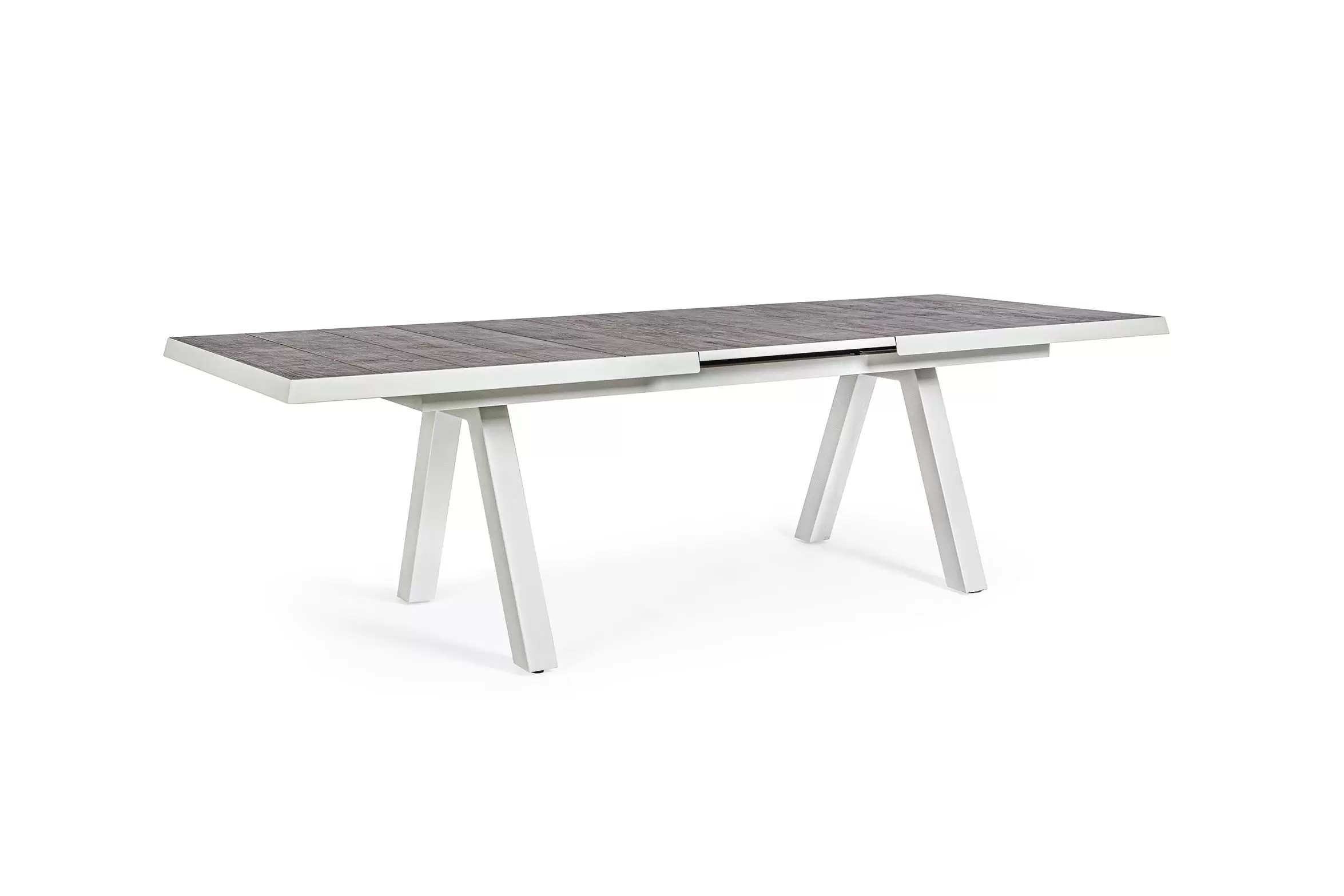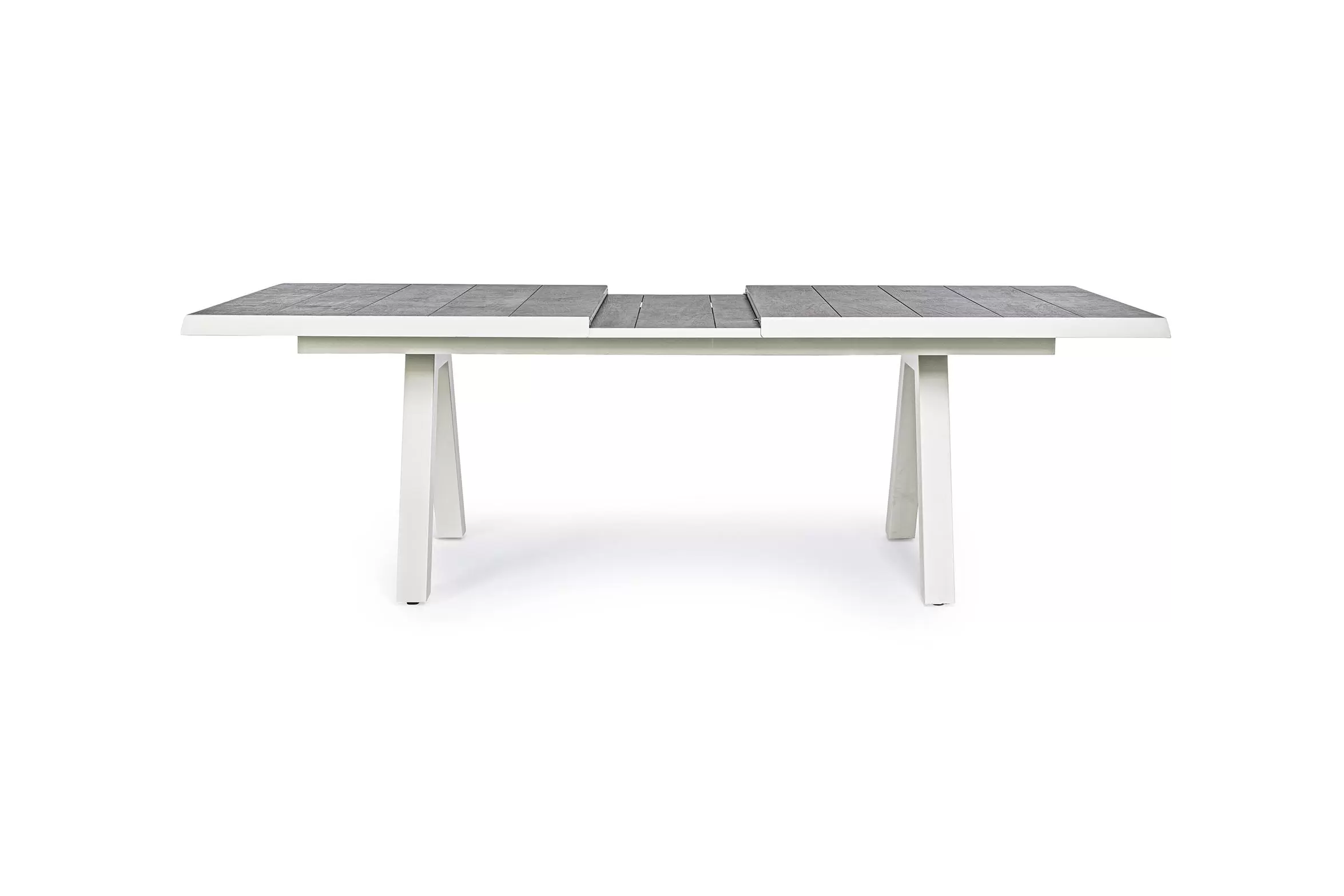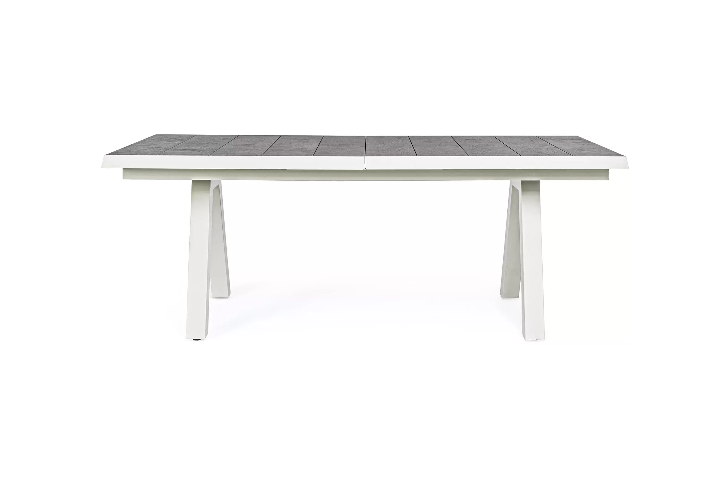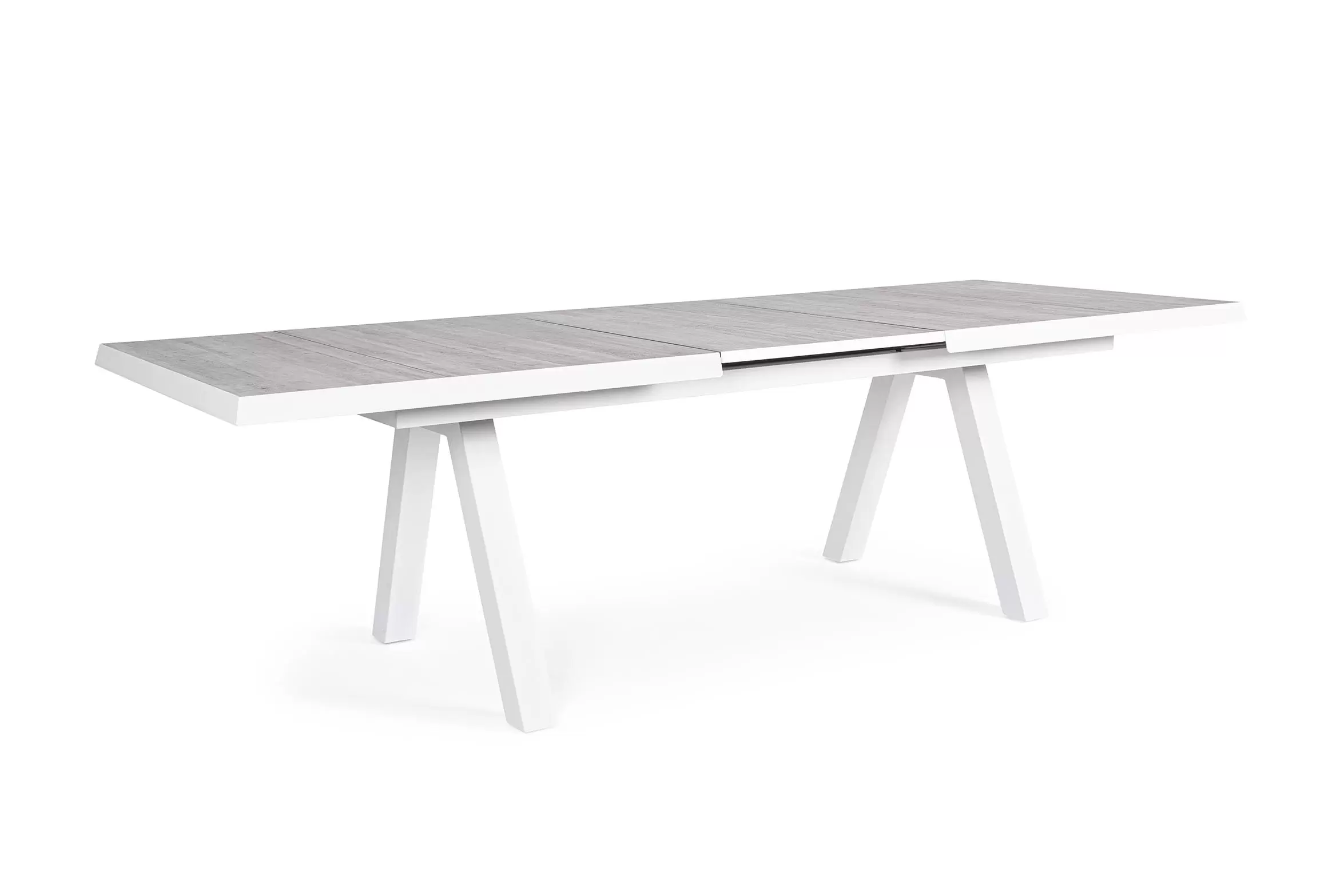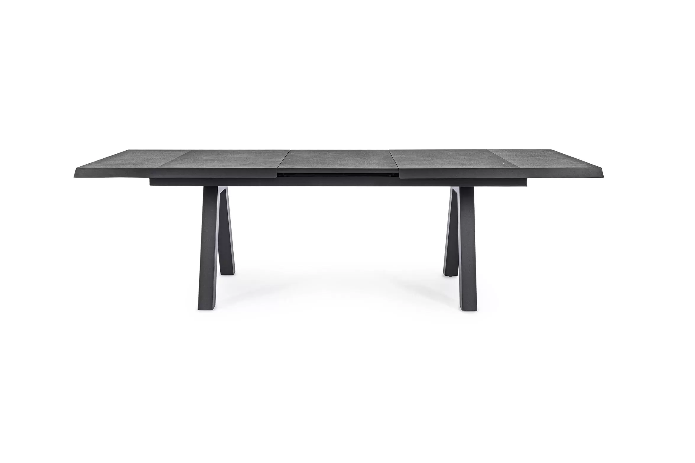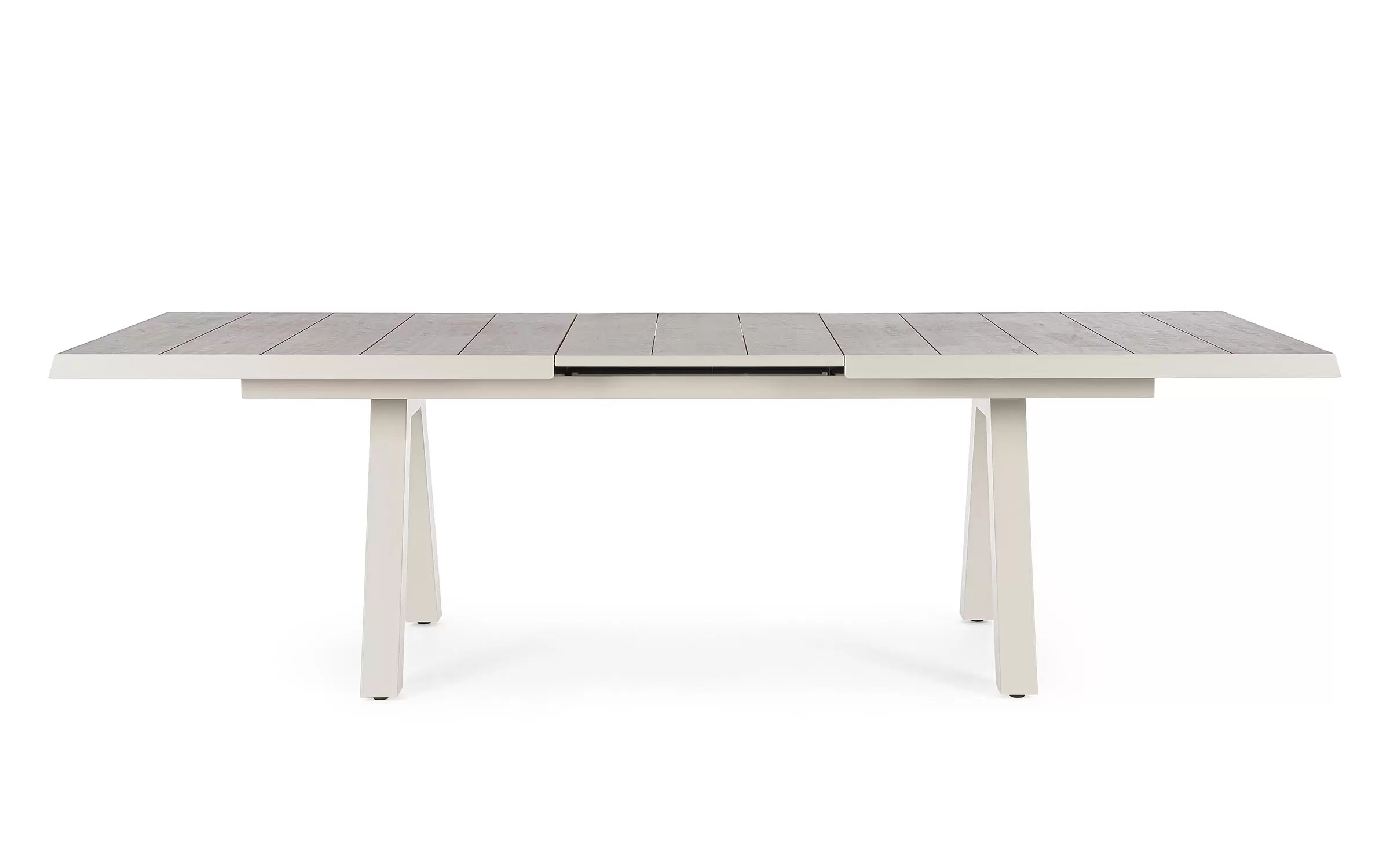 Konstrukcja aluminiowa stołu i mebli malowana proszkowo. System rozkładania automatyczny - rozsuwanie z jednej strony powoduje odsunięcie blatu z drugiej strony. Ponowne pociągnięcie podnosi wstawkę na poziom blatu.