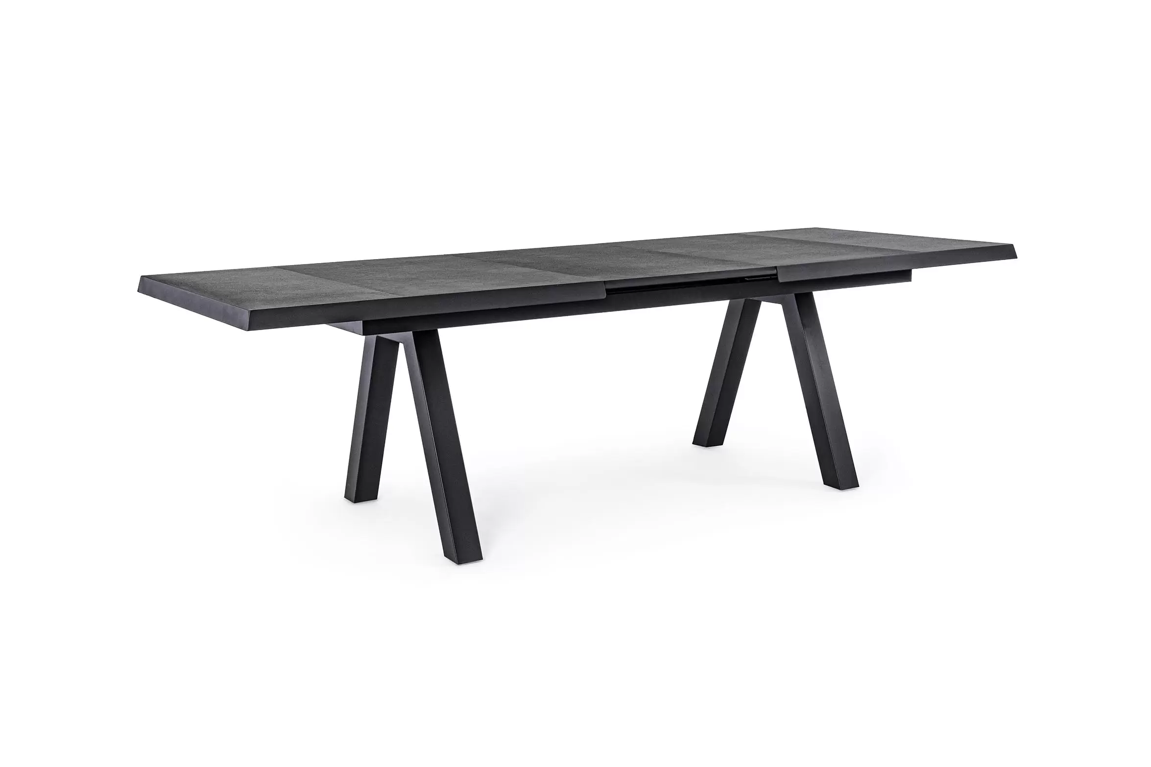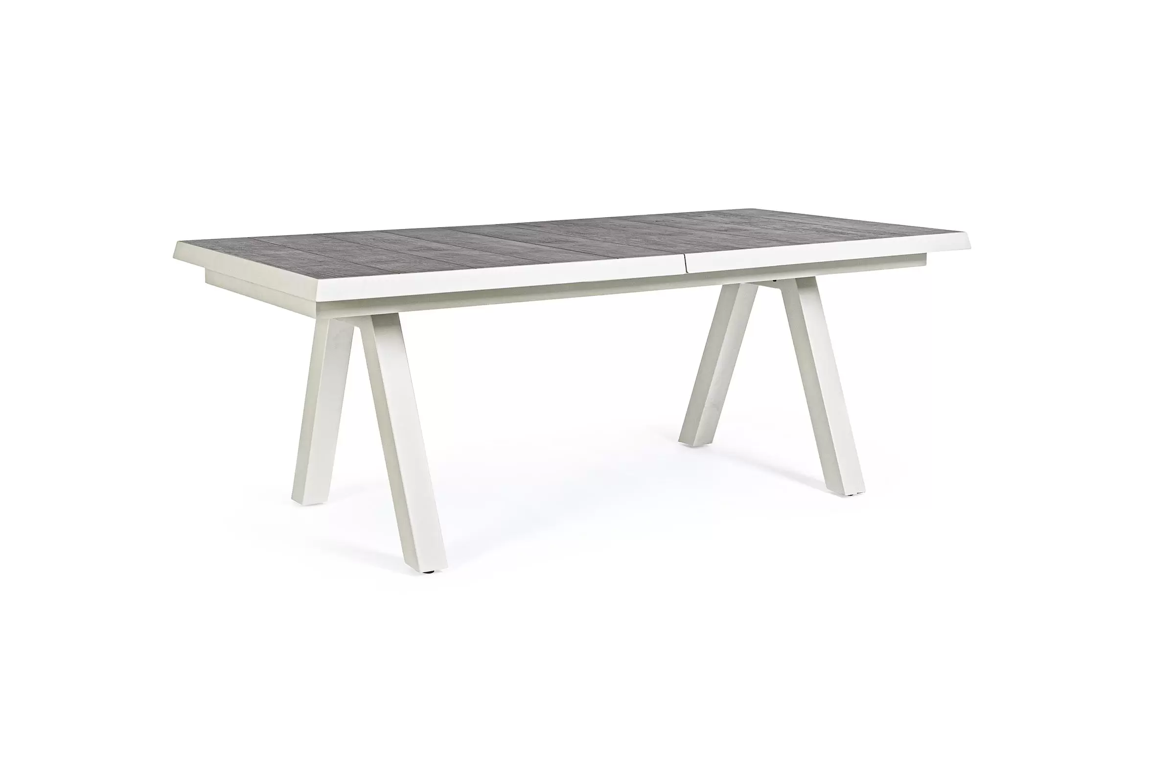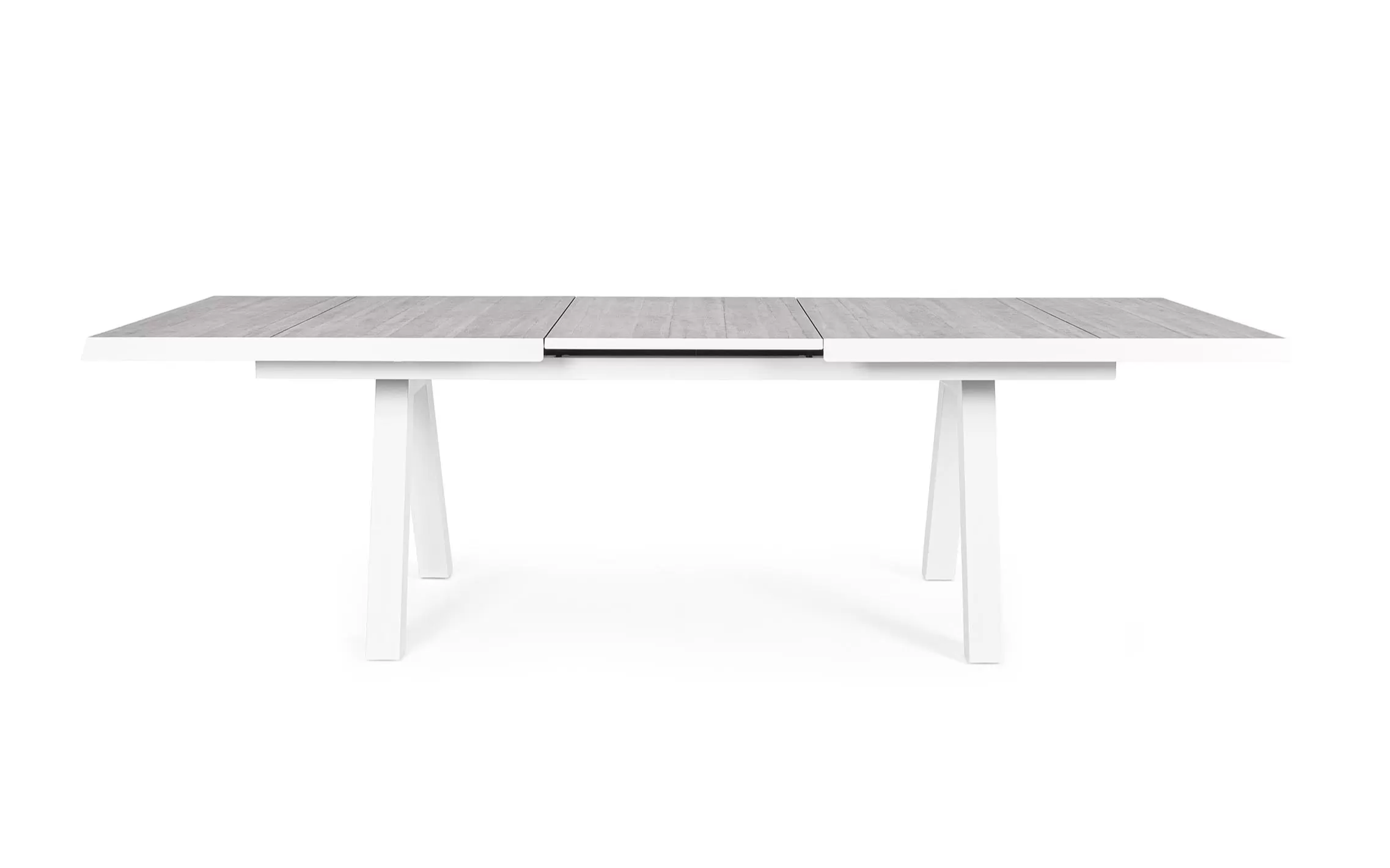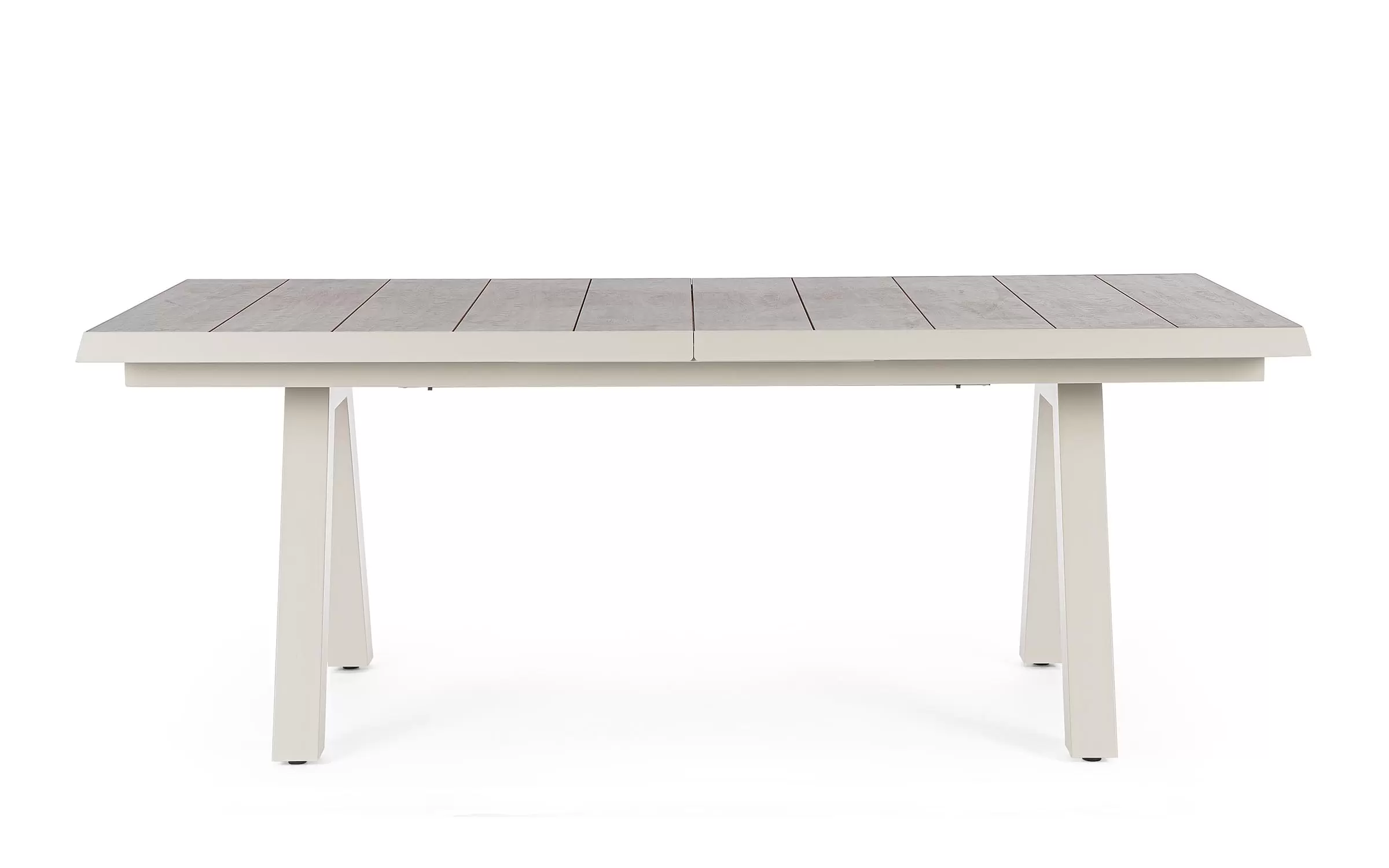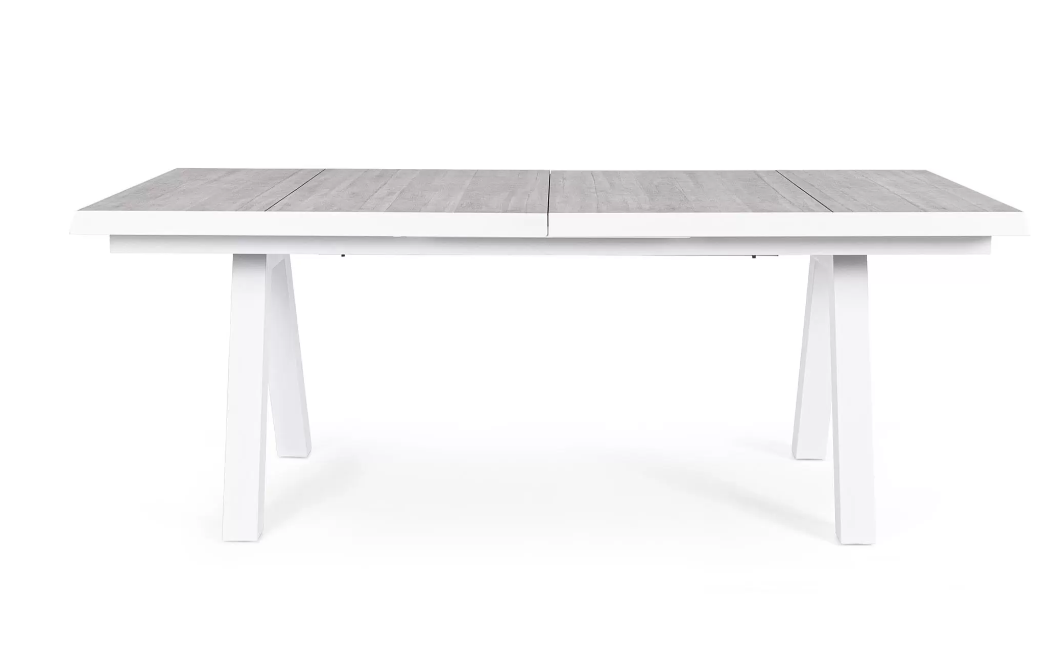 Konstrukcja aluminiowa stołu i mebli malowana proszkowo. System rozkładania automatyczny - rozsuwanie z jednej strony powoduje odsunięcie blatu z drugiej strony. Ponowne pociągnięcie podnosi wstawkę na poziom blatu.