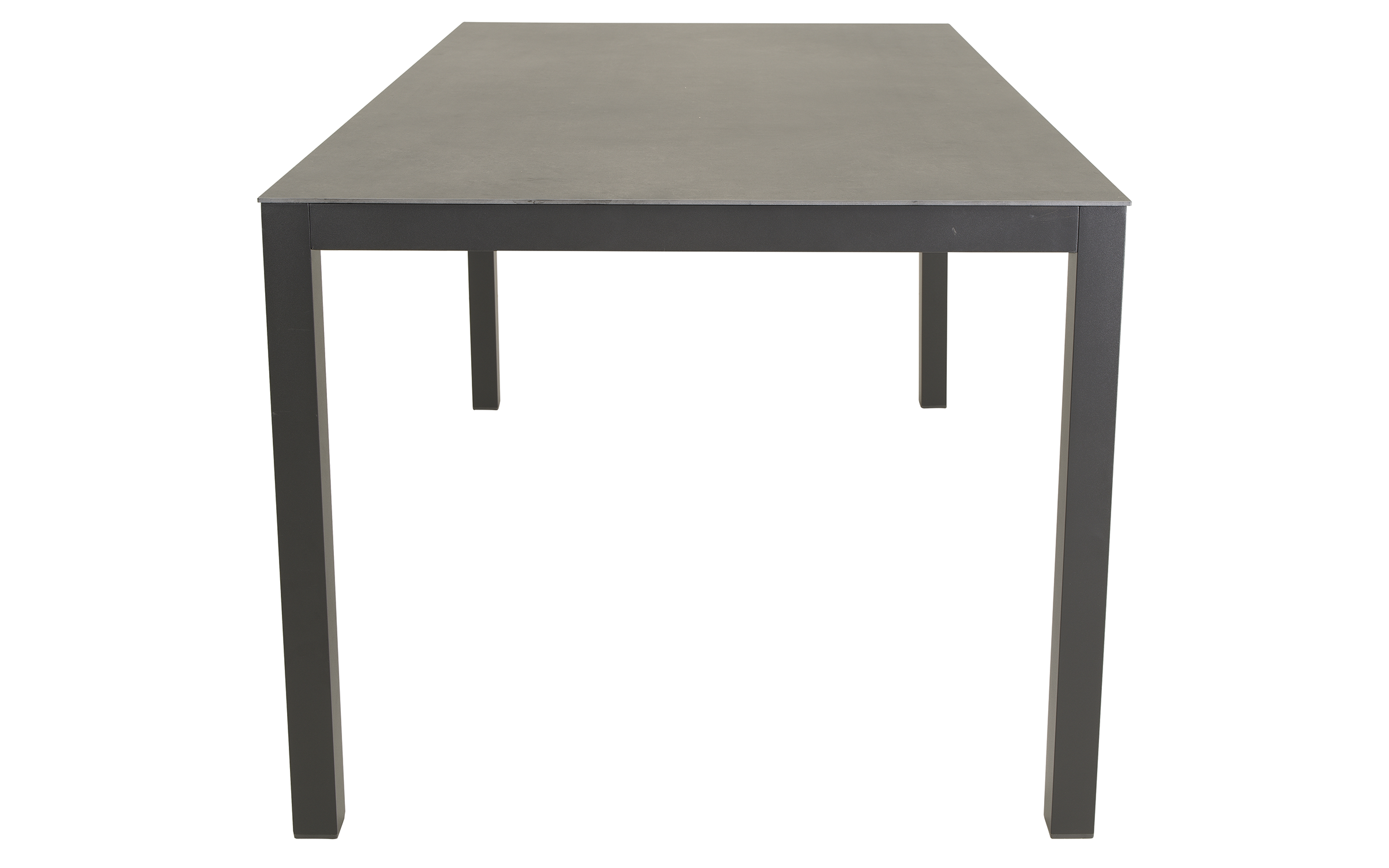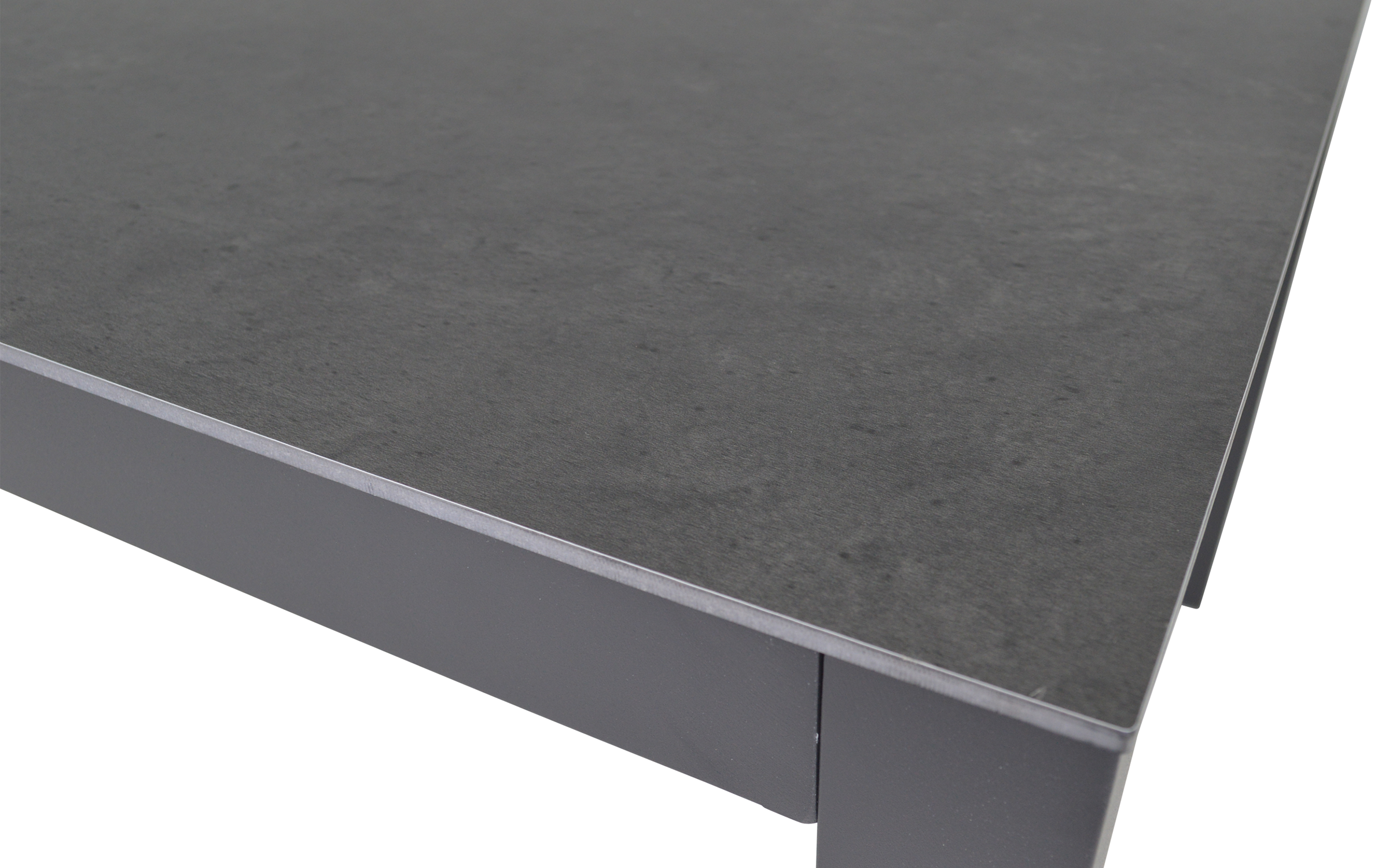 Nowoczesny stół ogrodowy wykonany z aluminium w kolorze antracyt z blatem z SPC o grubości 5 mm kolorze szarym.