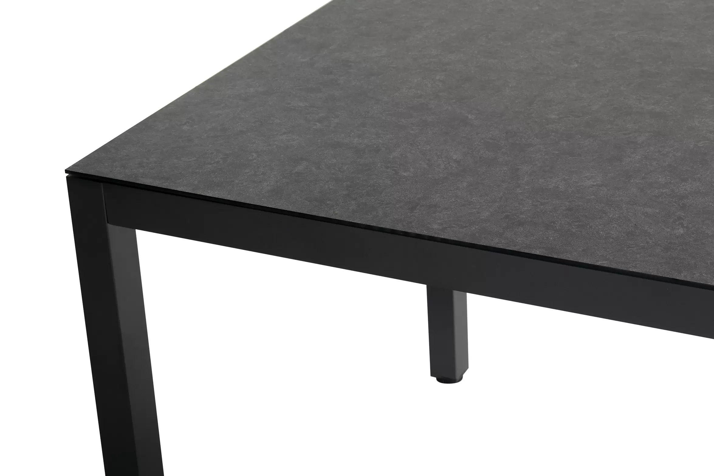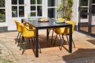 Stół ogrodowy aluminiowy z blatem SprayStone o wyglądzie kamienia.