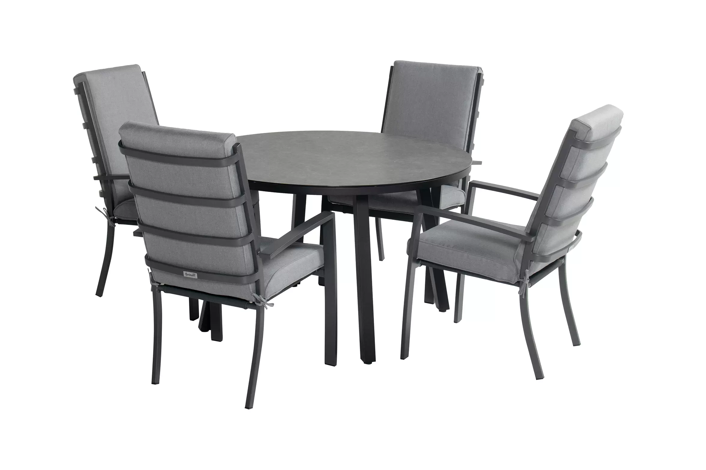 Stół ogrodowy aluminiowy grafitowy z blatem SprayStone o wyglądzie powierzchni kamiennej.