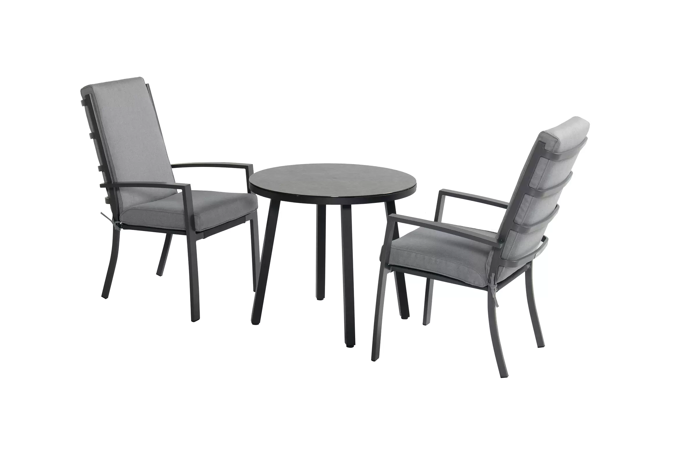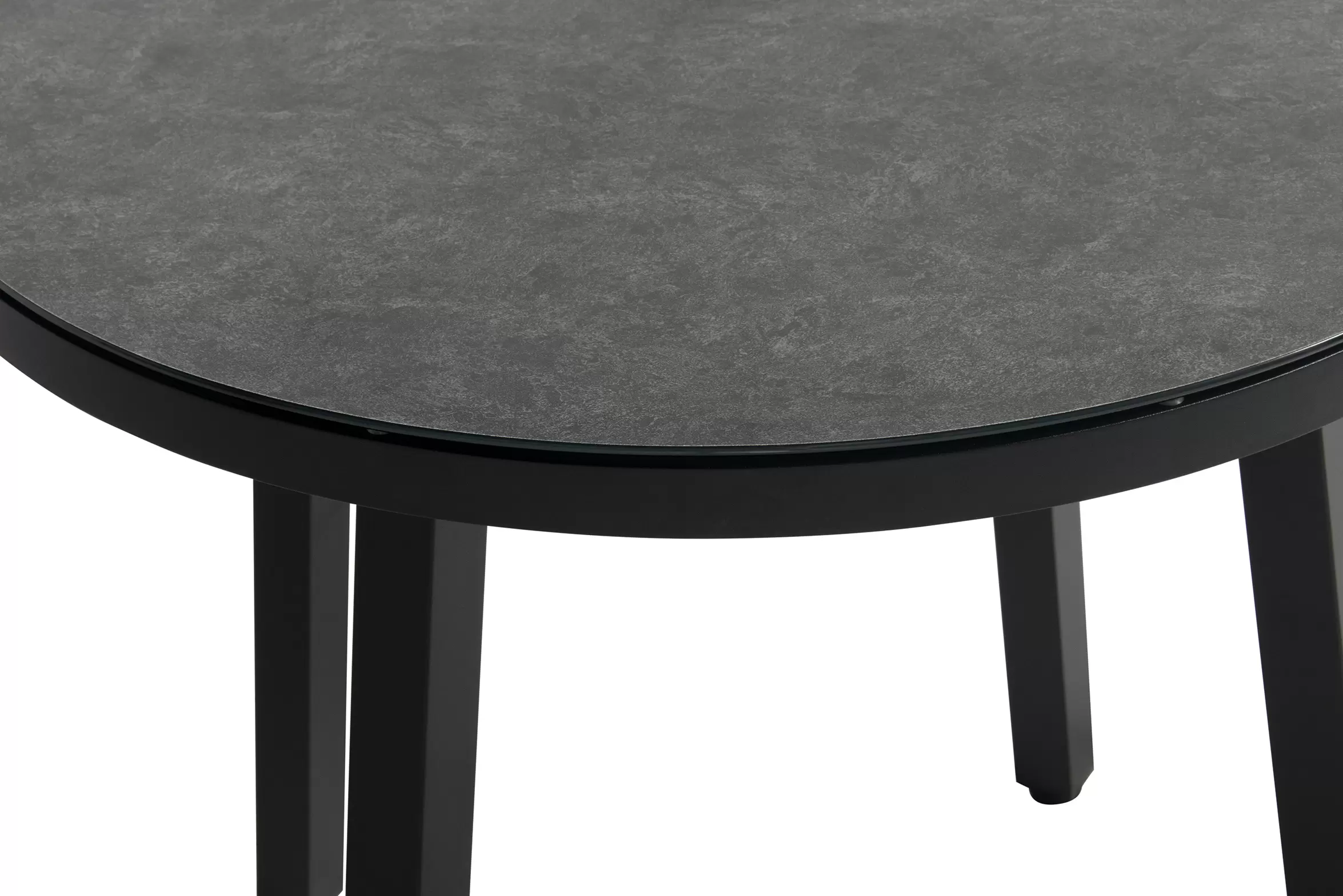 Stół ogrodowy aluminiowy z blatem SprayStone o wyglądzie powierzchni kamiennej.
