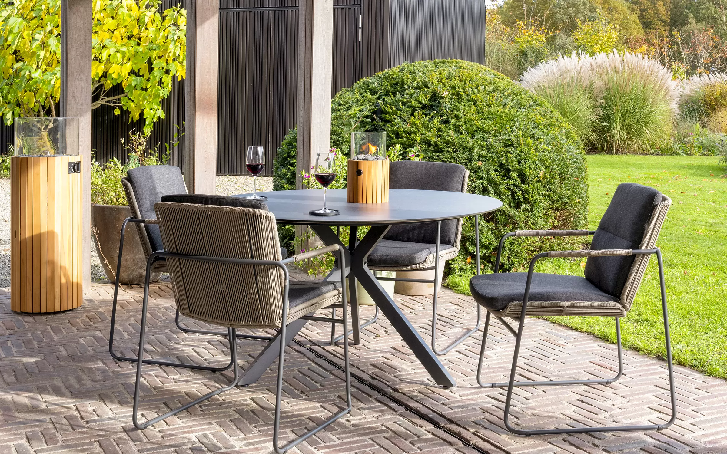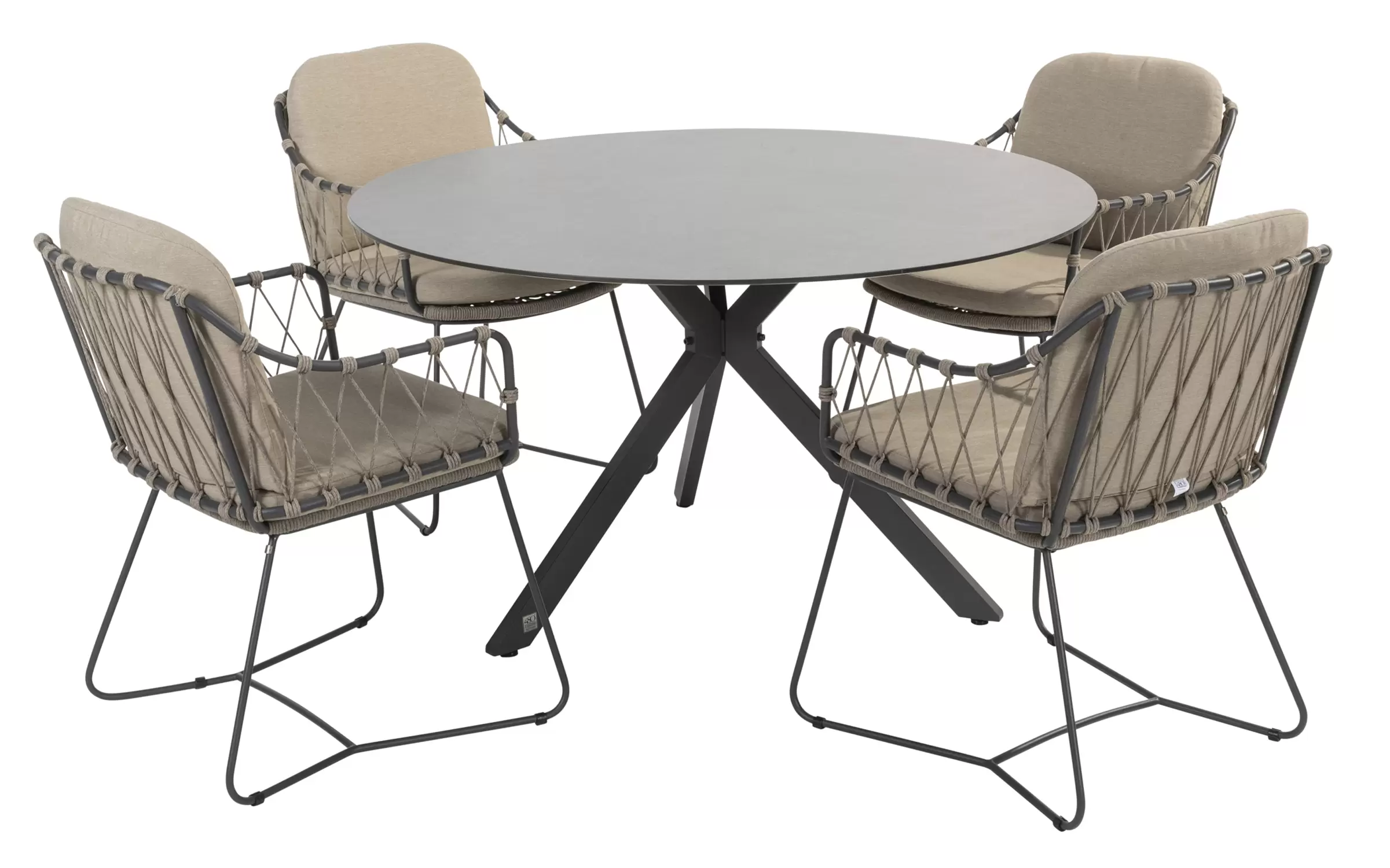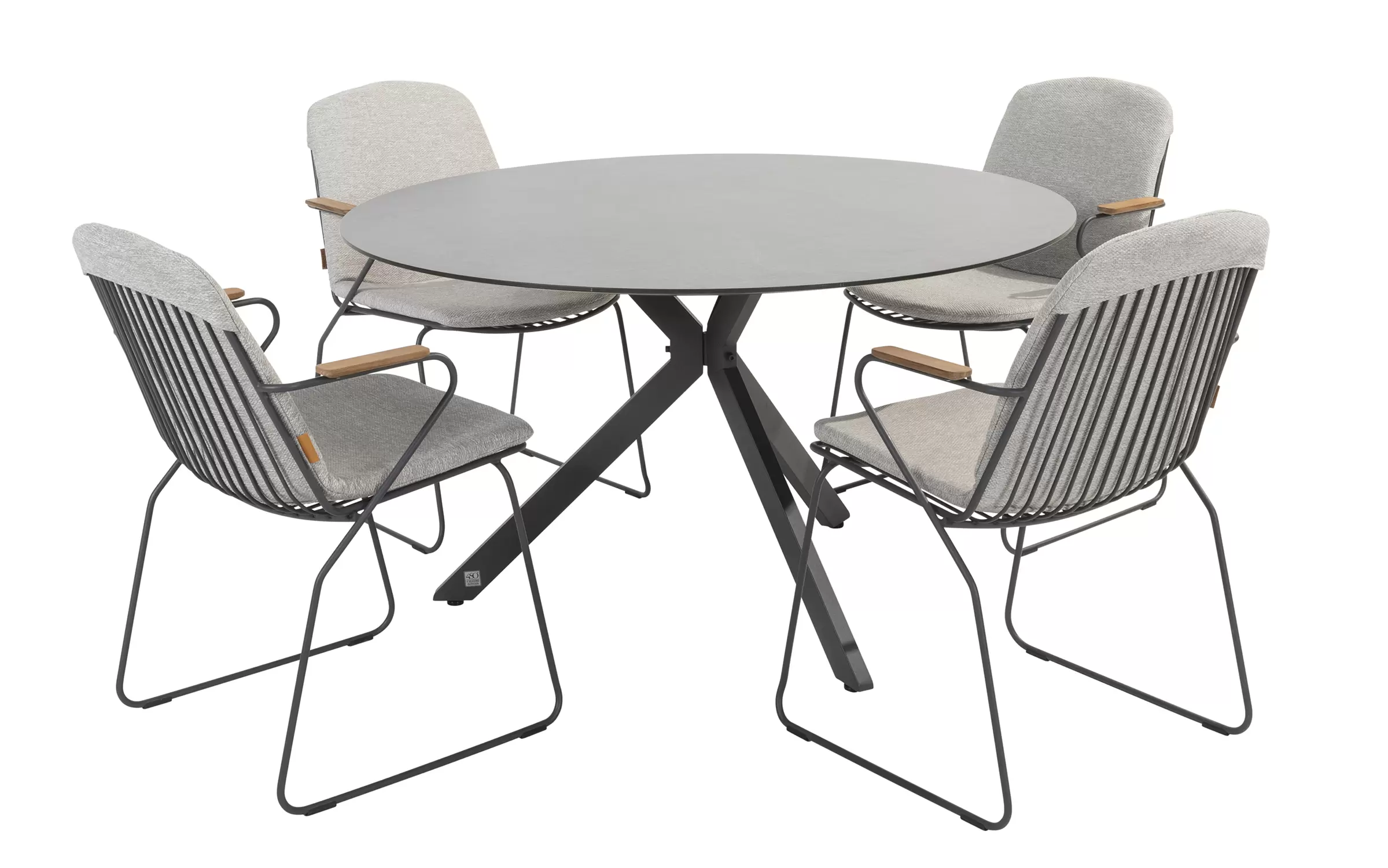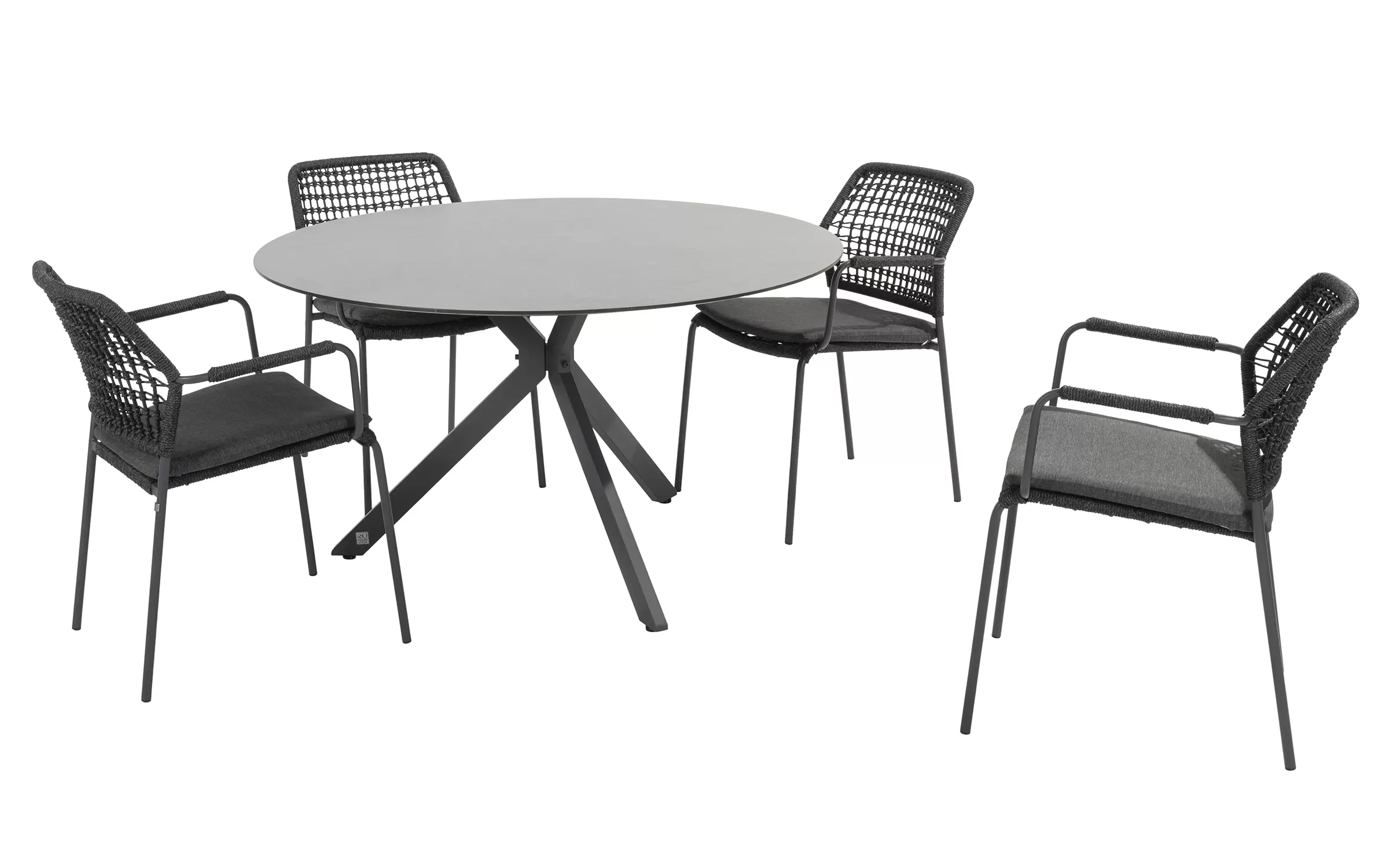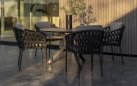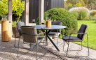 Stół Locarno marki 4 Seasons outdoor jest bardzo łatwy w utrzymaniu. Blat HPL w kolorze ciemnoszarym nadaje tarasowi nowoczesny i elegancki wygląd. W strukturze blatu widoczne są jasne żyłki, które nadają powierzchni naturalny kamienny wygląd. Podstawa z nogami krzyżowymi tworzy nowoczesny i elegancki wygląd. Podstawa zapewnia miejsce na 4 lub 5 krzeseł przy stole.