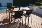 W kolekcji Marmaris marki Lesli Living spotykają się dwa wyjątkowe materiały – naturalne drewno teakowe oraz elegancka stal nierdzewna. Blat stołu wykonany z teaku emanuje solidnością i ciepłem, natomiast stalowe, szczotkowane nogi wprowadzają chłodną prostotę i nowoczesny charakter.