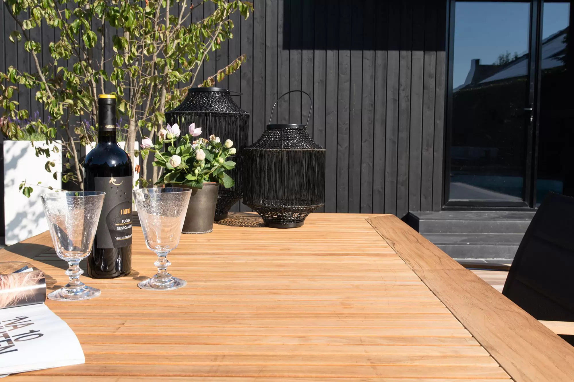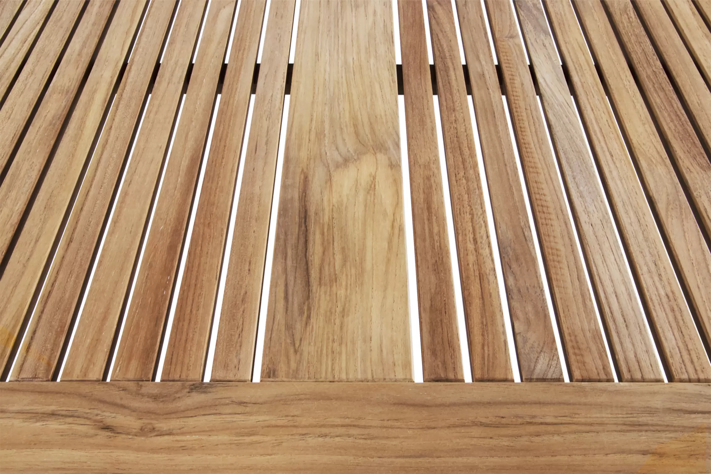 Teak użyty w serii Marmaris to surowiec najwyższej jakości – niezwykle twardy, ciężki i odporny, dzięki czemu uchodzi za niemal niezniszczalny. Jego naturalne właściwości sprawiają, że doskonale znosi ekspozycję na słońce, deszcz, mróz czy śnieg. Od wieków ceniony w produkcji mebli ogrodowych, pozostaje materiałem niezawodnym i ponadczasowym.