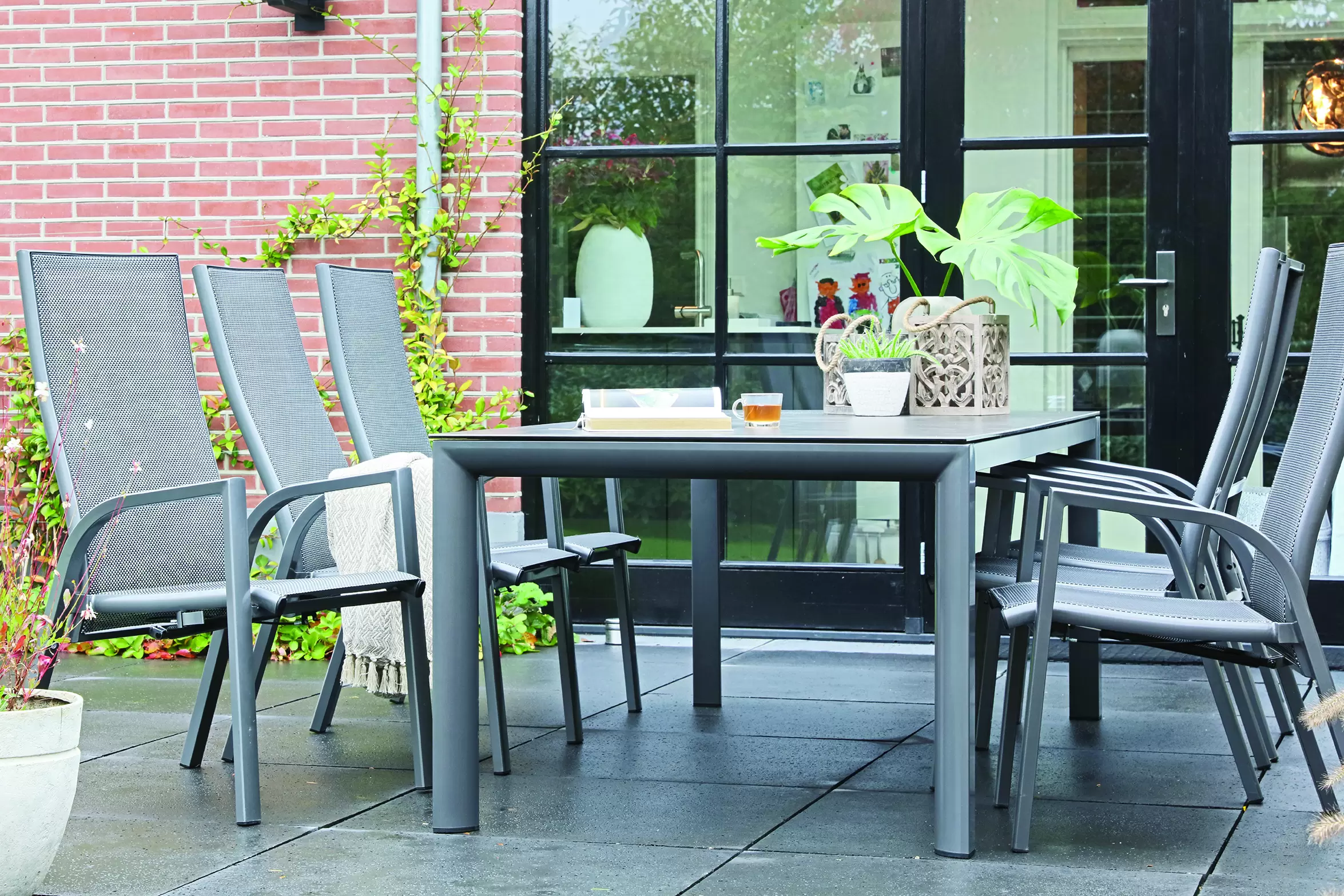 Wykonany z aluminiowej ramy w kolorze antracytu, stół Mojito Negro to świeży wygląd w Twoim ogrodzie lub na tarasie.