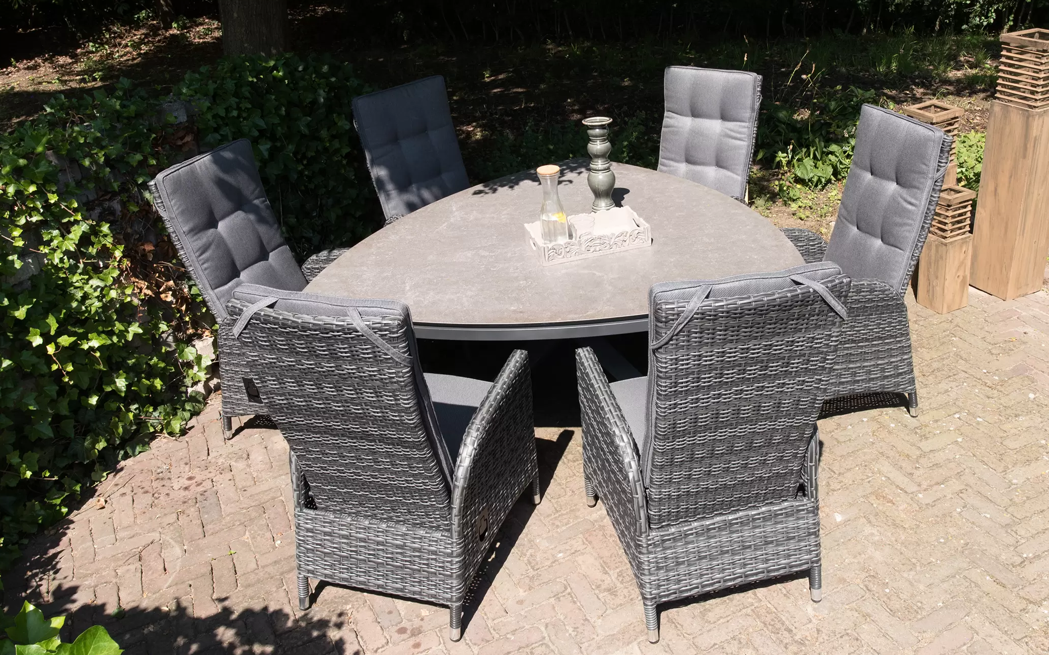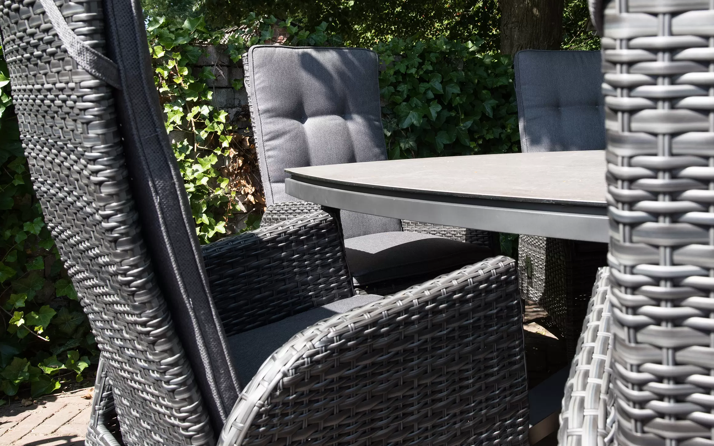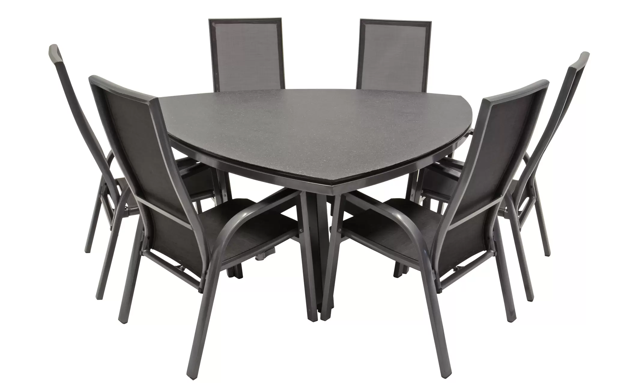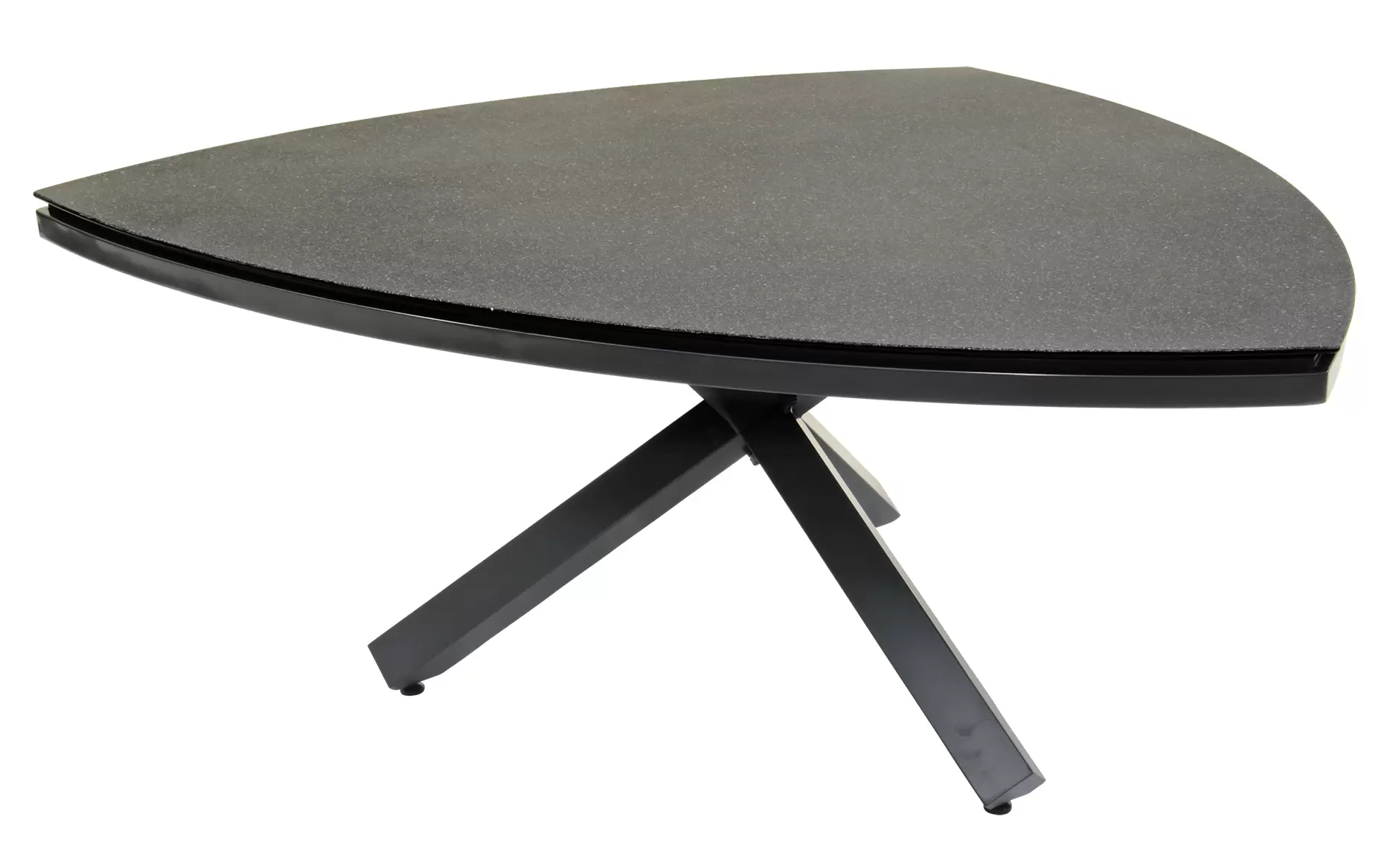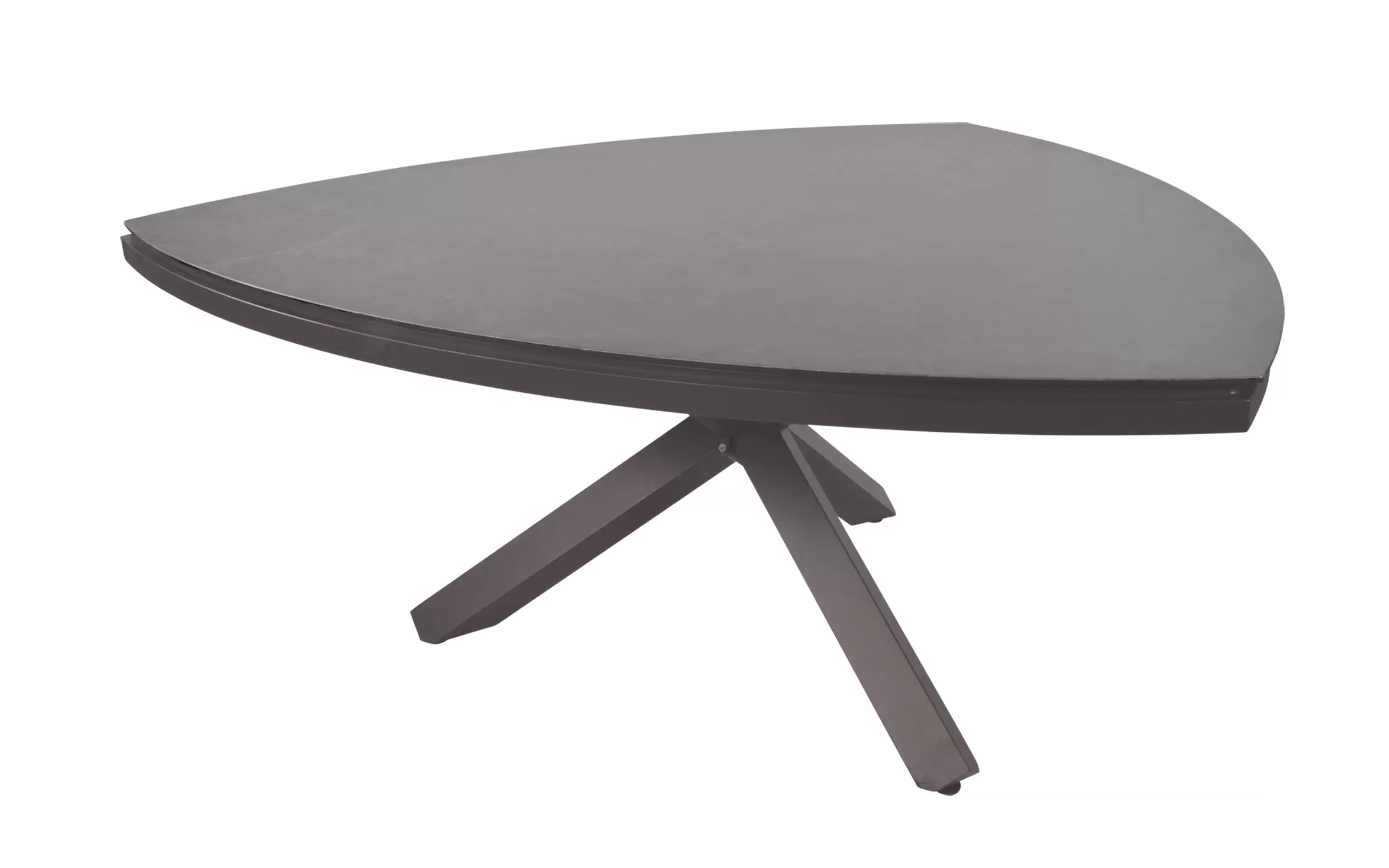 Klasyczny trójkątny stół ogrodowy, który można łączyć z szeroką gamą krzeseł. Stół Mojito ma ramę wykonaną z malowanego proszkowo aluminium i łatwy w pielęgnacji blat ze szkła ceramicznego.