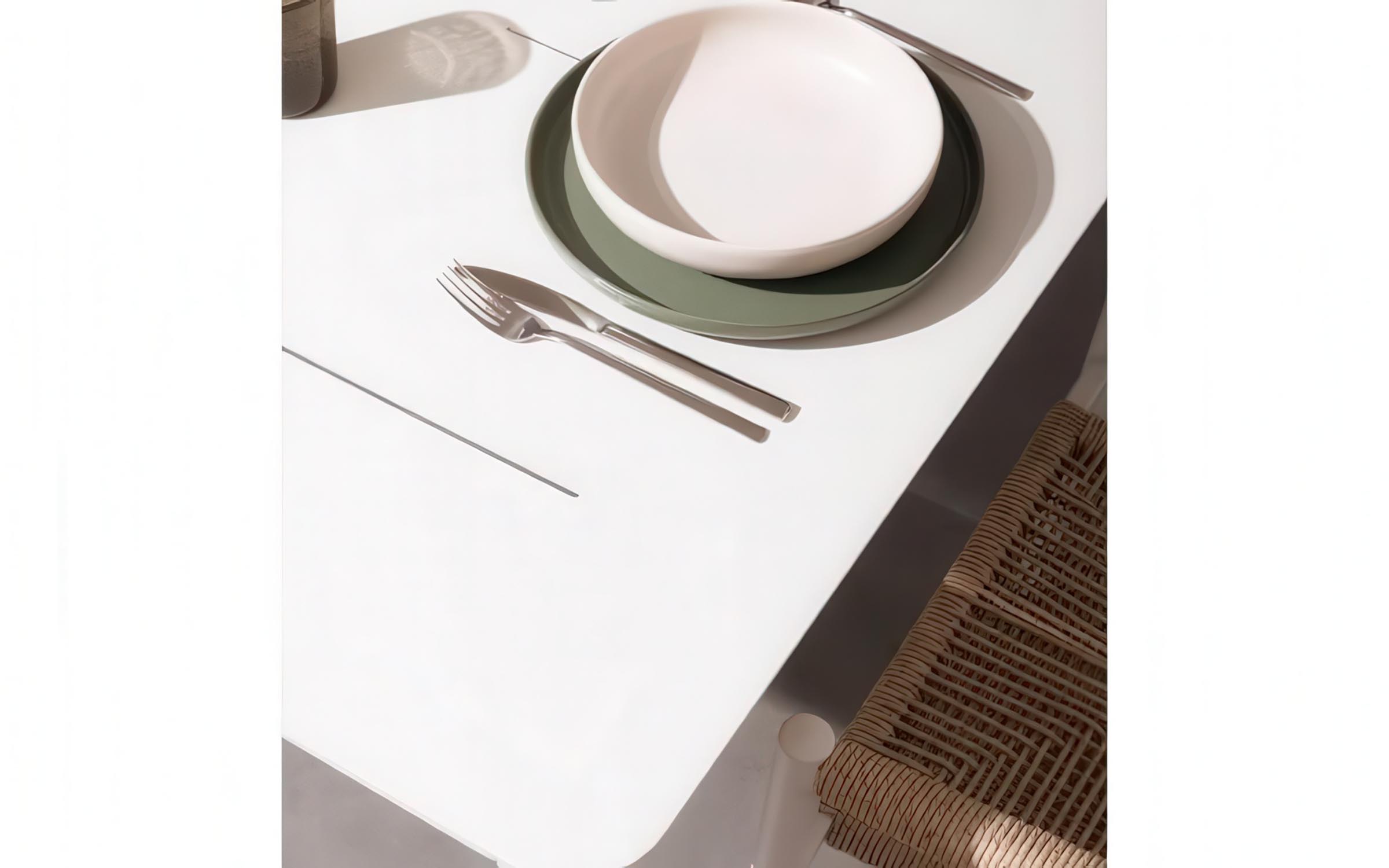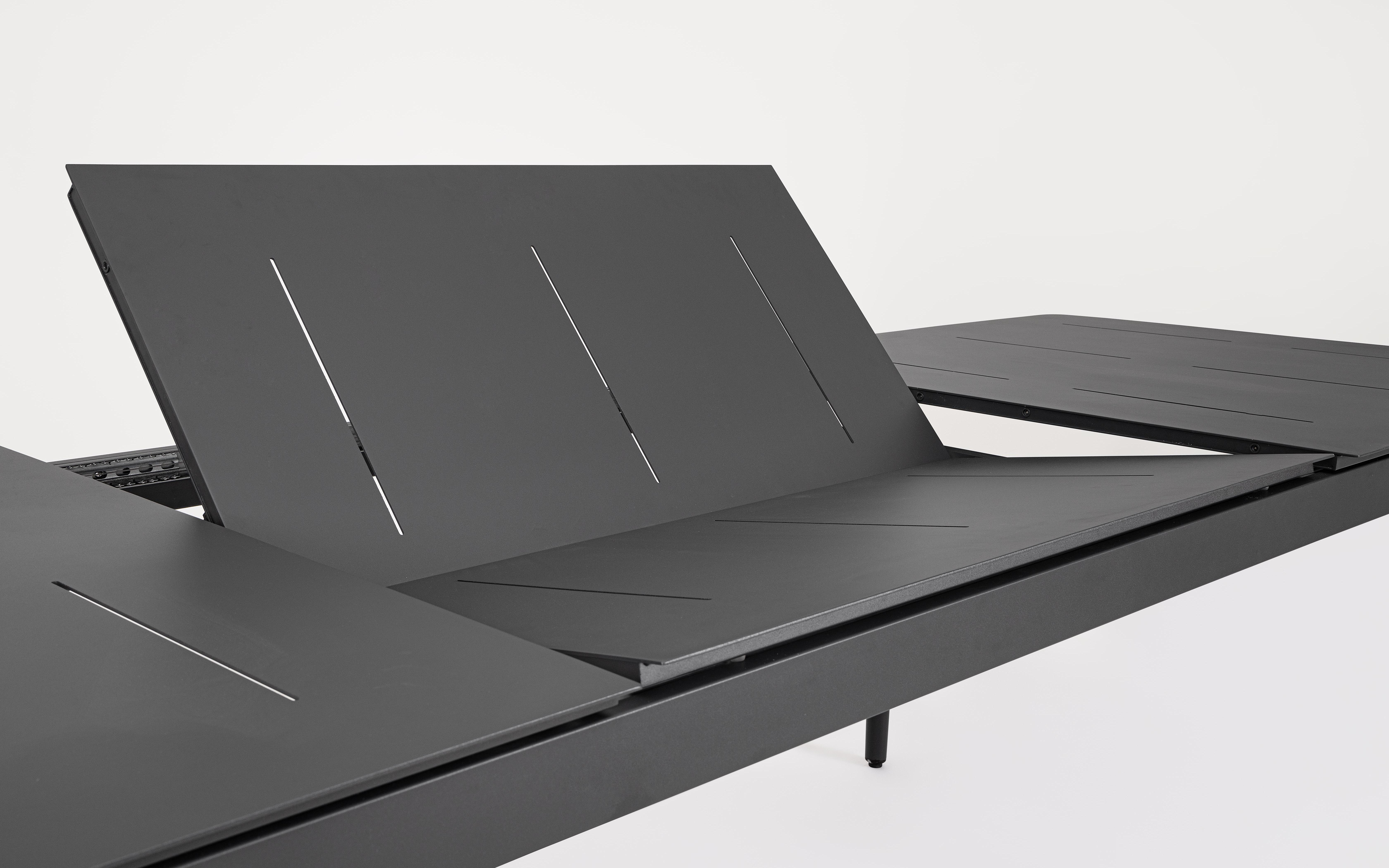 Aluminiowa konstrukcja stołu malowana proszkowo. System rozkładania motylkowy.