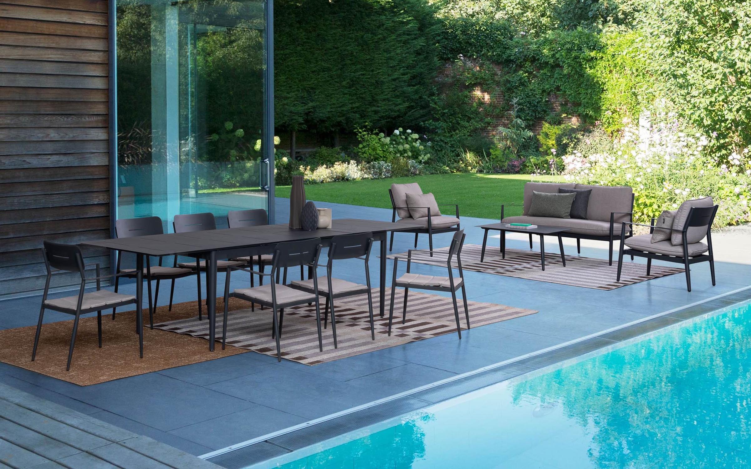 Aluminiowy rozkładany stół ogrodowy o długości 200 cm rozkładany do rozmiaru 300x100 cm.