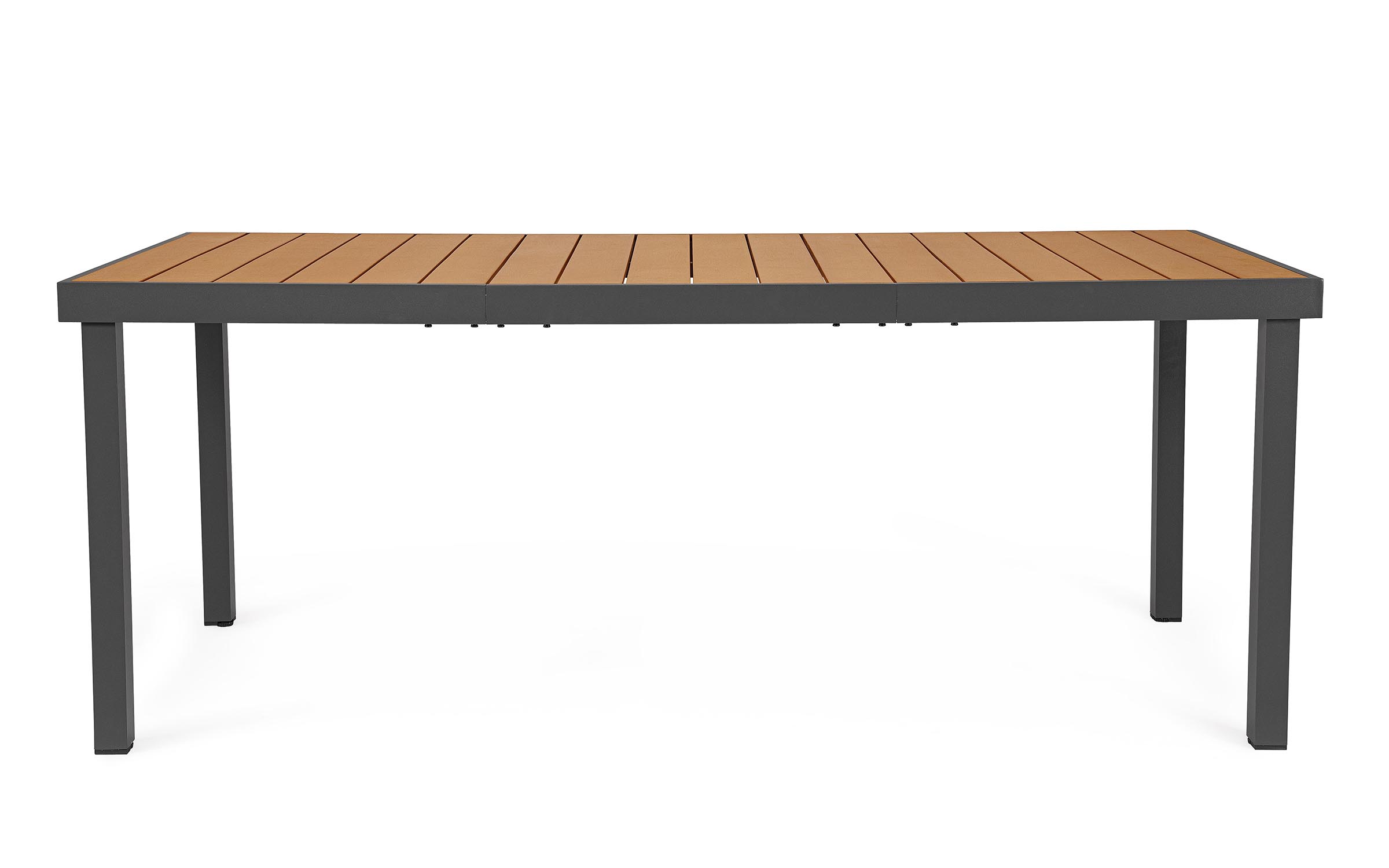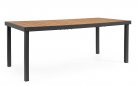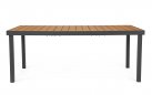 Konstrukcja aluminiowa stołu malowana proszkowo. Poprzeczne deseczki blatu wykonane z kompozytu o wyglądzie drewna.