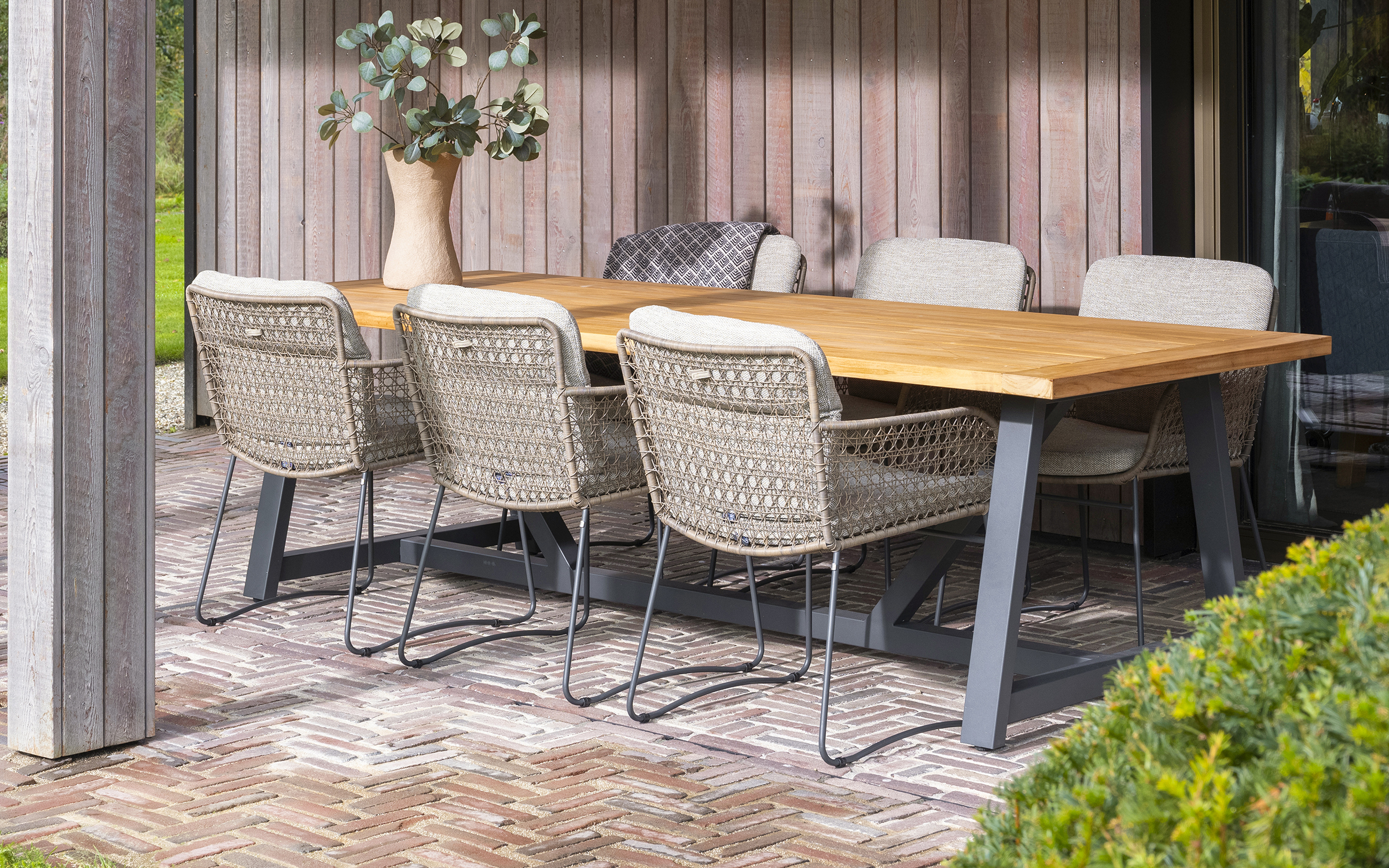 Połącz stół Noah z jednym z naszych popularnych krzeseł ogrodowych i z łatwością stwórz swój osobisty zestaw do jadalni!