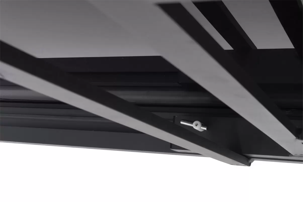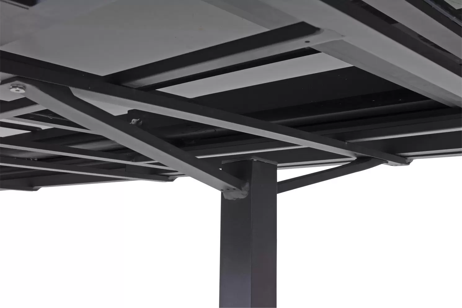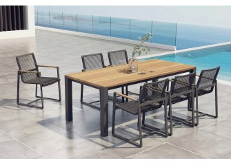 Stół obiadowy aluminiowy rozkładany na taras z blatem teak OPTIMUM / 2 stopnie rozłożenia stołu