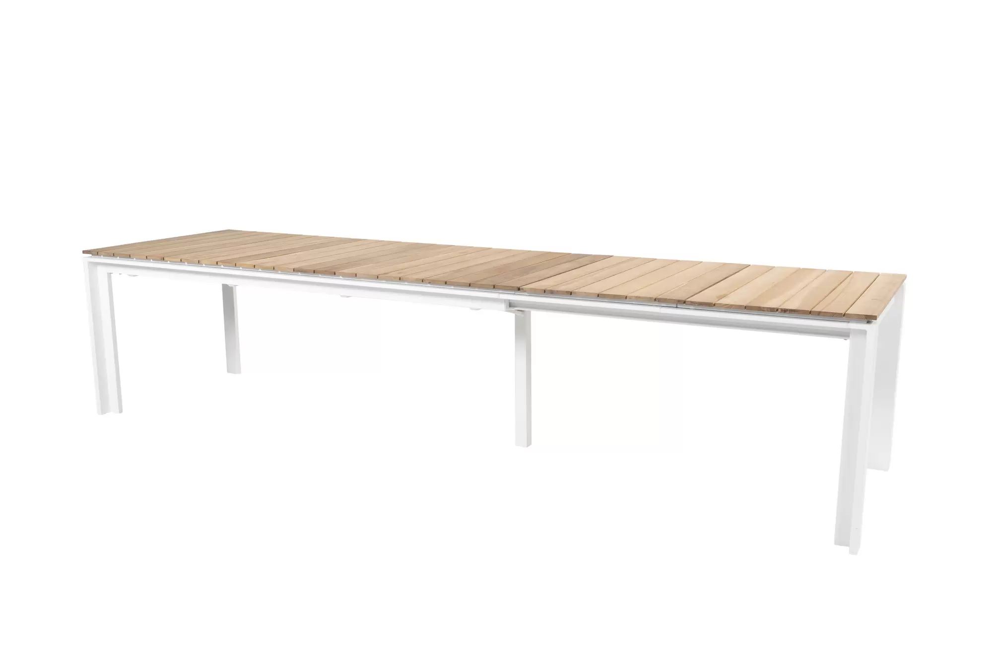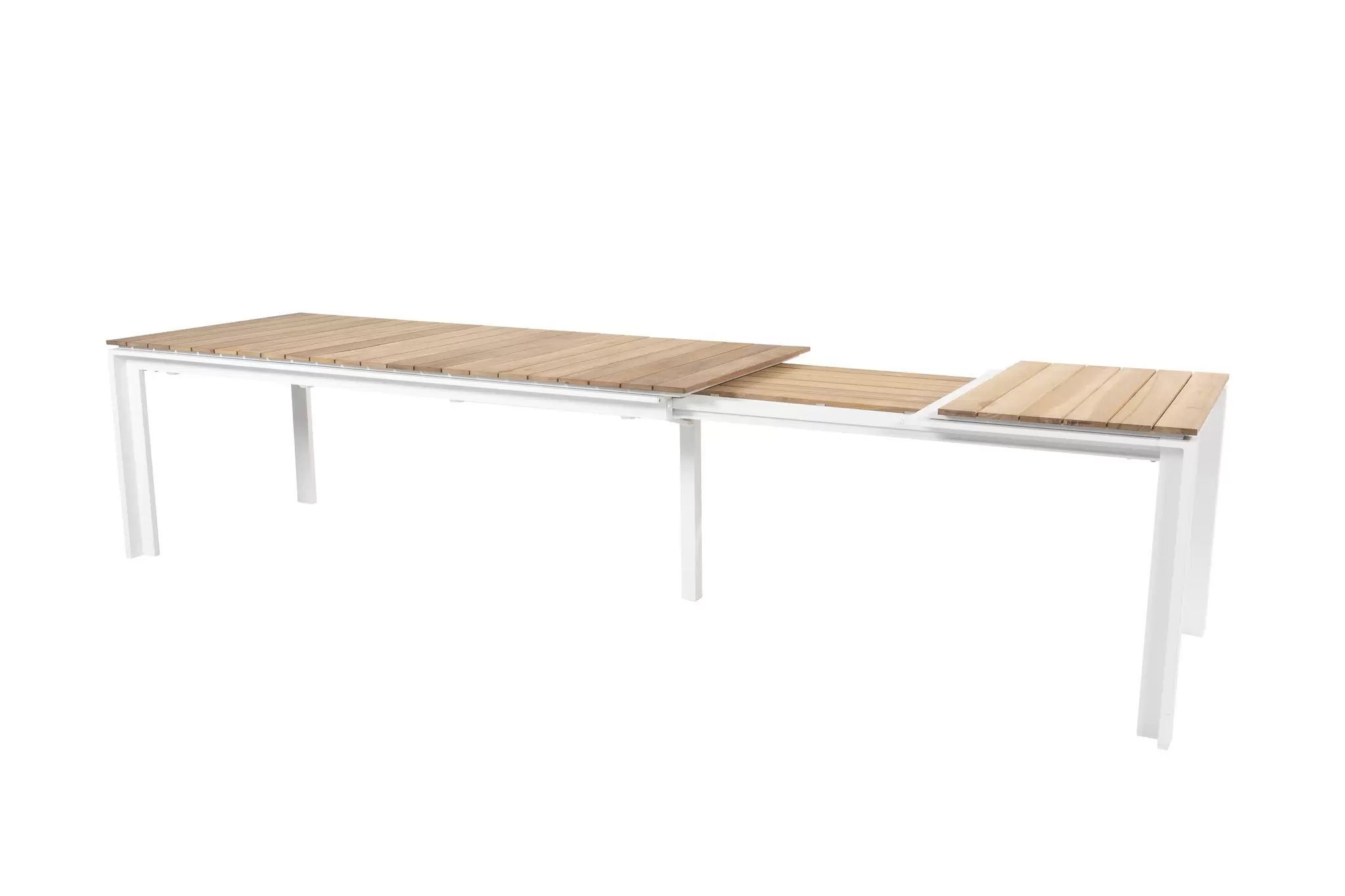 Nowoczesny rozkładany stół ogrodowy od 4SO. Stół pozwala na dwustopniowe wydłużanie długości blatu teakowego. Jeden z najnowocześniejszych i najpraktyczniejszych stołów w kolekcji 4 Seasons Outdoor, który można łączyć z wieloma krzesłami do jadalni.