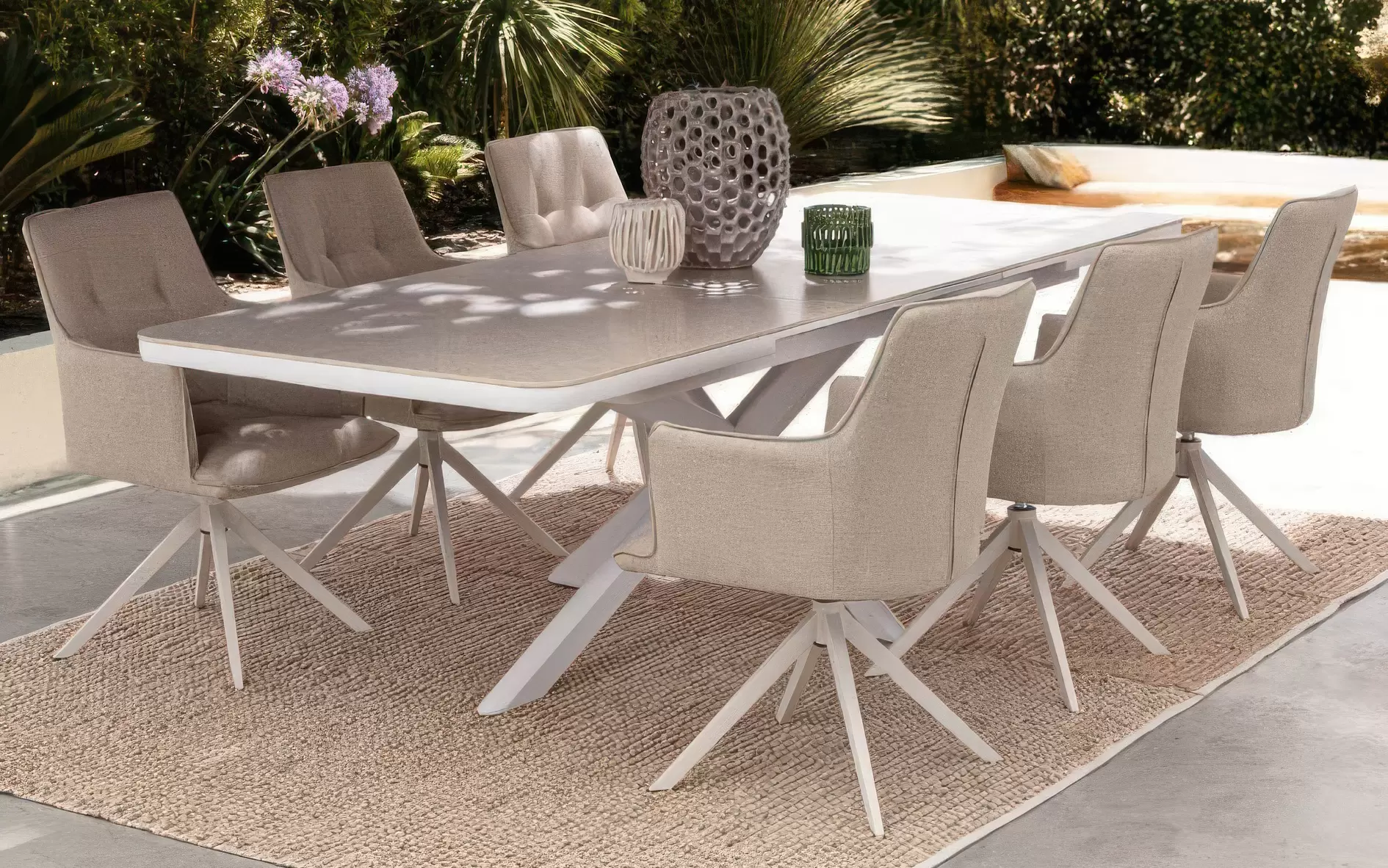 Bizzotto Pascal to luksusowy stół ogrodowy z aluminium, który dzięki inteligentnemu systemowi rozkładania dopasowuje się do Twoich potrzeb w zakresie 200–260 cm. Wykorzystanie technologii malowania proszkowego sprawia, że konstrukcja jest całkowicie odporna na korozję, zmienne temperatury oraz odbarwienia wywołane słońcem (UV). Wyposażony w płynne prowadnice teleskopowe, stół pozwala na błyskawiczne powiększenie jadalni zewnętrznej, zapewniając wygodną przestrzeń dla grupy 10 osób. Szeroki na 100 cm blat oraz stabilny stelaż sprawiają, że model Pascal to synonim włoskiej funkcjonalności, idealnie wpisujący się w aranżacje nowoczesnych ogrodów i przestrzeni typu outdoor dining.