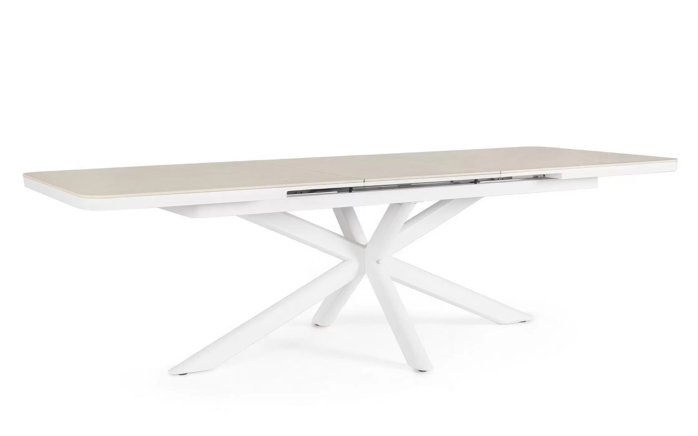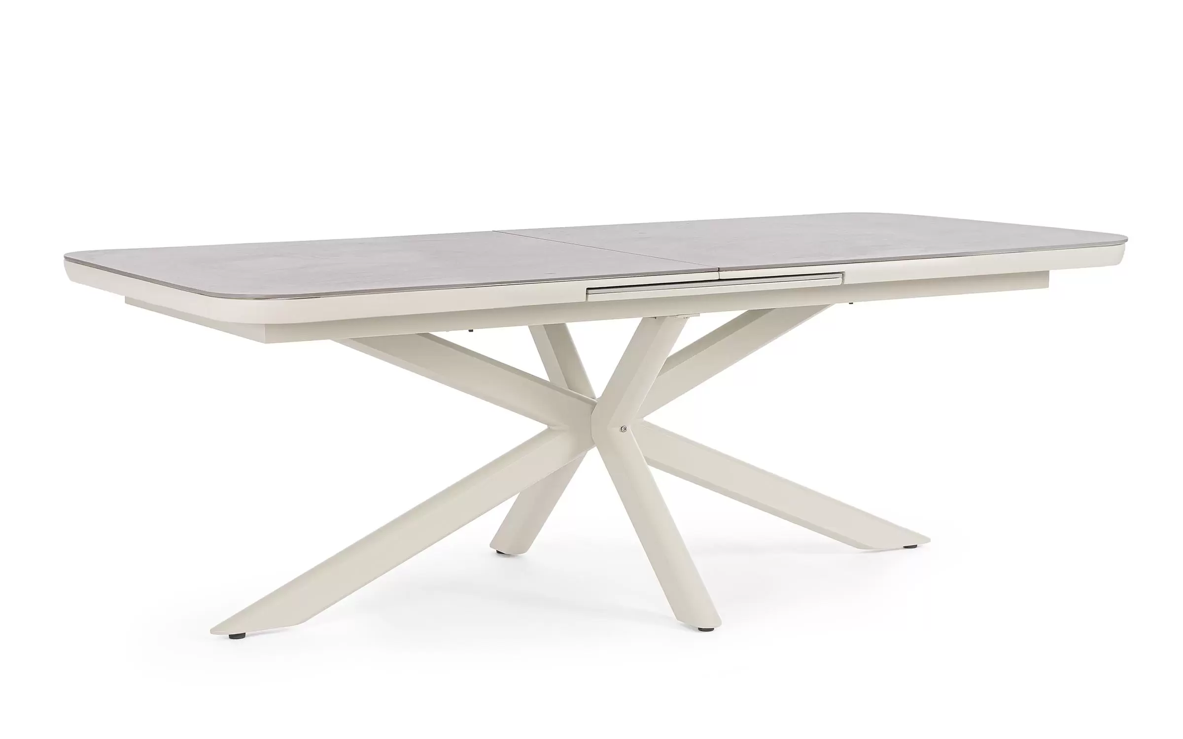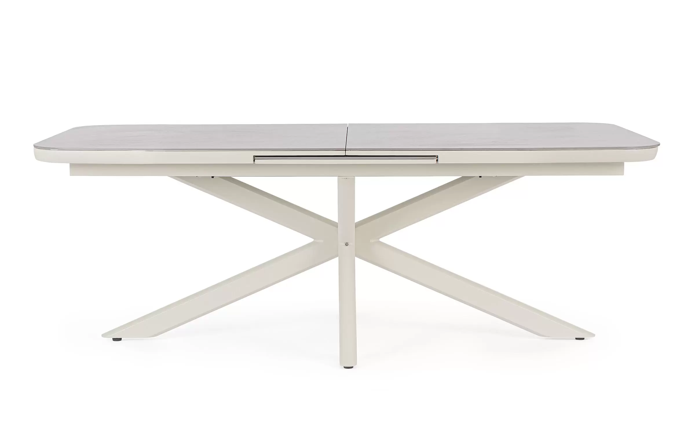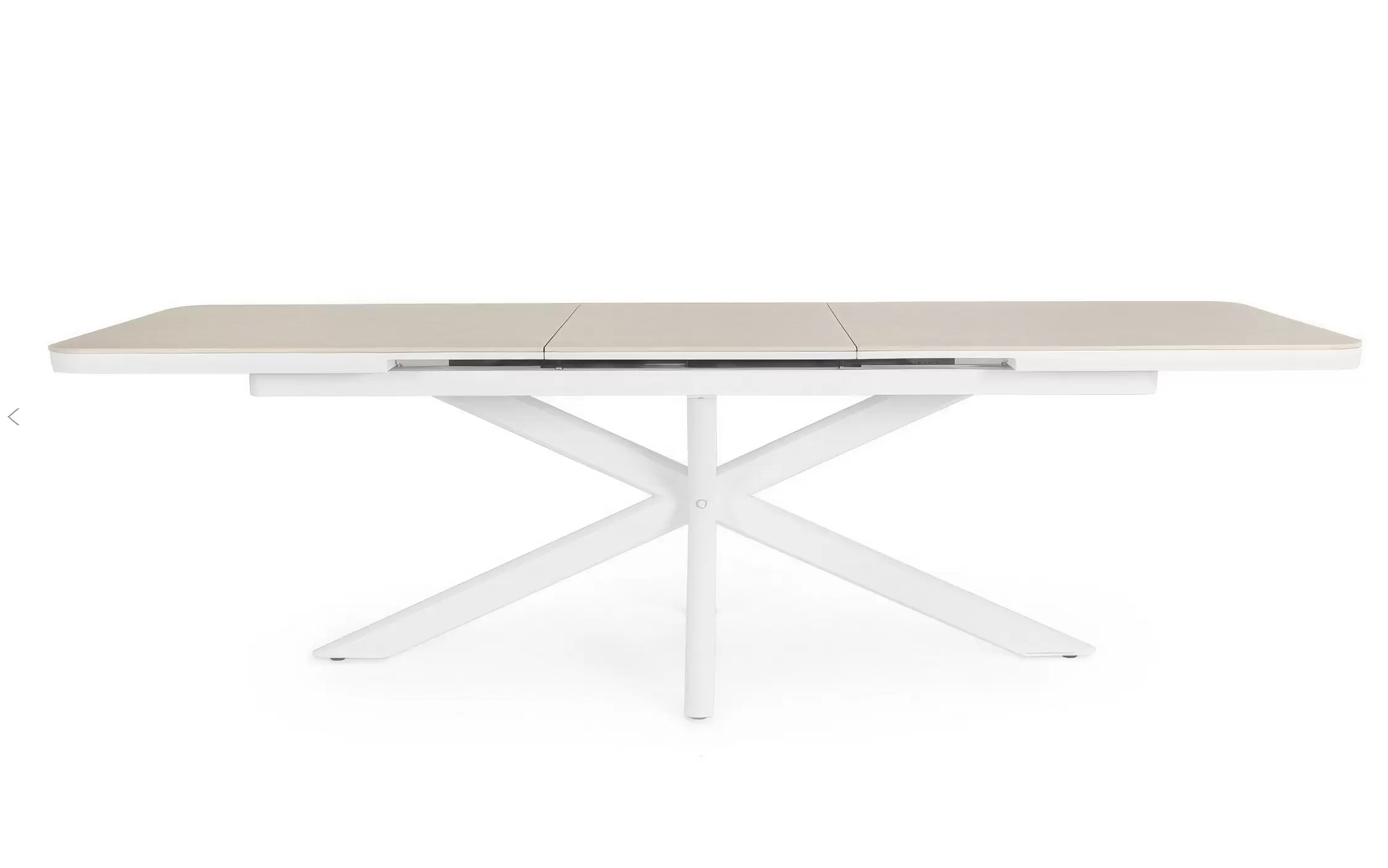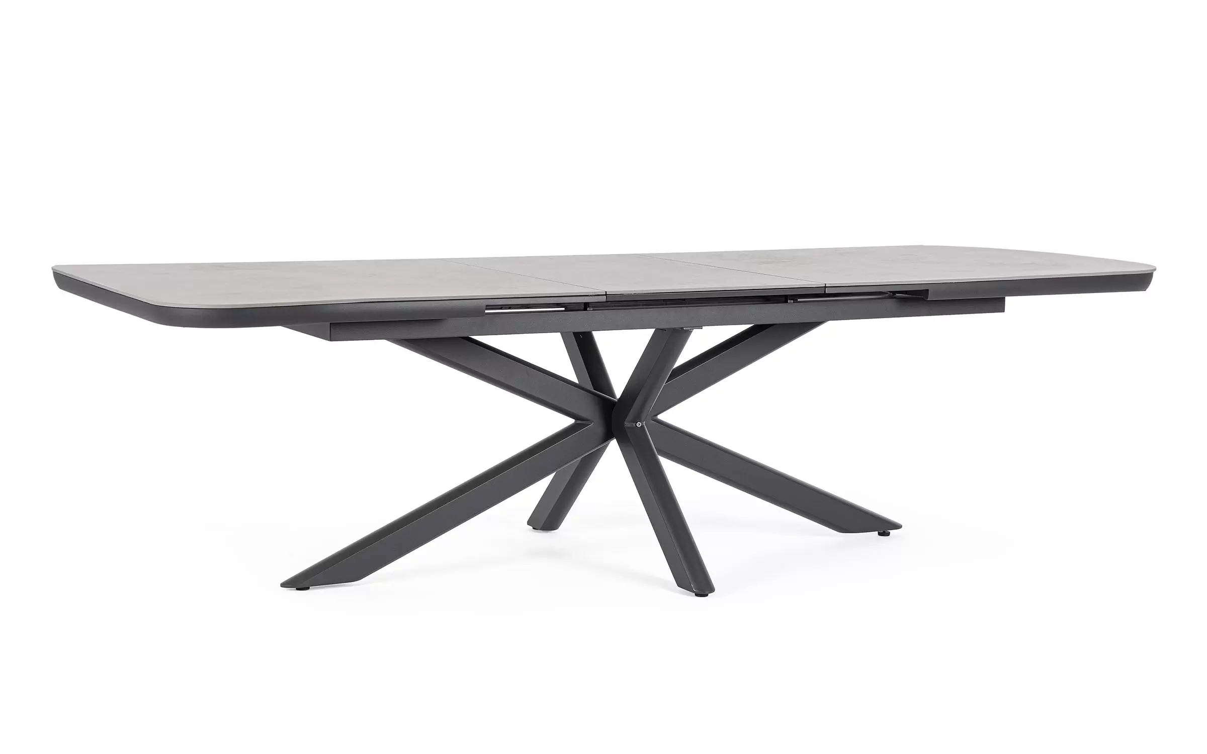 Konstrukcja aluminiowa stołu malowana proszkowo. System rozkładania automatyczny - rozsuwanie z jednej strony powoduje odsunięcie blatu z drugiej strony. Ponowne pociągnięcie podnosi wstawkę na poziom blatu.