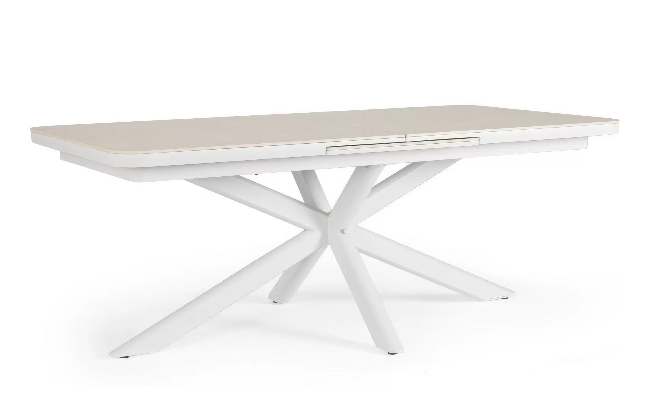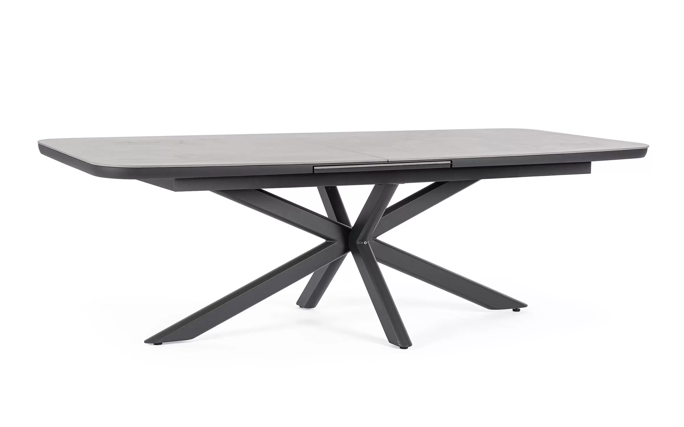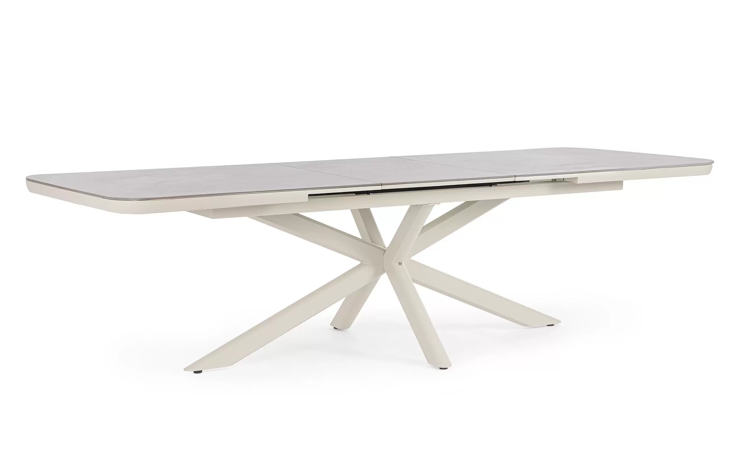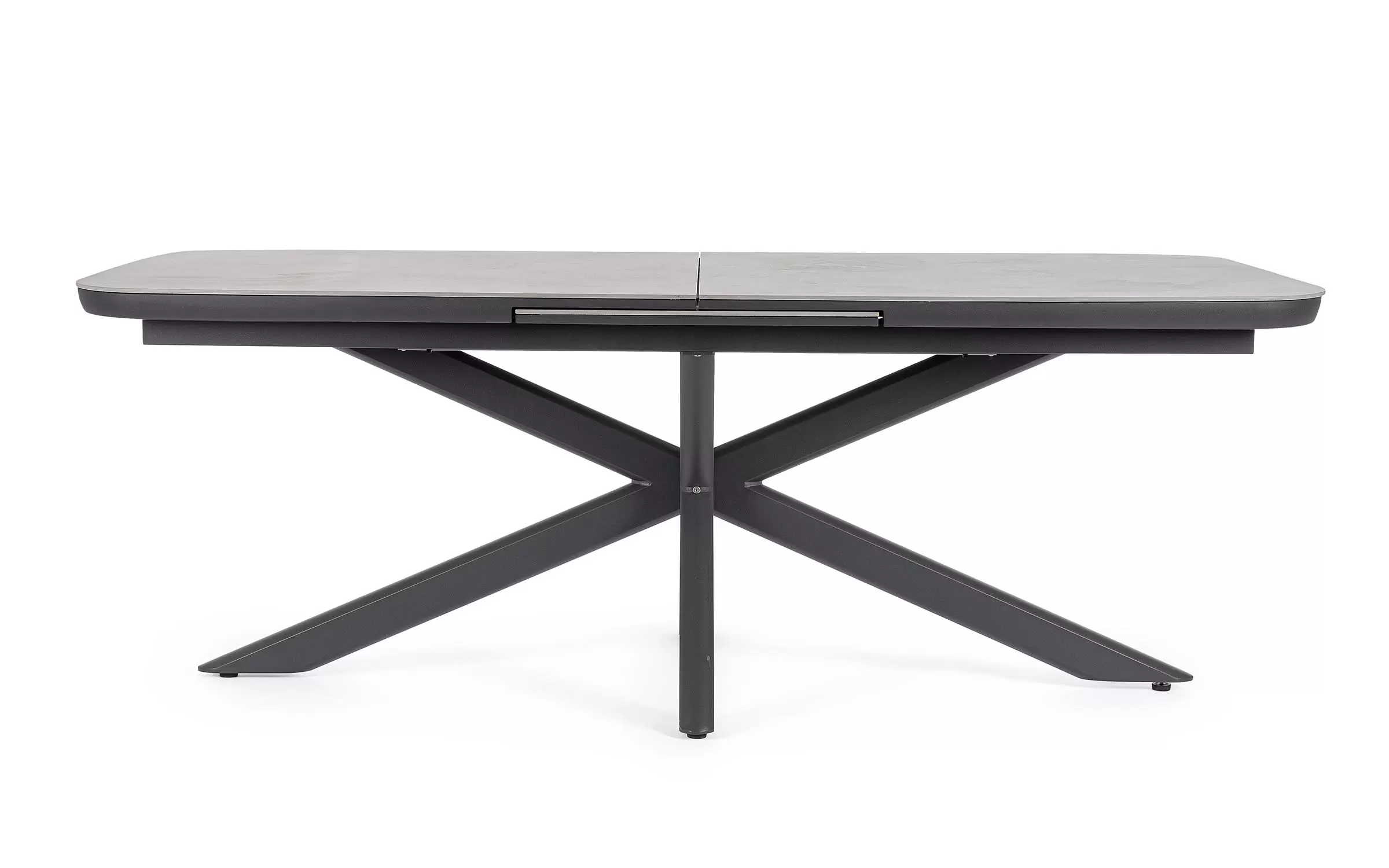 Konstrukcja aluminiowa stołu malowana proszkowo. System rozkładania automatyczny - rozsuwanie z jednej strony powoduje odsunięcie blatu z drugiej strony. Ponowne pociągnięcie podnosi wstawkę na poziom blatu.