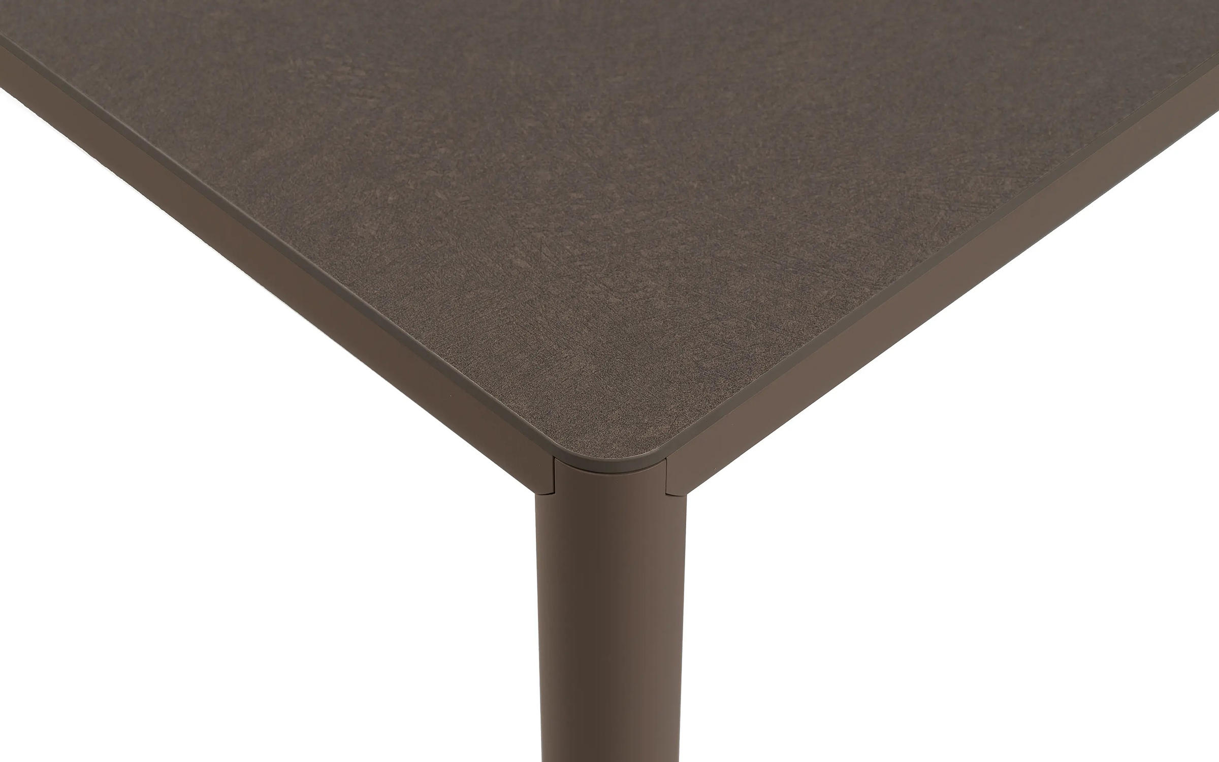 Stół PIAVE to zaawansowany projekt włoskiej marki Nardi, który łączy minimalistyczną formę z ekstremalną wytrzymałością materiałów. Głównym elementem konstrukcyjnym jest cienki, a zarazem niezwykle sztywny blat wykonany z laminatu HPL Solid Core, charakteryzujący się zaokrąglonymi narożnikami oraz wysoką odpornością na zarysowania i zmienne warunki pogodowe. Stabilność mebla gwarantuje stelaż z aluminium malowanego proszkowo, który dzięki matowemu wykończeniu nie tylko prezentuje się nowocześnie, ale jest także wyjątkowo łatwy w bieżącej konserwacji.
