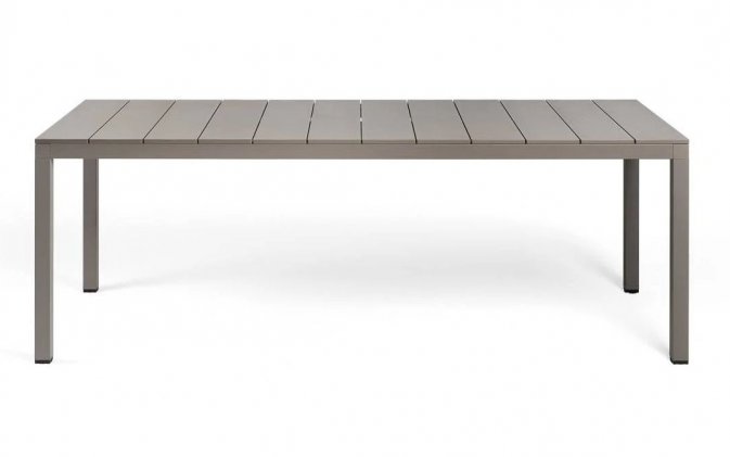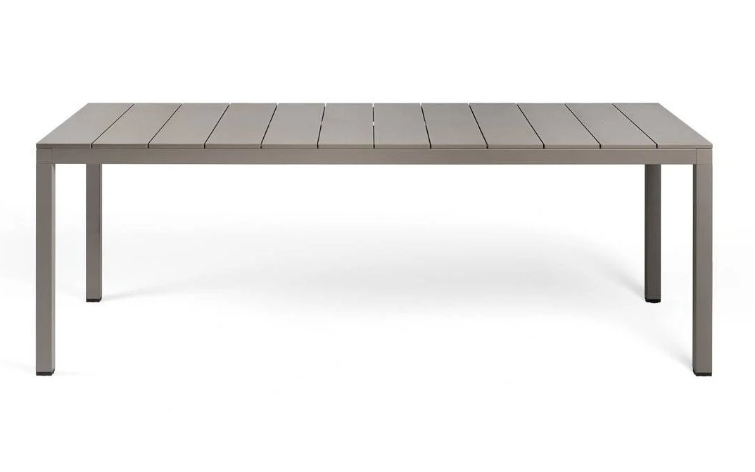 RIO ALU 140 EXT to kompaktowy stół ogrodowy włoskiej marki Nardi, wykonany w całości z malowanego proszkowo aluminium. Listwowy blat oraz minimalistyczna forma nadają mu nowoczesny, architektoniczny charakter, idealny do tarasów i ogrodów.