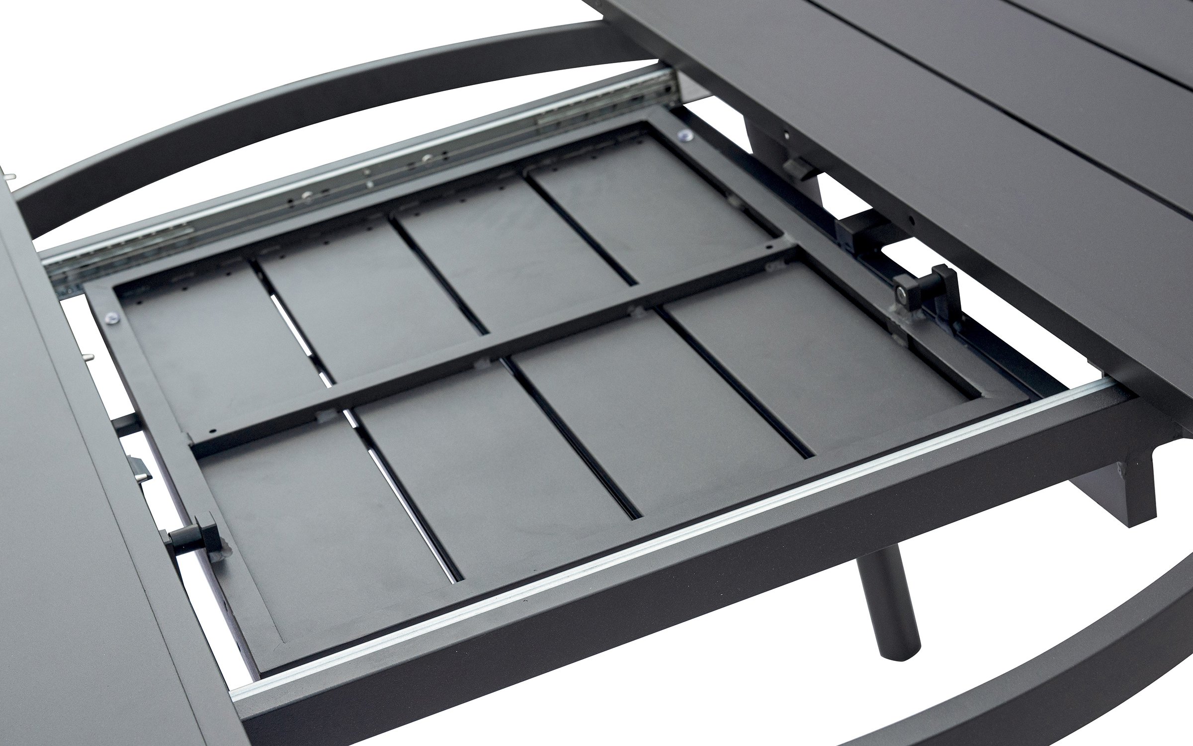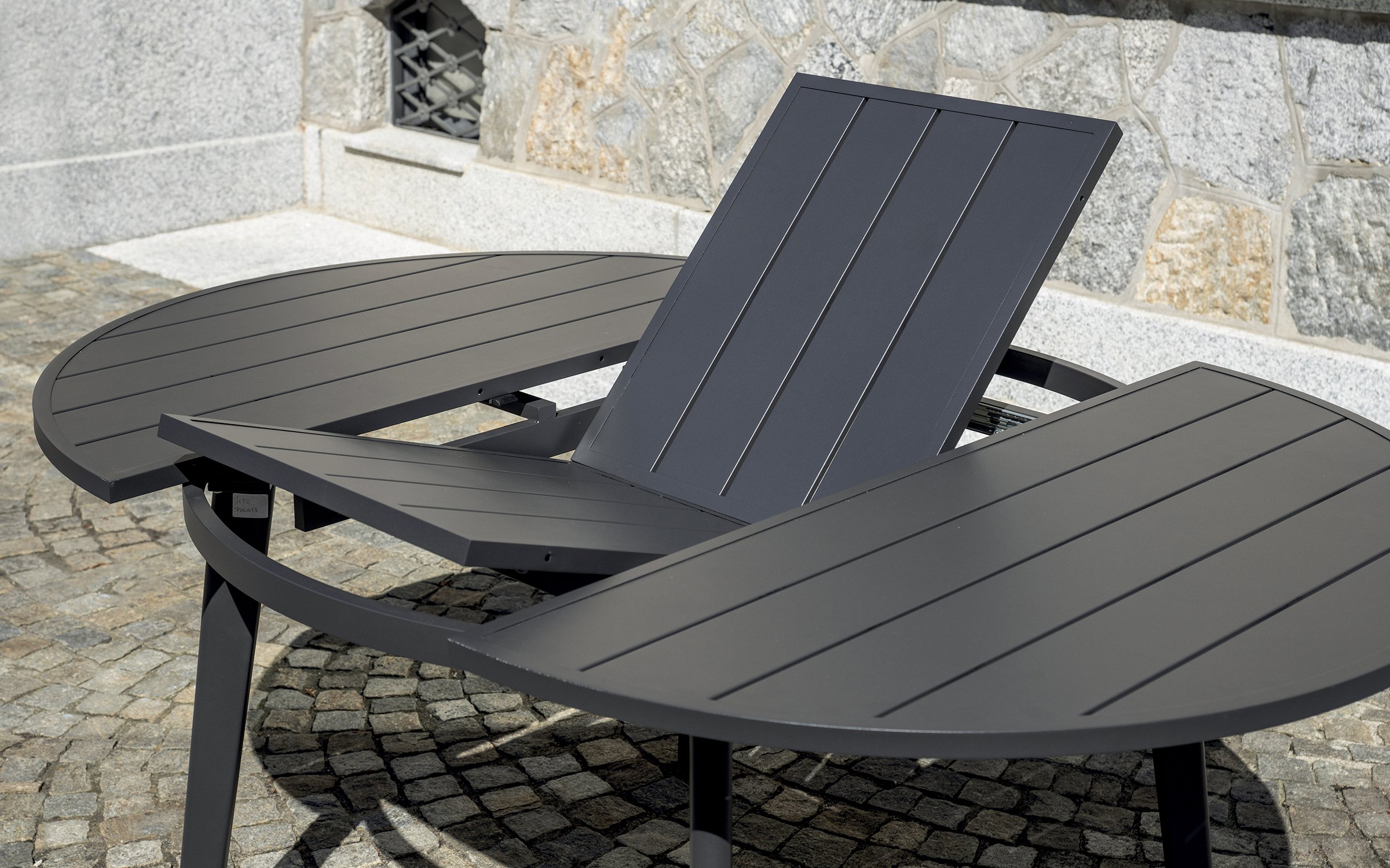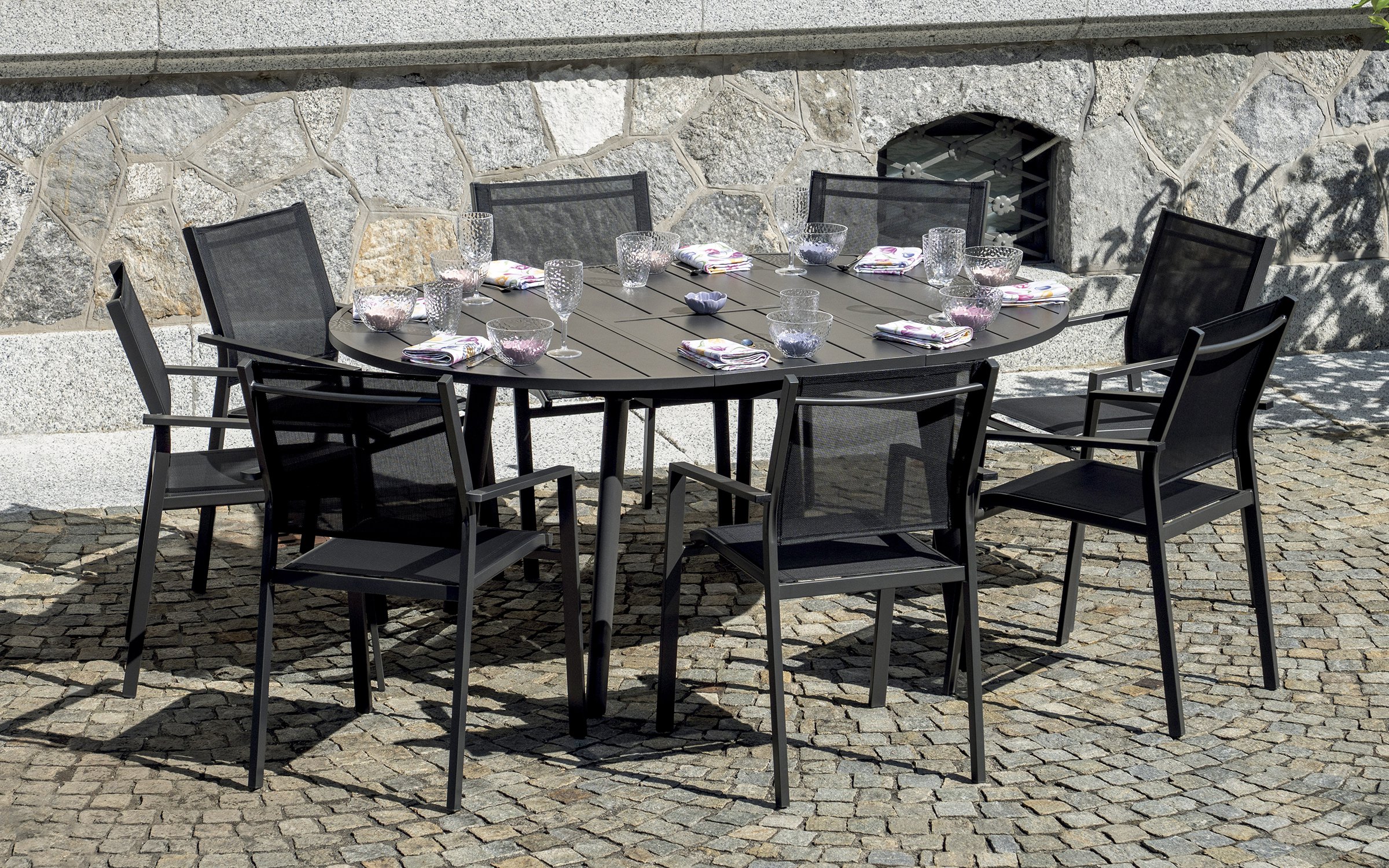 Nowoczesny okrągły stół ogrodowy rozkładany z aluminiową konstrukcją malowaną proszkowo. Dzięki systemowi rozsuwania blat można wydłużyć z 120 do 170 cm, co pozwala wygodnie pomieścić od 6 do 8 osób. Idealny na taras, balkon lub do ogrodu. Dostępny w dwóch wersjach kolorystycznych: