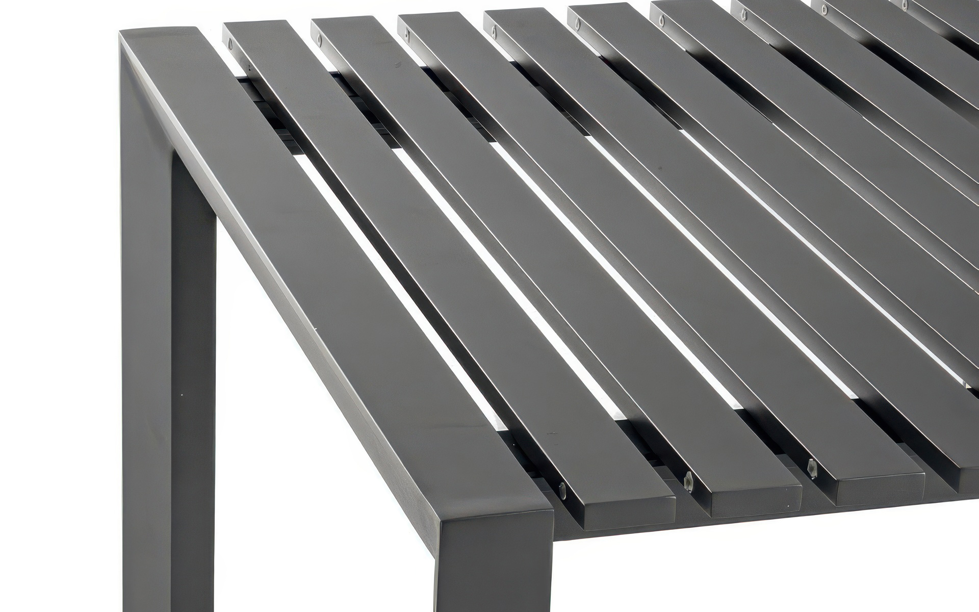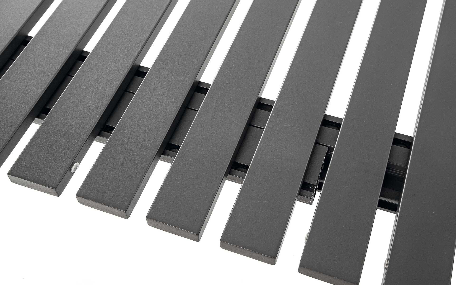 Blat z aluminiowych listew – odporny na wilgoć, promieniowanie UV i zmienne warunki atmosferyczne.