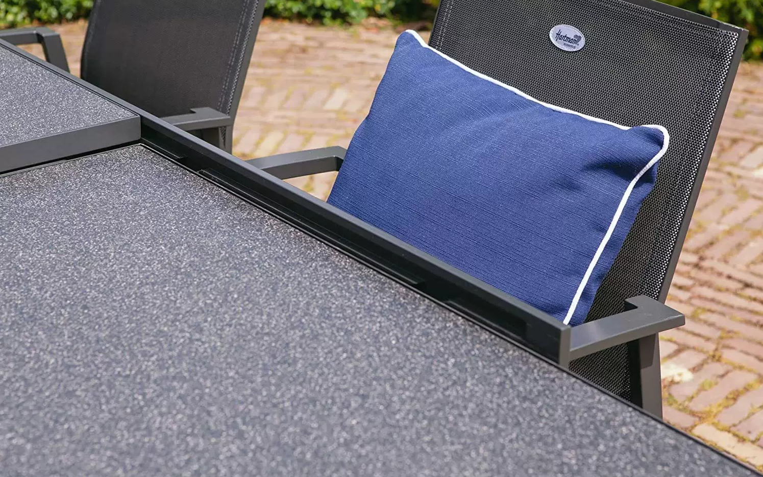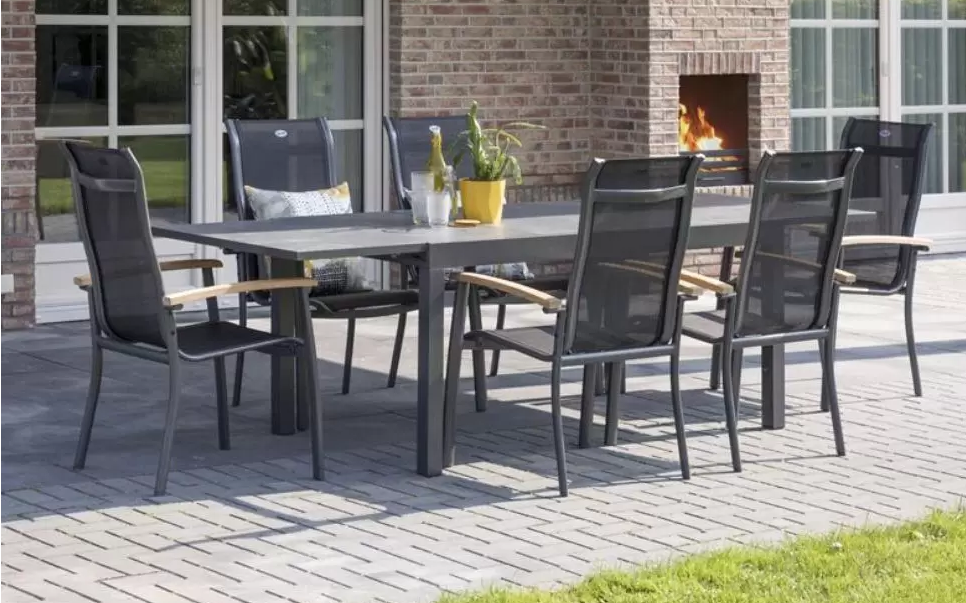 Idealny nowoczesny stół ogrodowy firmy Hartman. Mebel jest odporny na działanie warunków atmosferycznych dzięki materiałom, z których jest wykonany. Blat z HPL daje elegancki wygląd i trwałość.