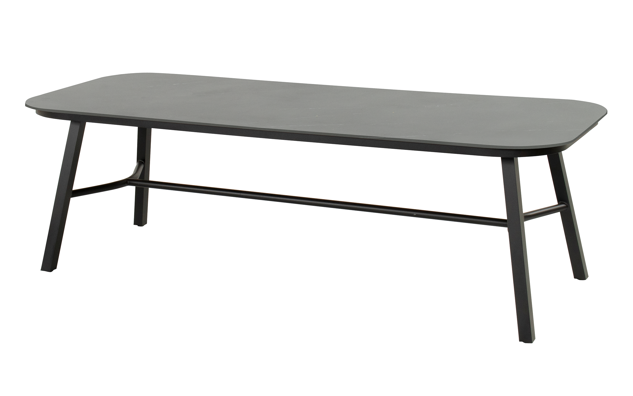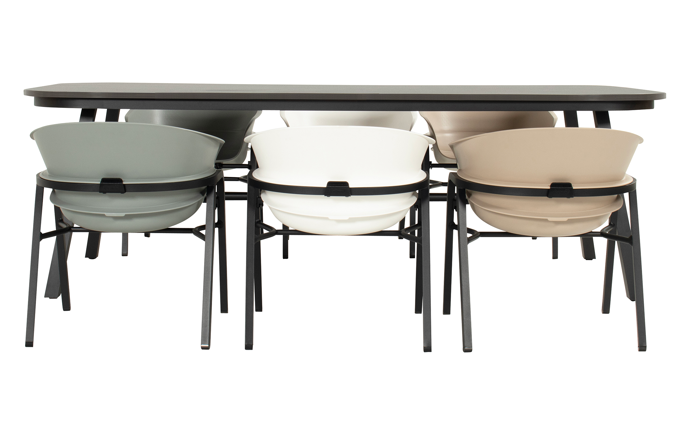 Konstrukcja z aluminium malowanego proszkowo zapewnia stabilność i odporność na korozję. Blat z ceramiki w odcieniu antracyt jest wytrzymały, odporny na promieniowanie UV i wilgoć oraz niezwykle prosty w pielęgnacji.