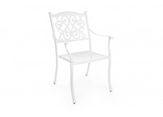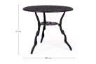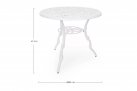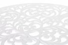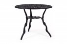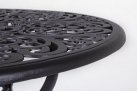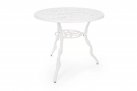 Aluminiowy ogrodowy stół okrągły o średnicy 80 cm o ażurowym blacie.
