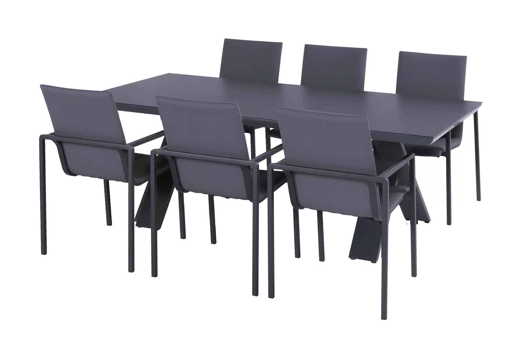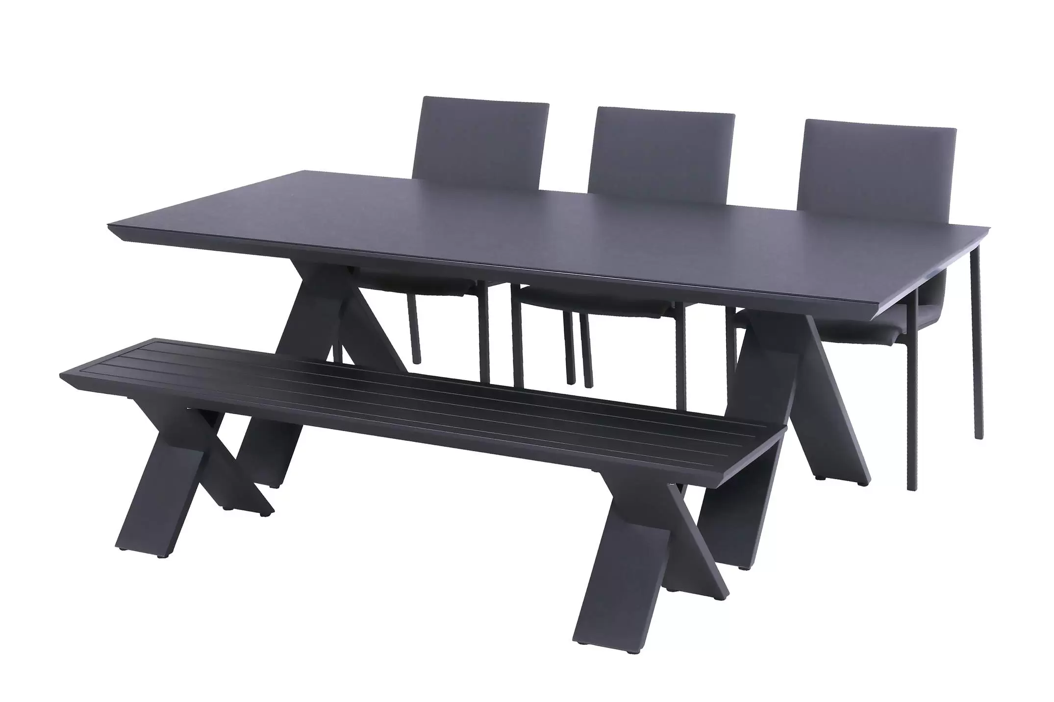 Stół aluminiowy na taras z krzyżowymi nogami ciemnoszary XANADU blat HPL