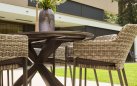 Blat: ceramika – powierzchnia odporna na warunki zewnętrzne, łatwa w czyszczeniu. Podstawa: aluminium malowane proszkowo – lekkie, nierdzewne i trwałe. Idealne do mebli ogrodowych użytkowanych na tarasie przez cały sezon.