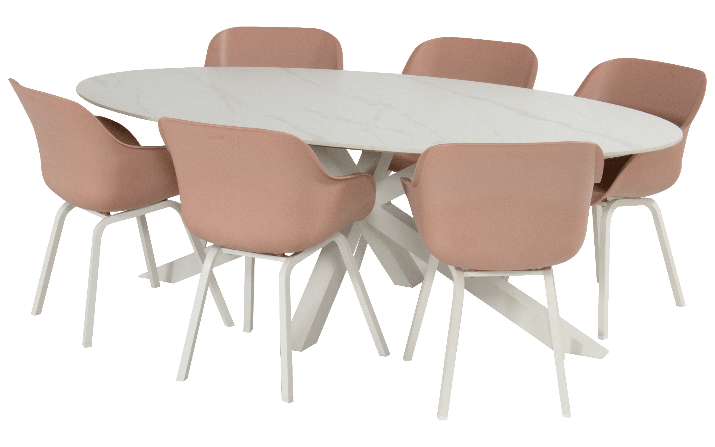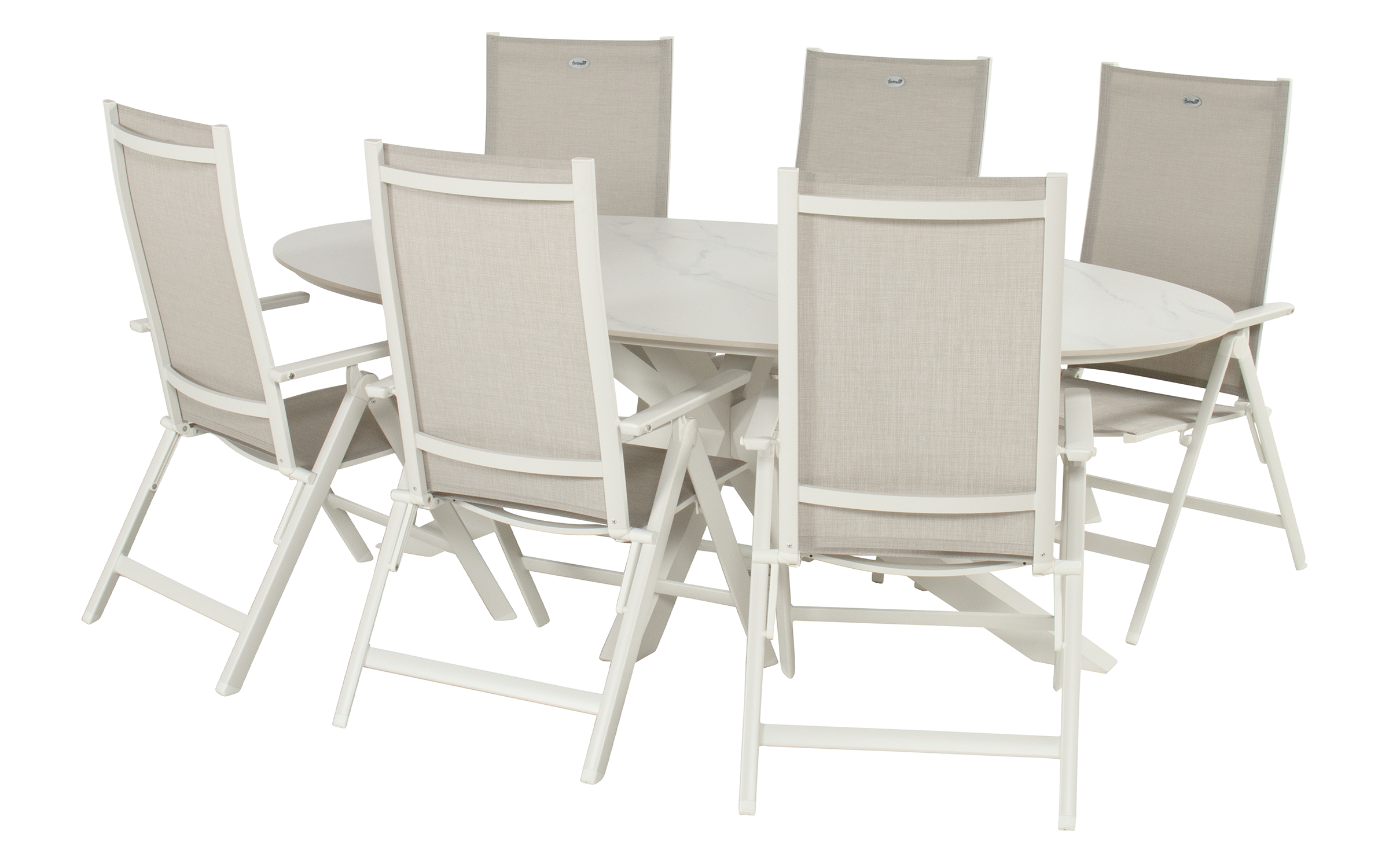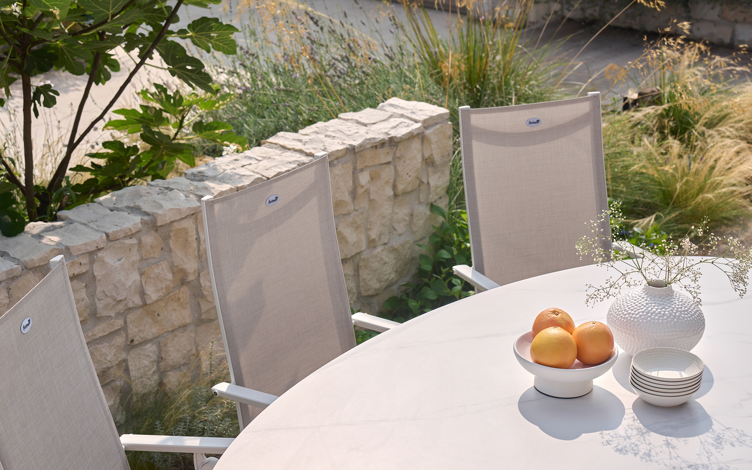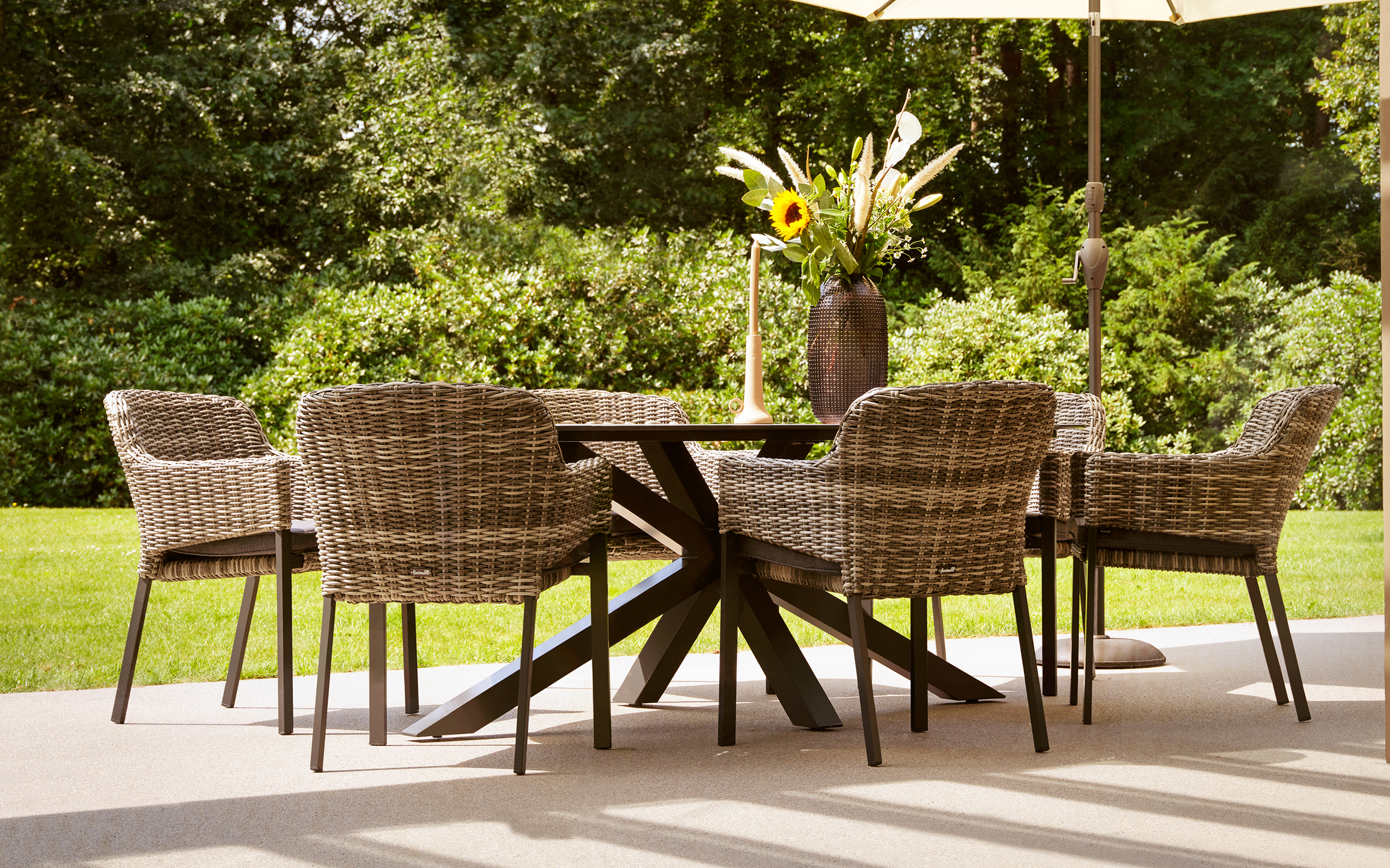 Owalny stół ogrodowy na taras XANDER marki Hartman łączy elegancję i funkcjonalność. Trwały ceramiczny blat spoczywa na stabilnej, krzyżowej podstawie z aluminium. To idealny stół do ogrodu i na taras – odporny na warunki atmosferyczne, łatwy w pielęgnacji i wygodny dla rodzinnych posiłków na świeżym powietrzu.