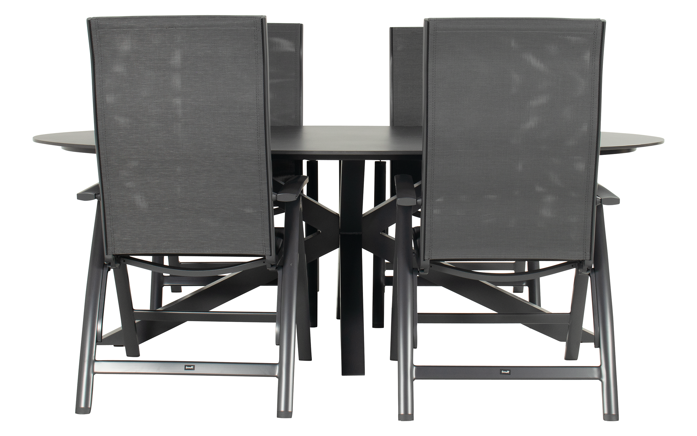 - Stabilna krzyżowa podstawa aluminiowa – łatwe ustawienie krzeseł dookoła