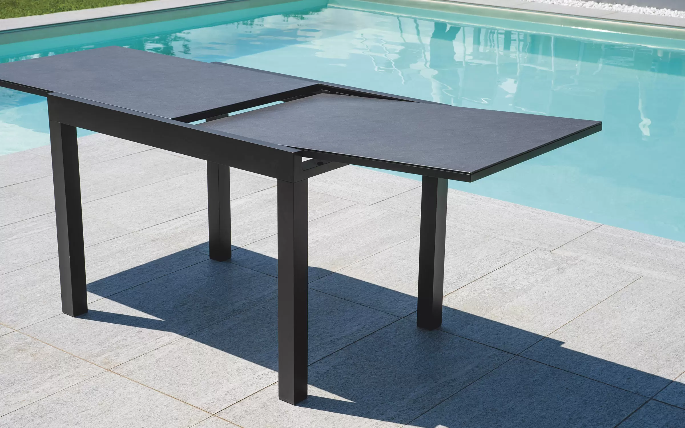 Nowoczesny stół ogrodowy rozkładany z aluminiową konstrukcją malowaną proszkowo. Dzięki systemowi rozsuwania blat można wydłużyć z 104 do 208 cm, co pozwala wygodnie pomieścić od 6 do 8 osób. Idealny na taras, balkon lub do ogrodu. Dostępny w dwóch wersjach kolorystycznych: