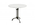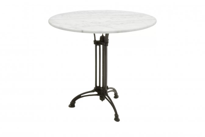 Stolik na jednej nadze żeliwnej czarnej i blat marmurowy.