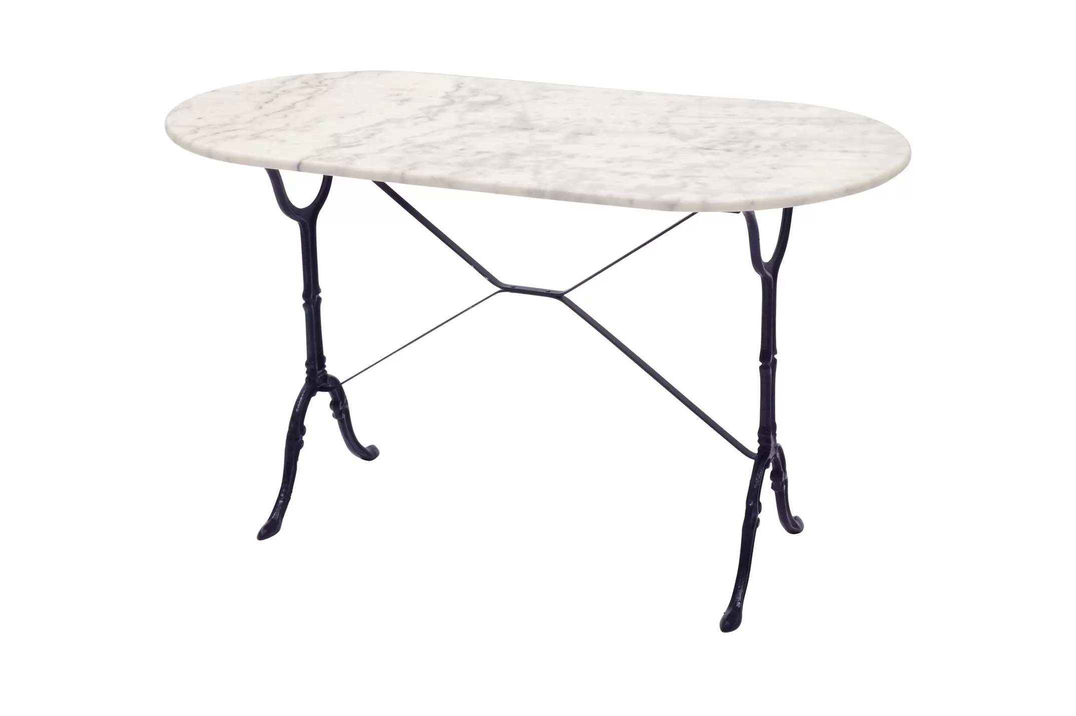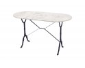 Stolik na jednej nadze żeliwnej czarnej i blat marmurowy.