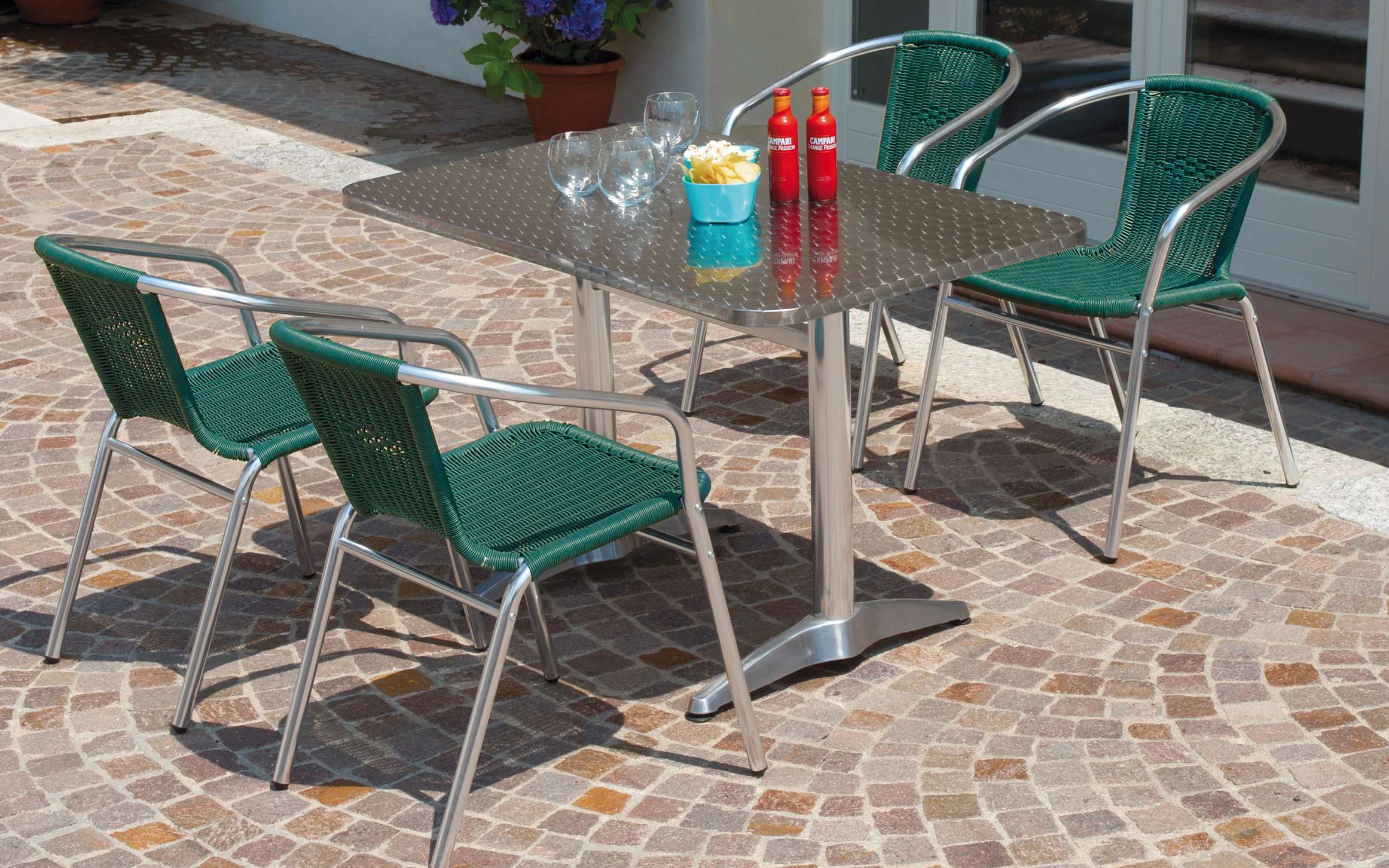 Stół to model kontraktowy przeznaczony do intensywnego użytku w przestrzeniach horeca – idealny do ogrodów, tarasów, restauracji, kawiarni i stref wypoczynkowych. Wykonany z aluminiowej konstrukcji oraz blatu stalowego 70×110 cm. Lekki, stabilny i odporny na warunki atmosferyczne.