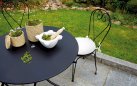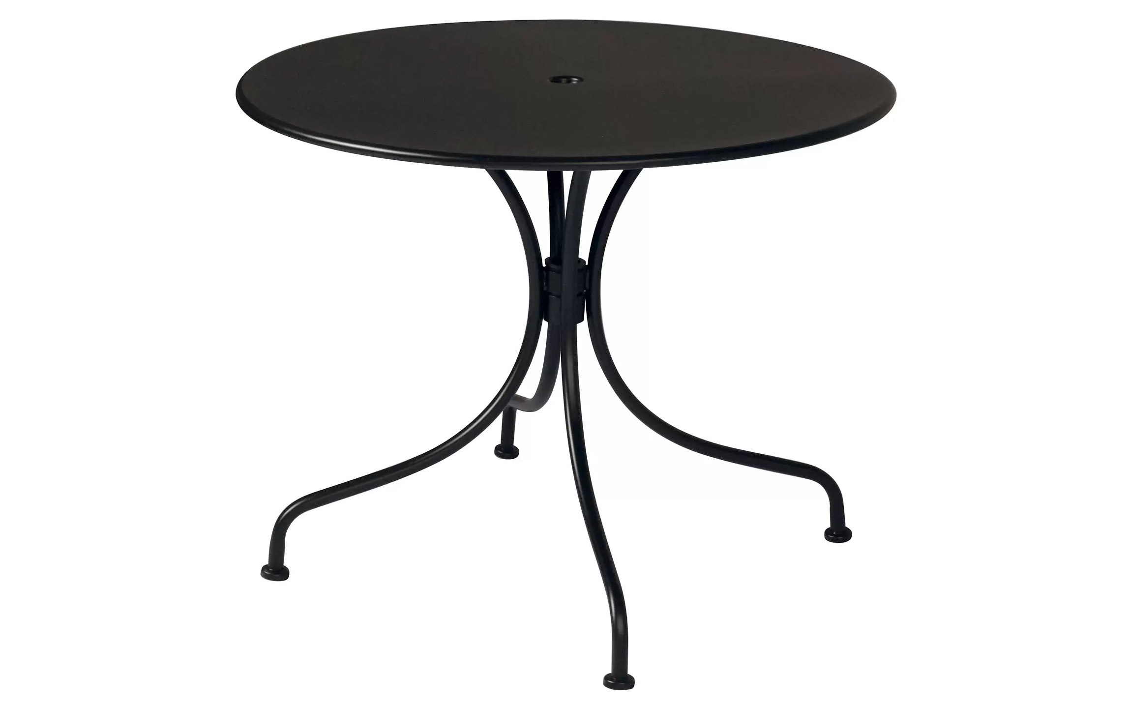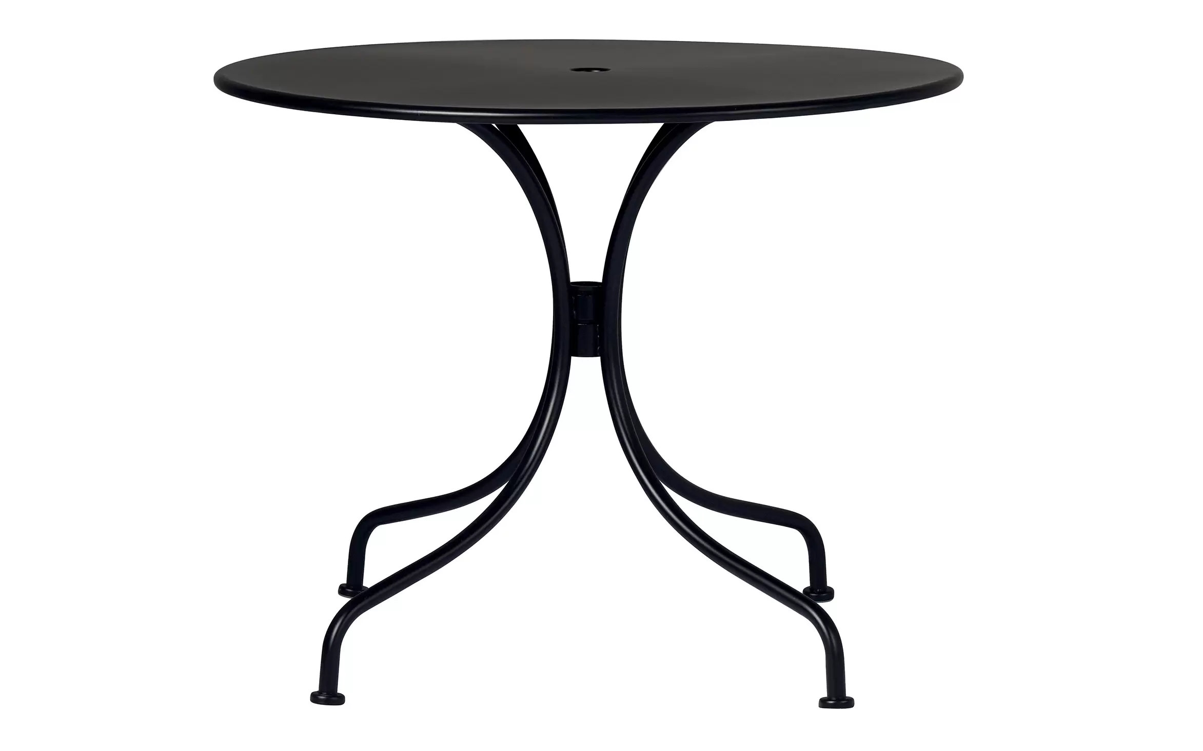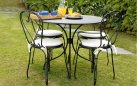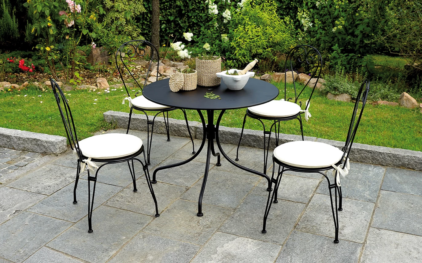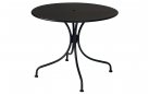 Stylowy okrągły stół ogrodowy wykonany z trwałej stali z powłoką antykorozyjną. Idealny na taras, balkon lub do ogrodu. Średnica 90 cm zapewnia komfortowe miejsce dla czterech osób. Kolor czarny pasuje do nowoczesnych aranżacji zewnętrznych.