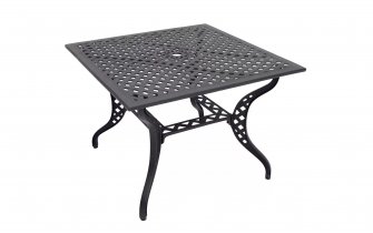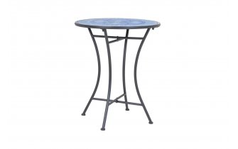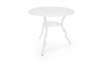 Stołek barowy bistro wykonany z aluminium. Zaokrąglona krawędĹş stołu.