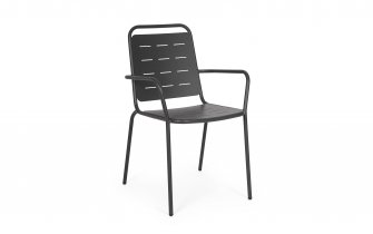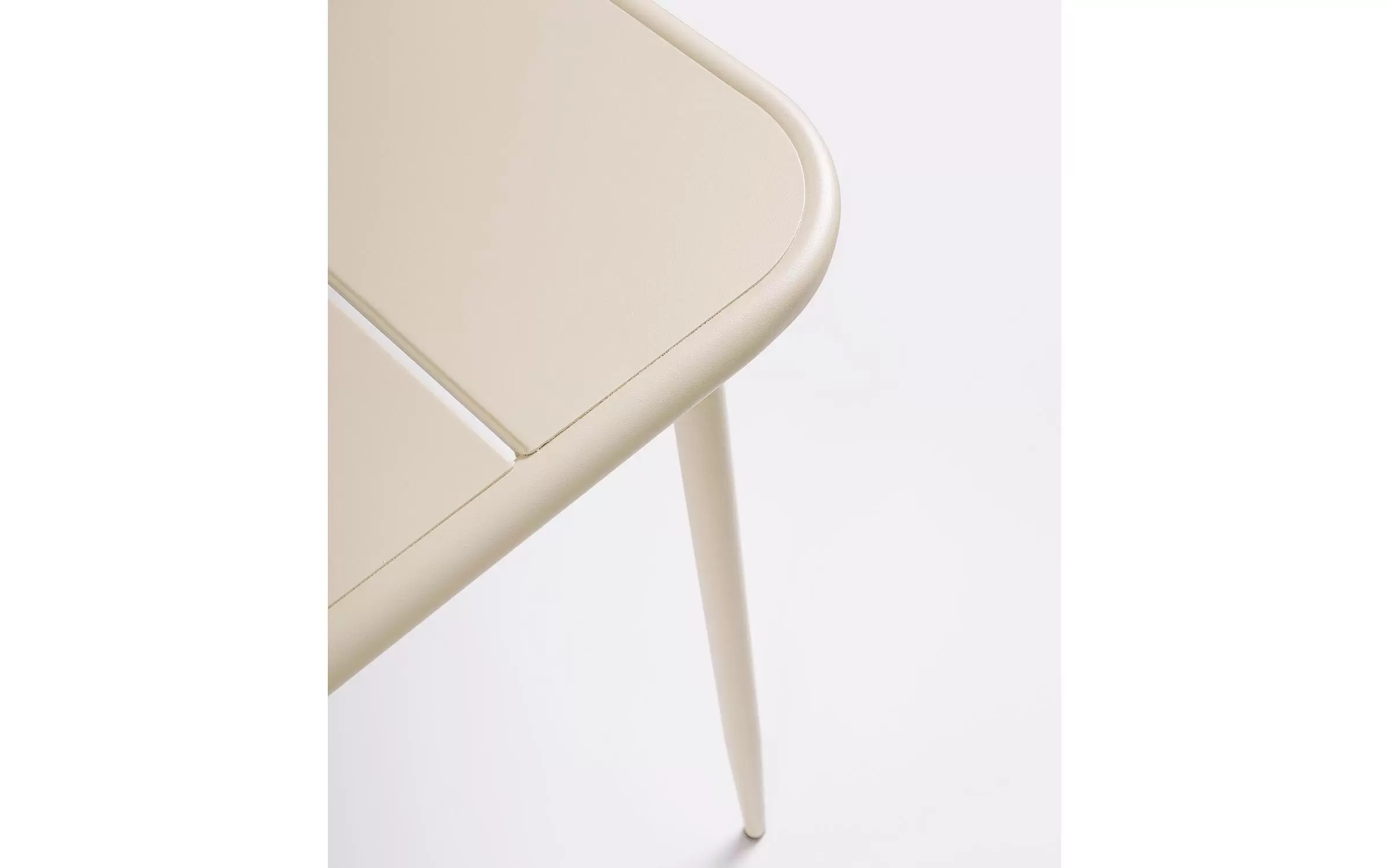 Stół stalowy idealny na balkon lub do kawiarni ze stali malowanej proszkowo. Zaokrąglone rogi blatu i poprzeczne szczeliny dla szybszego odprowadzania wody.