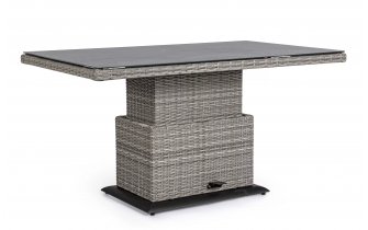 Ręcznie wyplatany stół z rzadko obecnie spotykanego technorattanu o pełnym okrągłym przekroju. Blat stołu również jest wyplatany i widoczny pod szyba ze szkła hartowanego. Duży rozmiar oferuje mnóstwo miejsca na kulinarne przysmaki. Szkło hartowane jest trwałe i łatwe w utrzymaniu w czystości. Blat lezy na stole na silikonowych podkładkach.