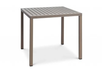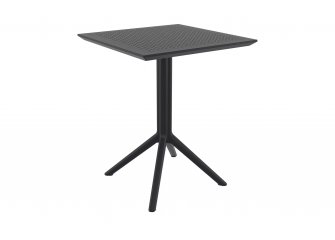 Stół kwadratowy ogrodowy charakteryzuje się niewielką wagą i wzmacnianymi w konstrukcji metalem nogami. Blat perforowany otworami.
