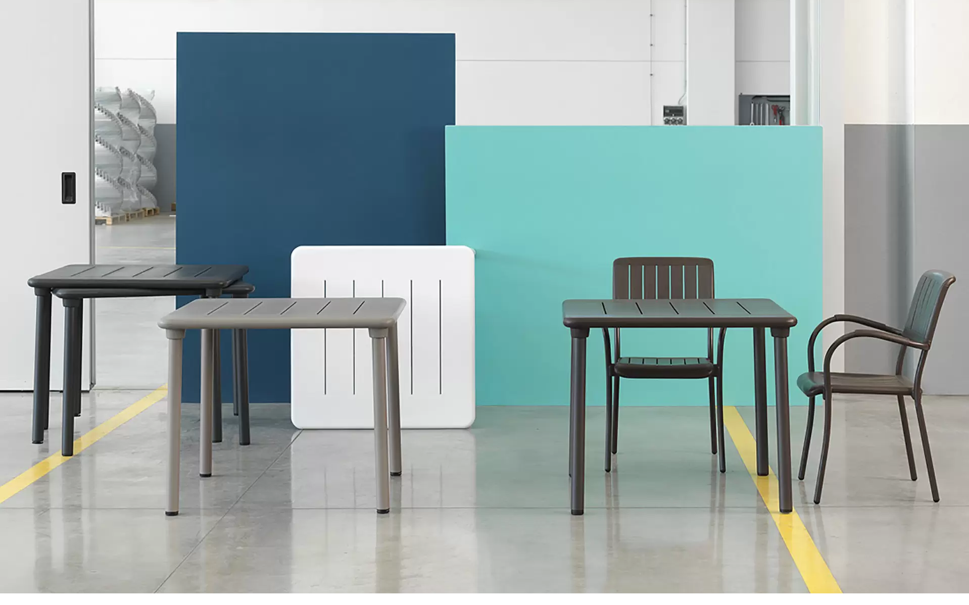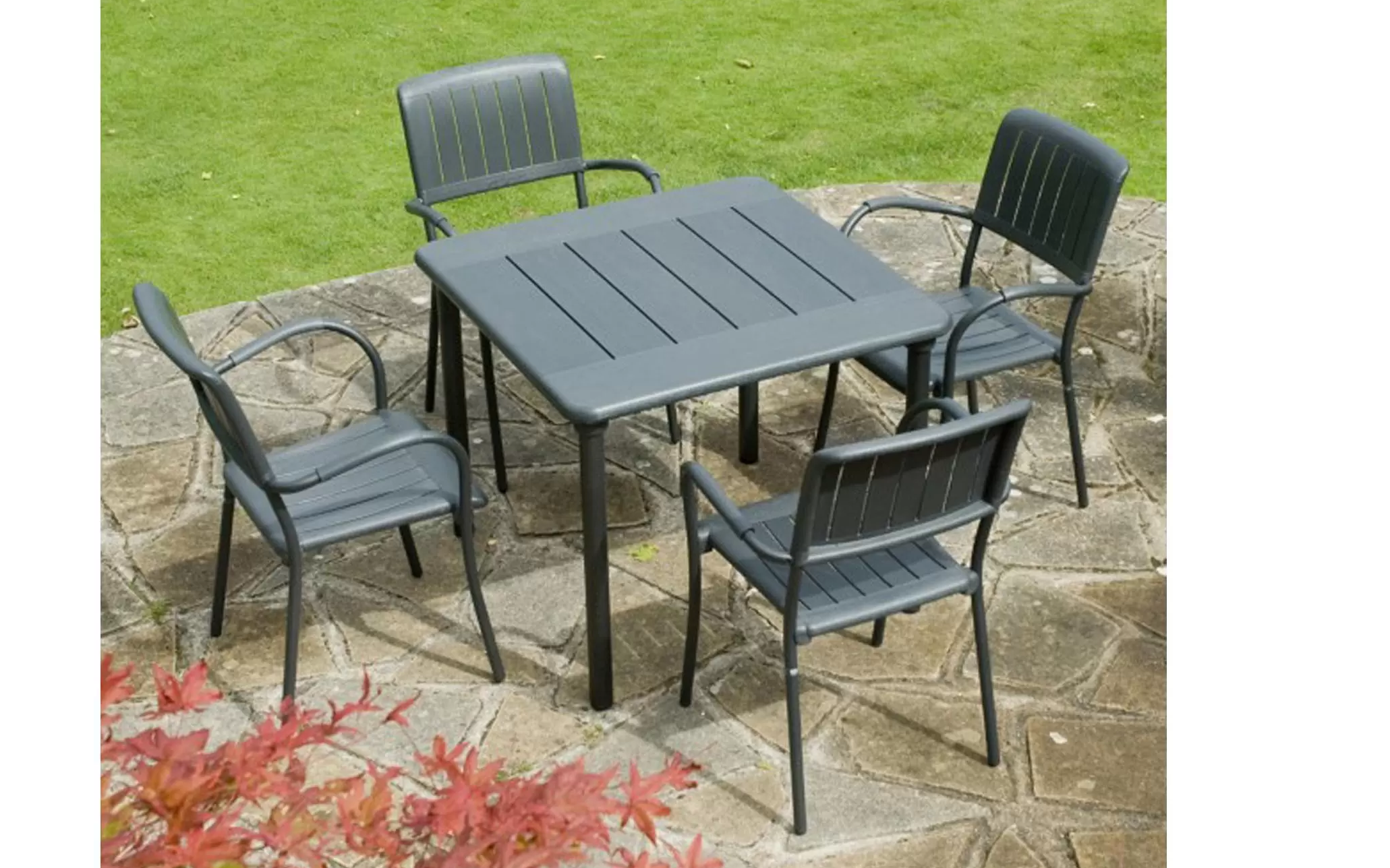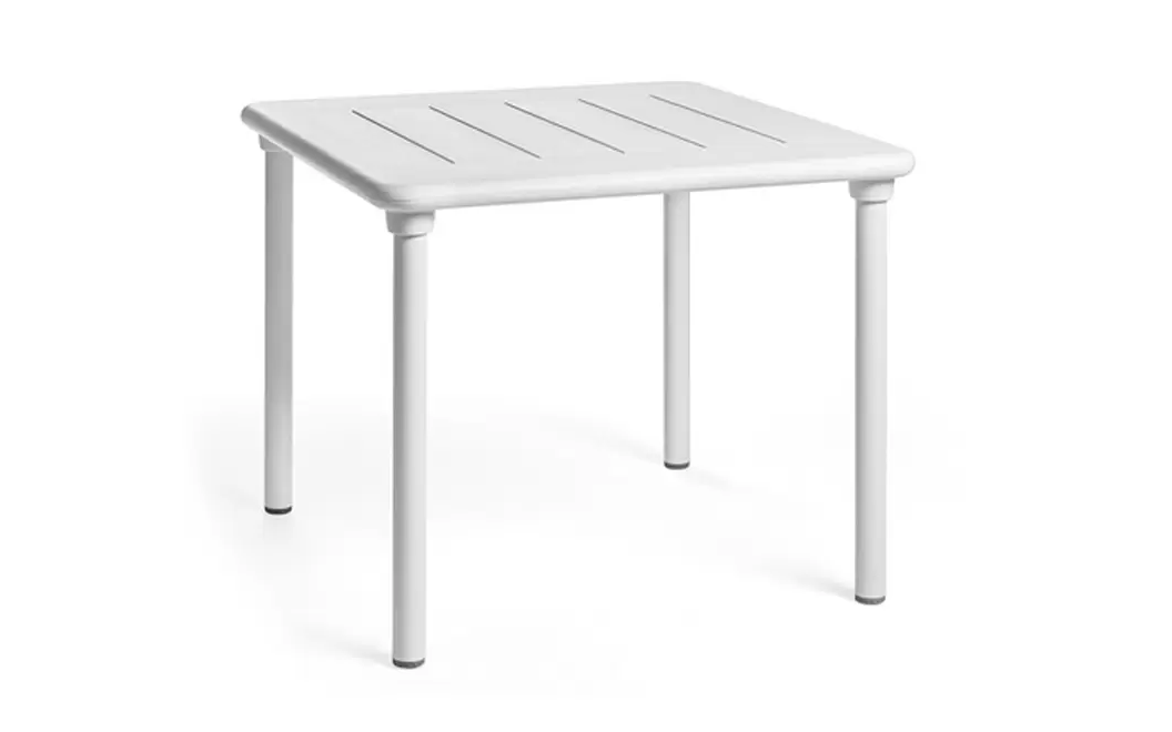 Kwadratowy stół ogrodowy MAESTRALE renomowanej firmy Nardi o aluminiowej konstrukcji z blatem z odpornej na działanie warunków atmosferycznych i UV żywicy polipropylenowej wzmocnionej włóknem szklanym DuralTOP.